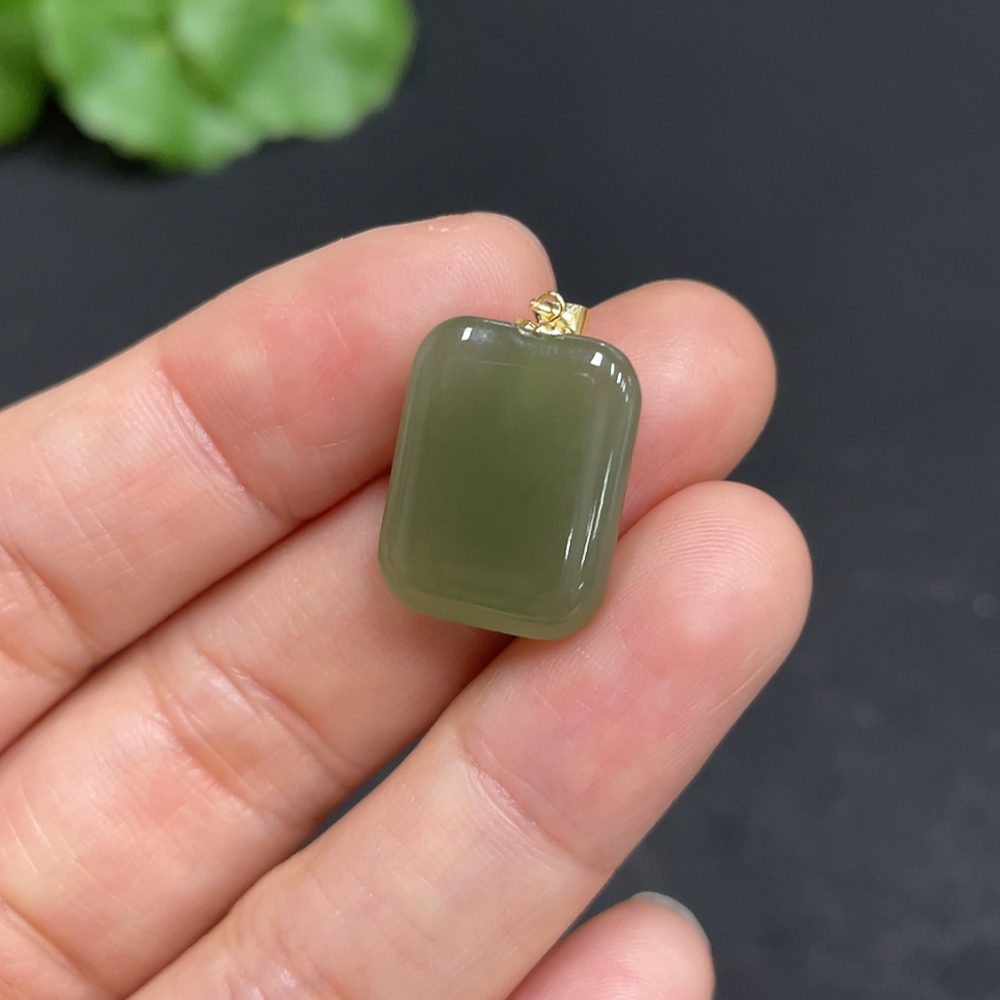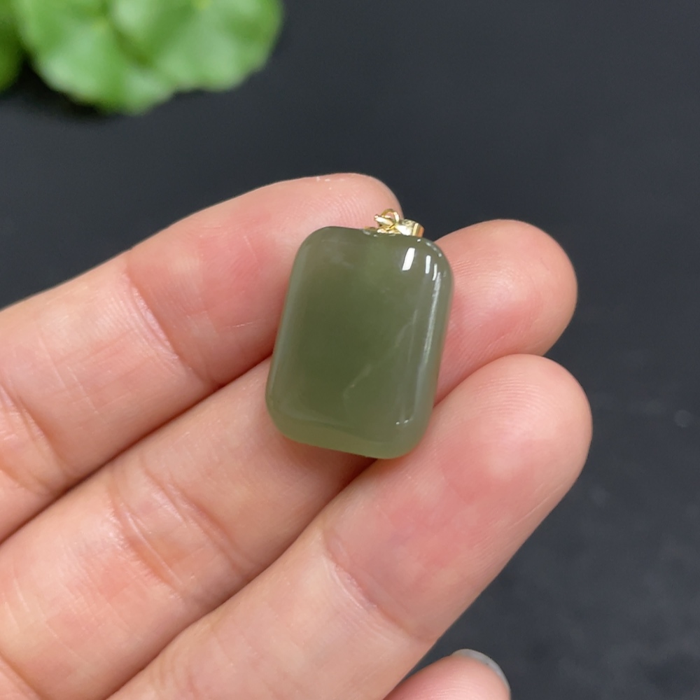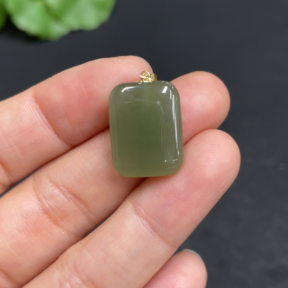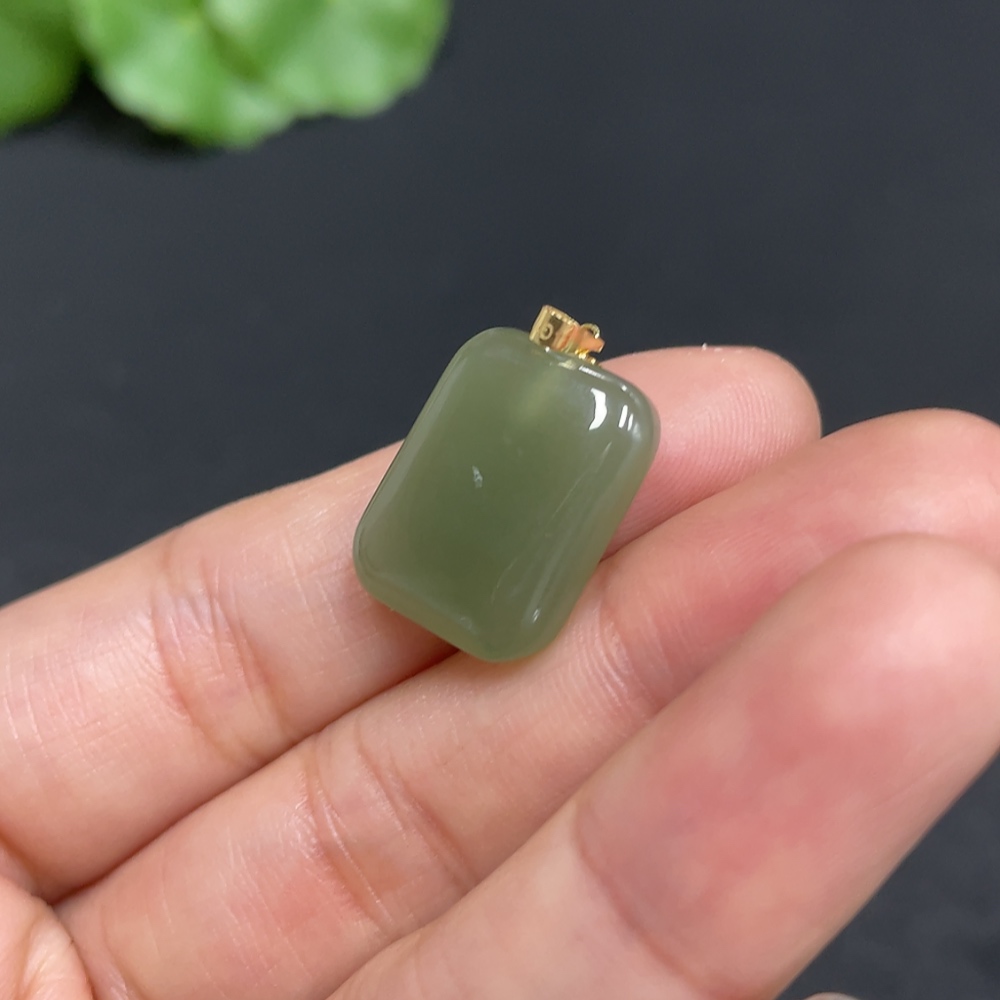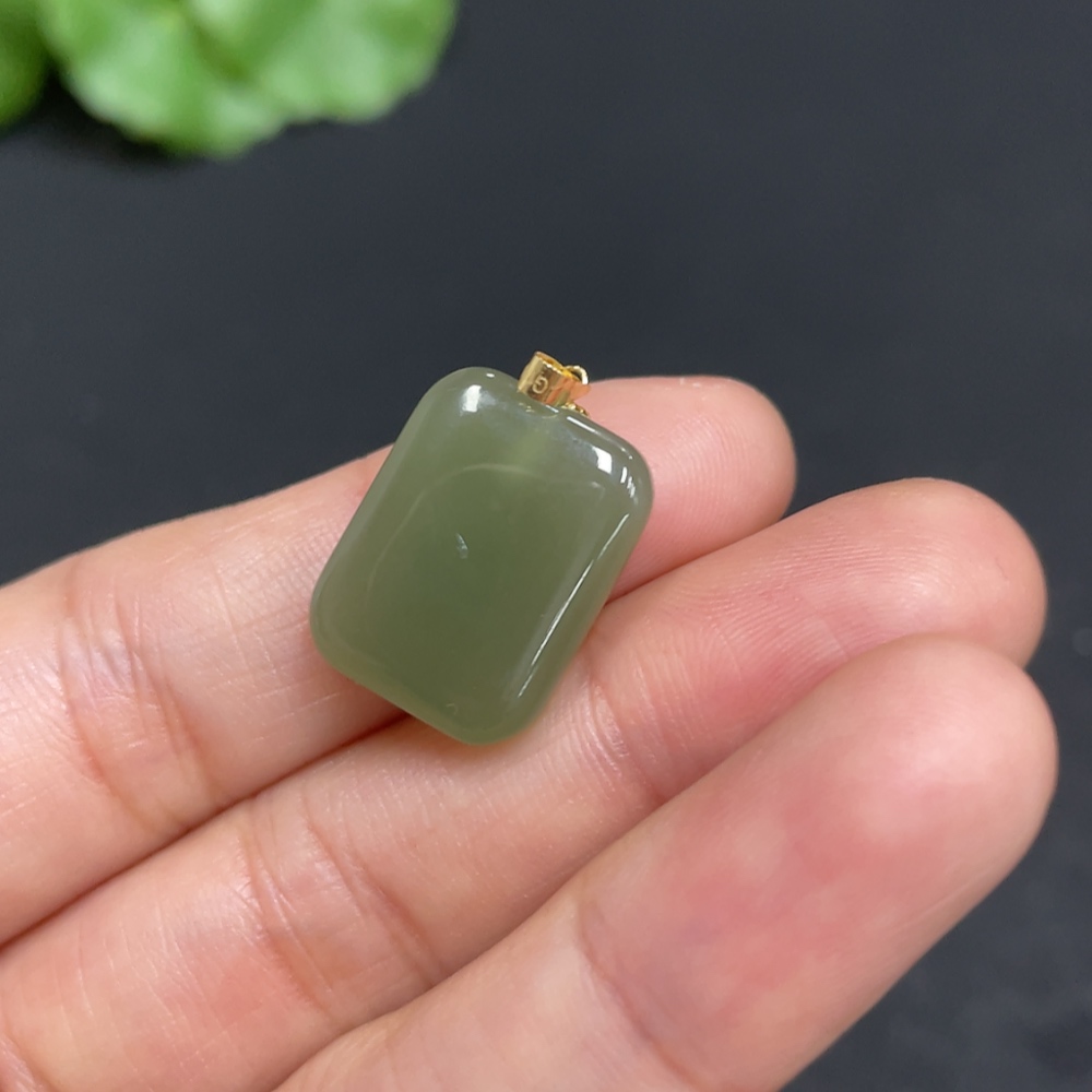 Hetian Jade Pendant, Plain Pendant with 18k Gold Clasp, Total Weight Approx. 2.8g