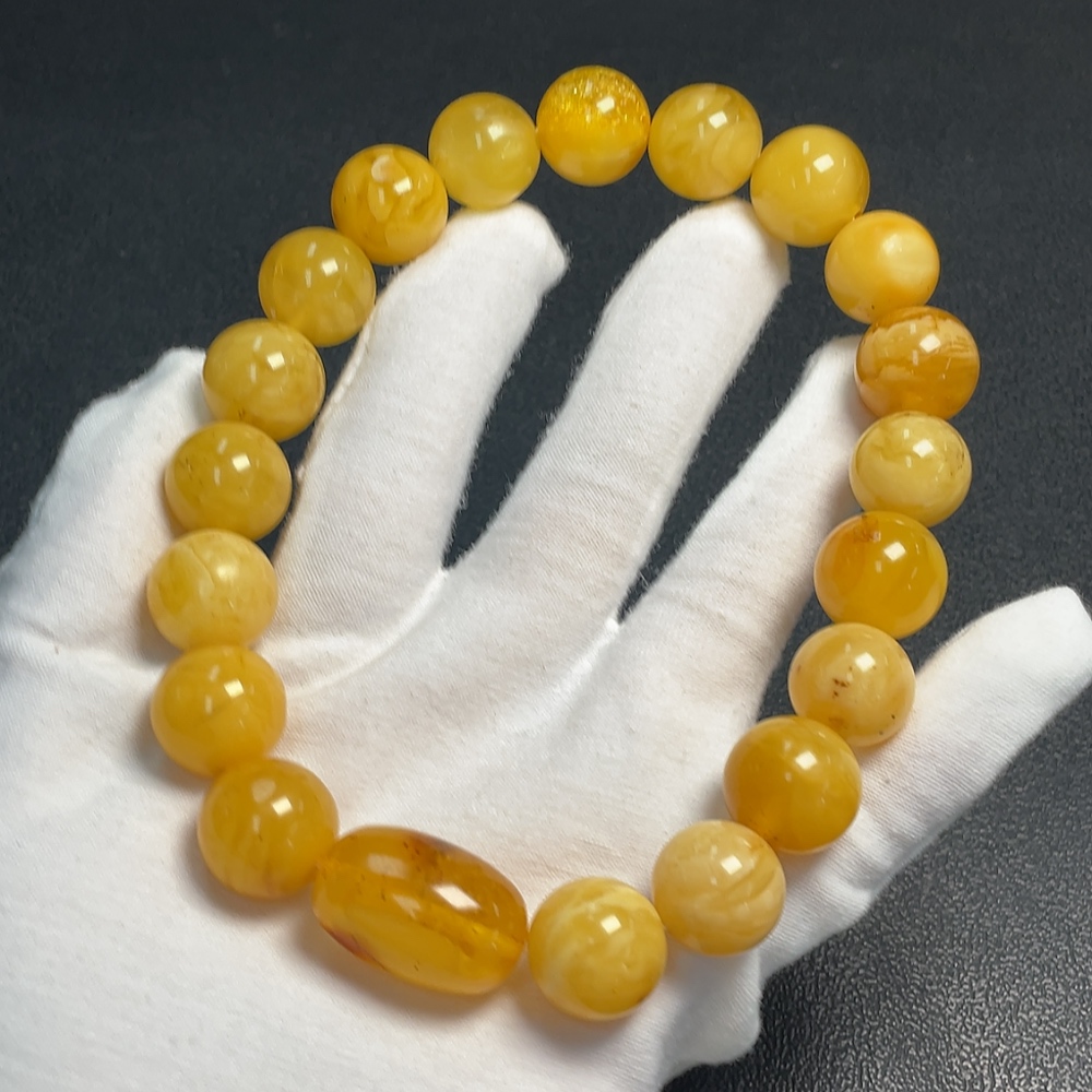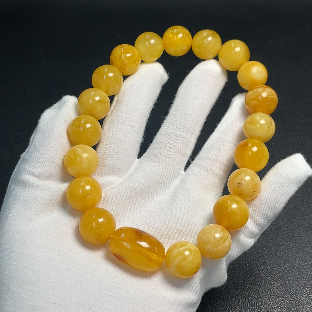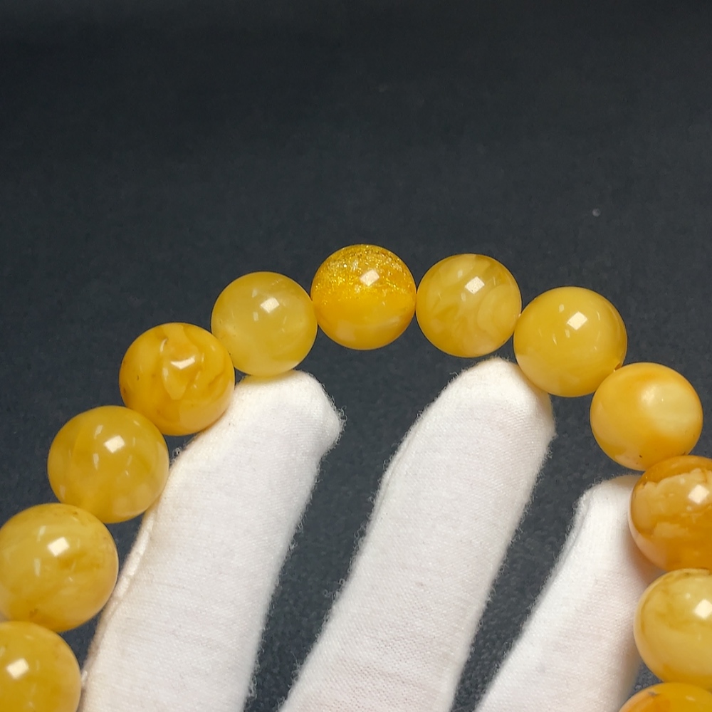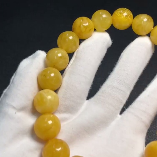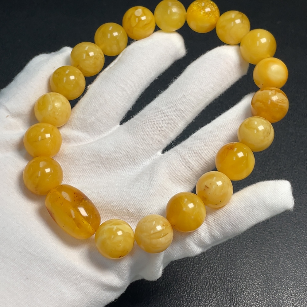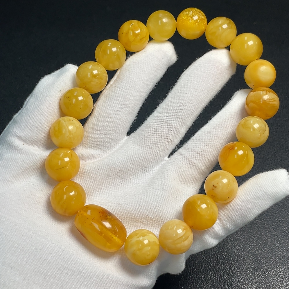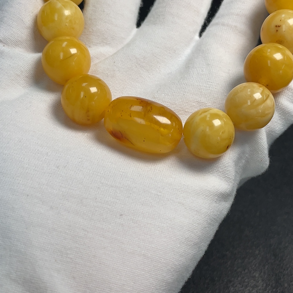 Amber Beeswax Beaded Necklace with Partial Visible Repairs, Total Weight Approximately 46.14g, Size About 16.1mm