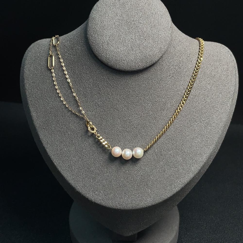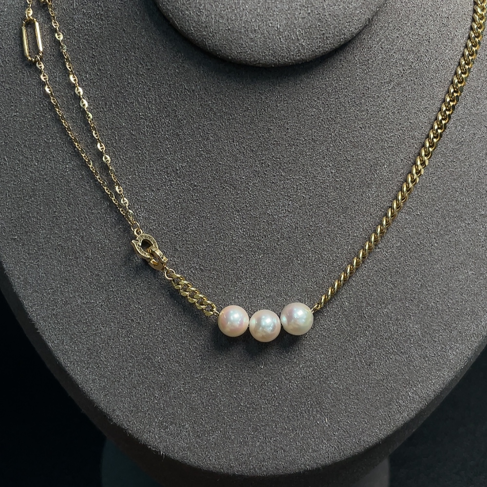 Seawater Pearl Necklace Undetectable String Rest 18K Gold Total Weight Approx. 6.22g Size About 6.7mm