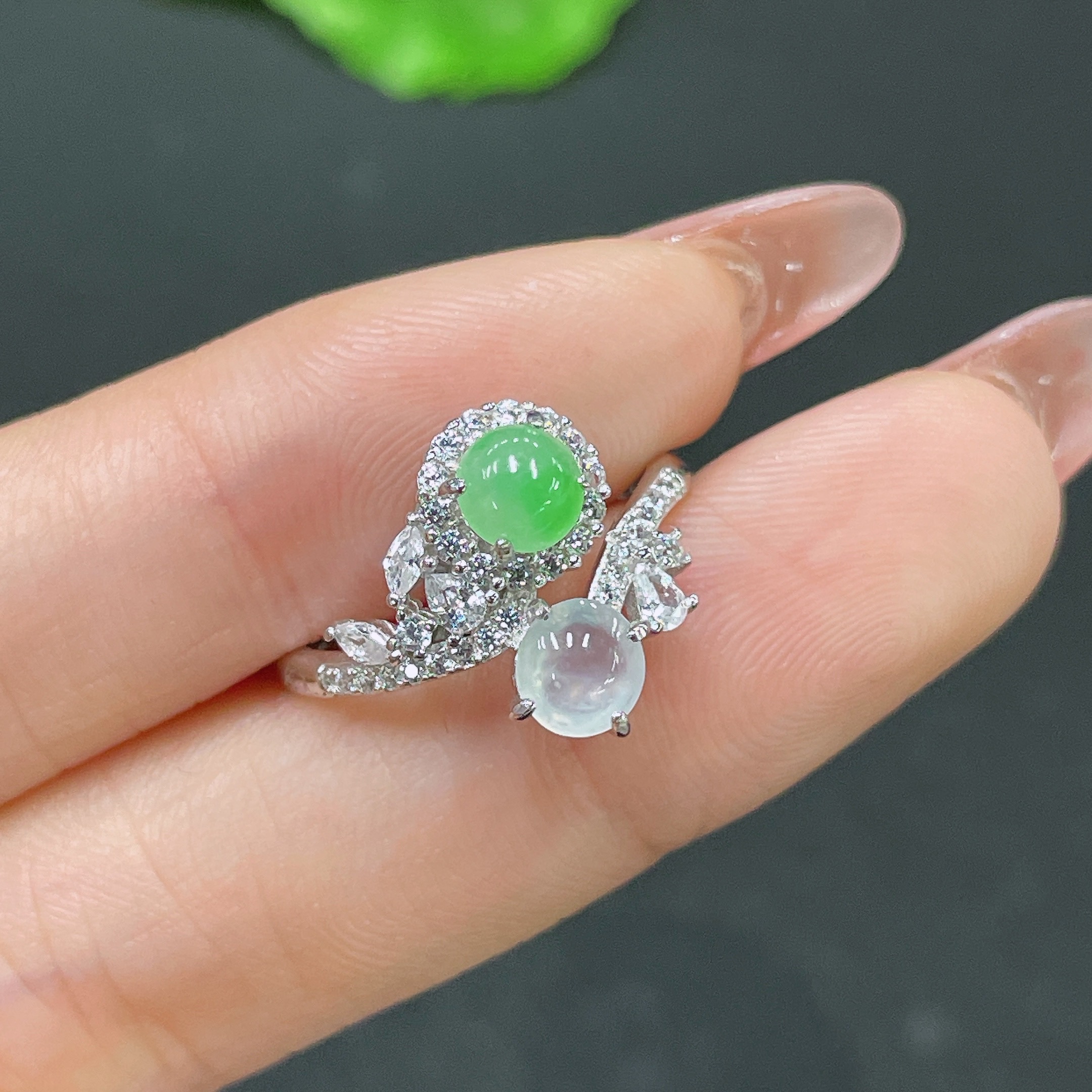Jadeite Cabochon Inlaid Ring Non-Gold Total Weight Approx. 2.42g