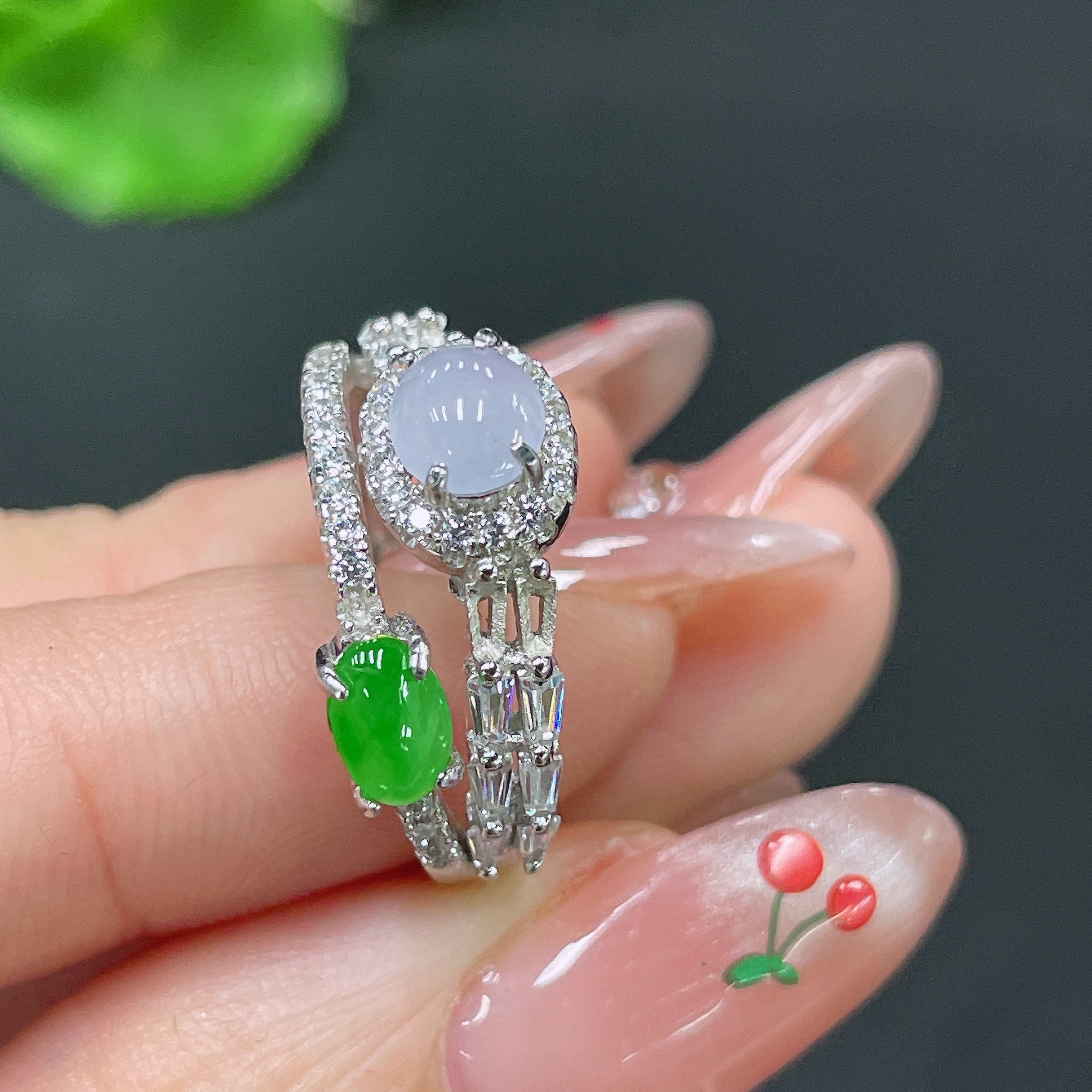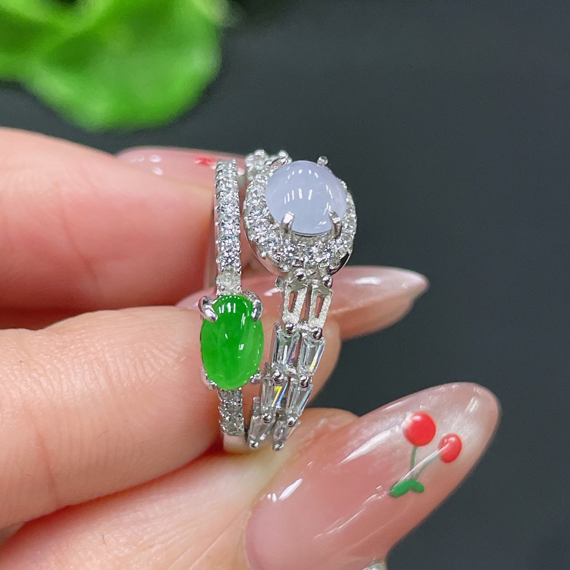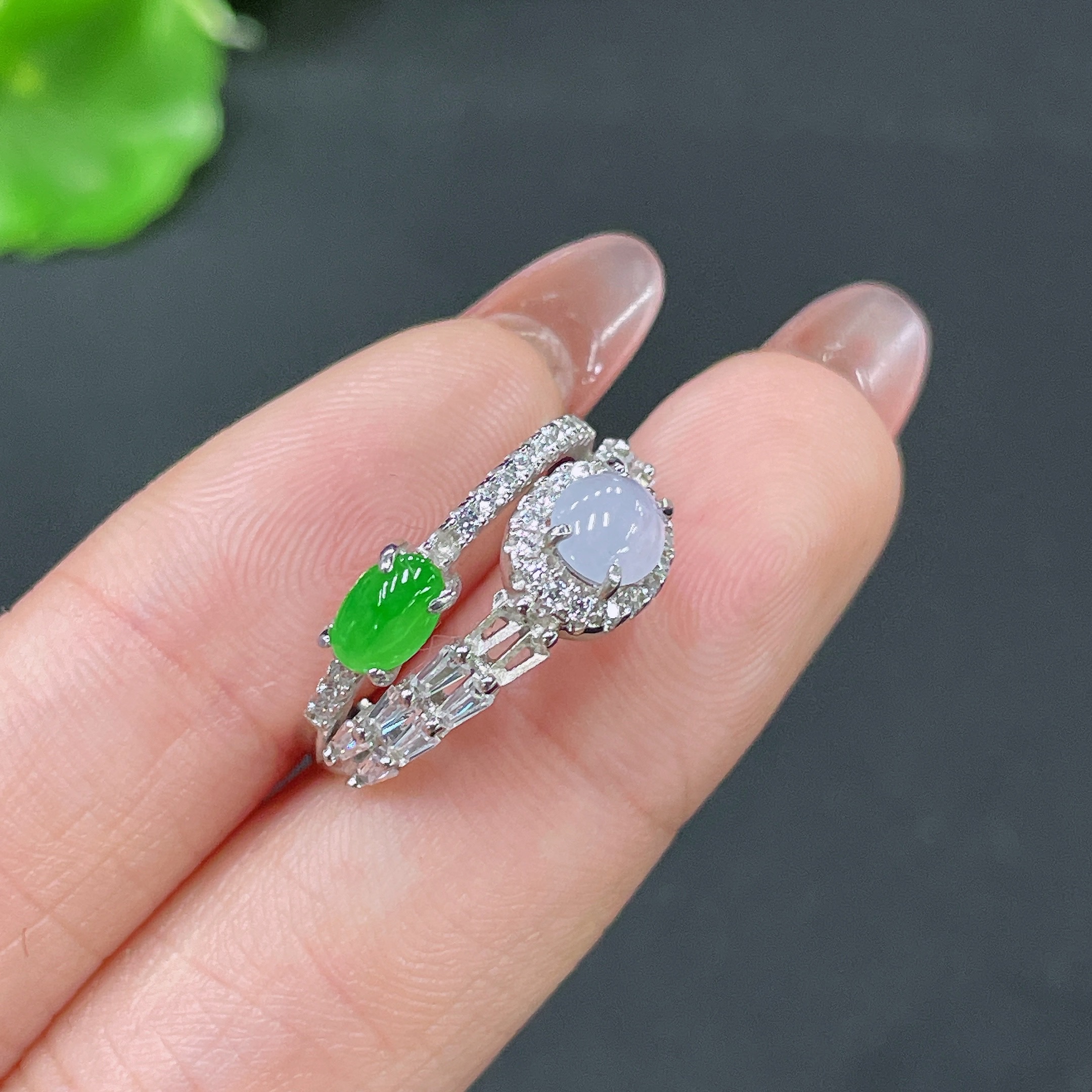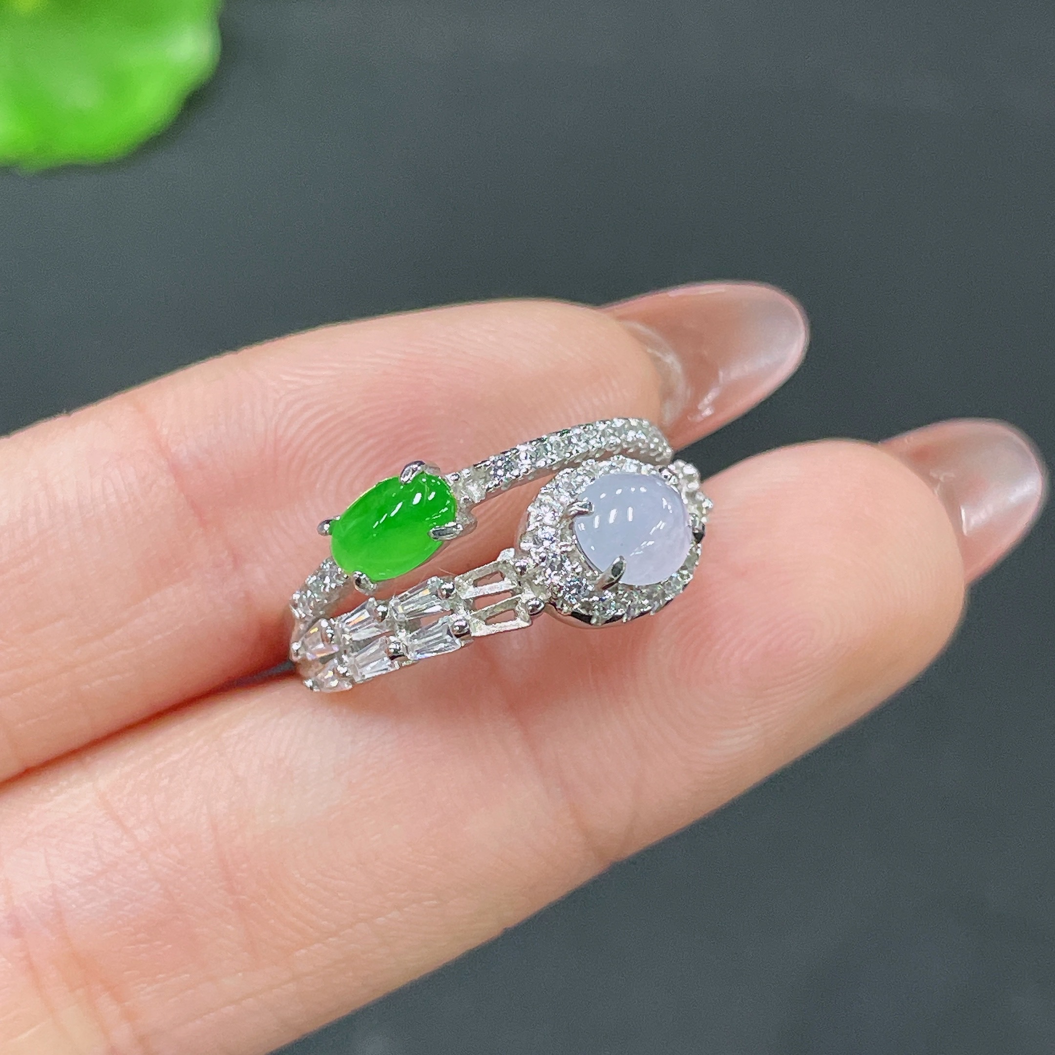 Jadeite Cabochon Inlay Ring Non-Gold Adjustable