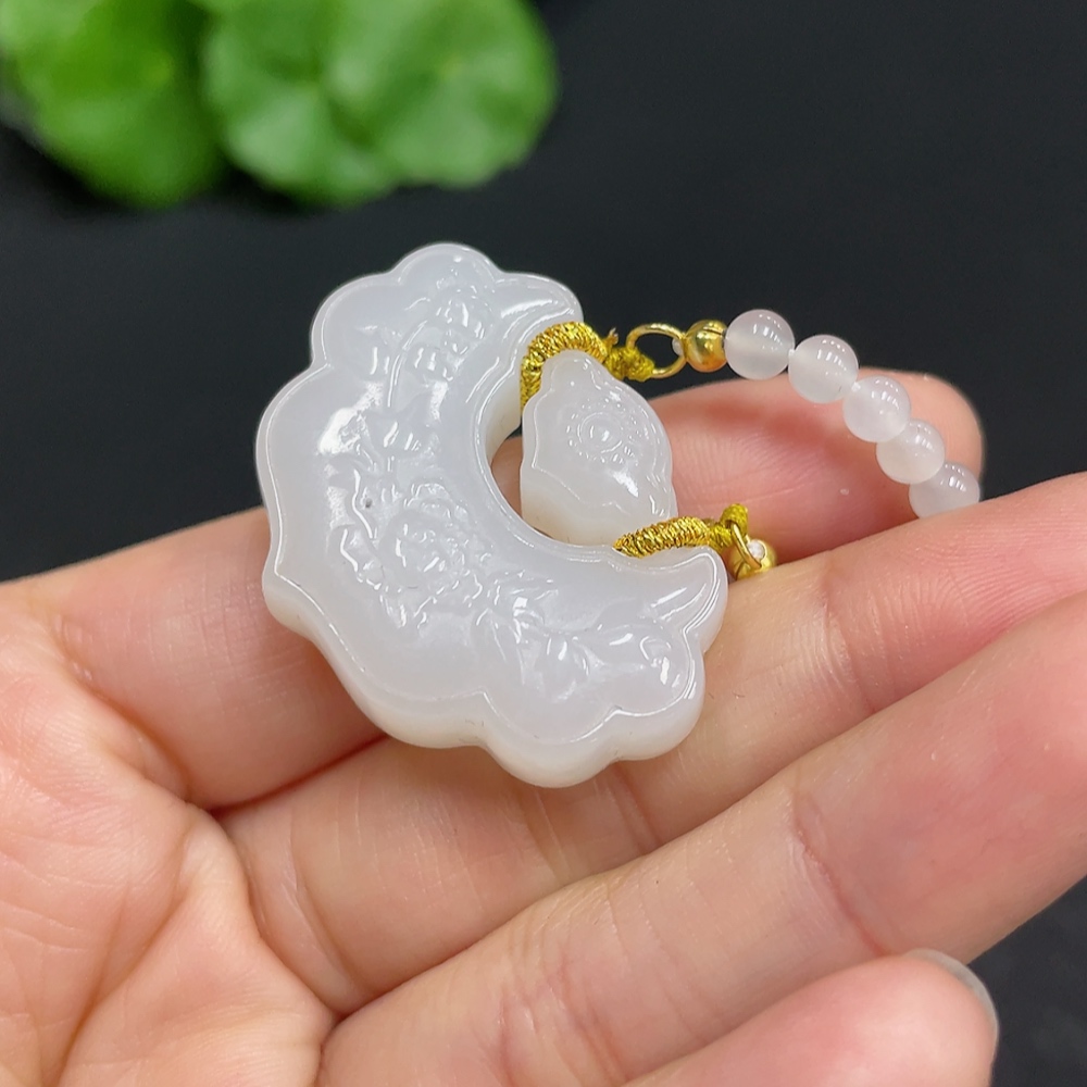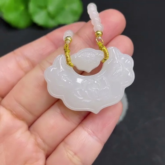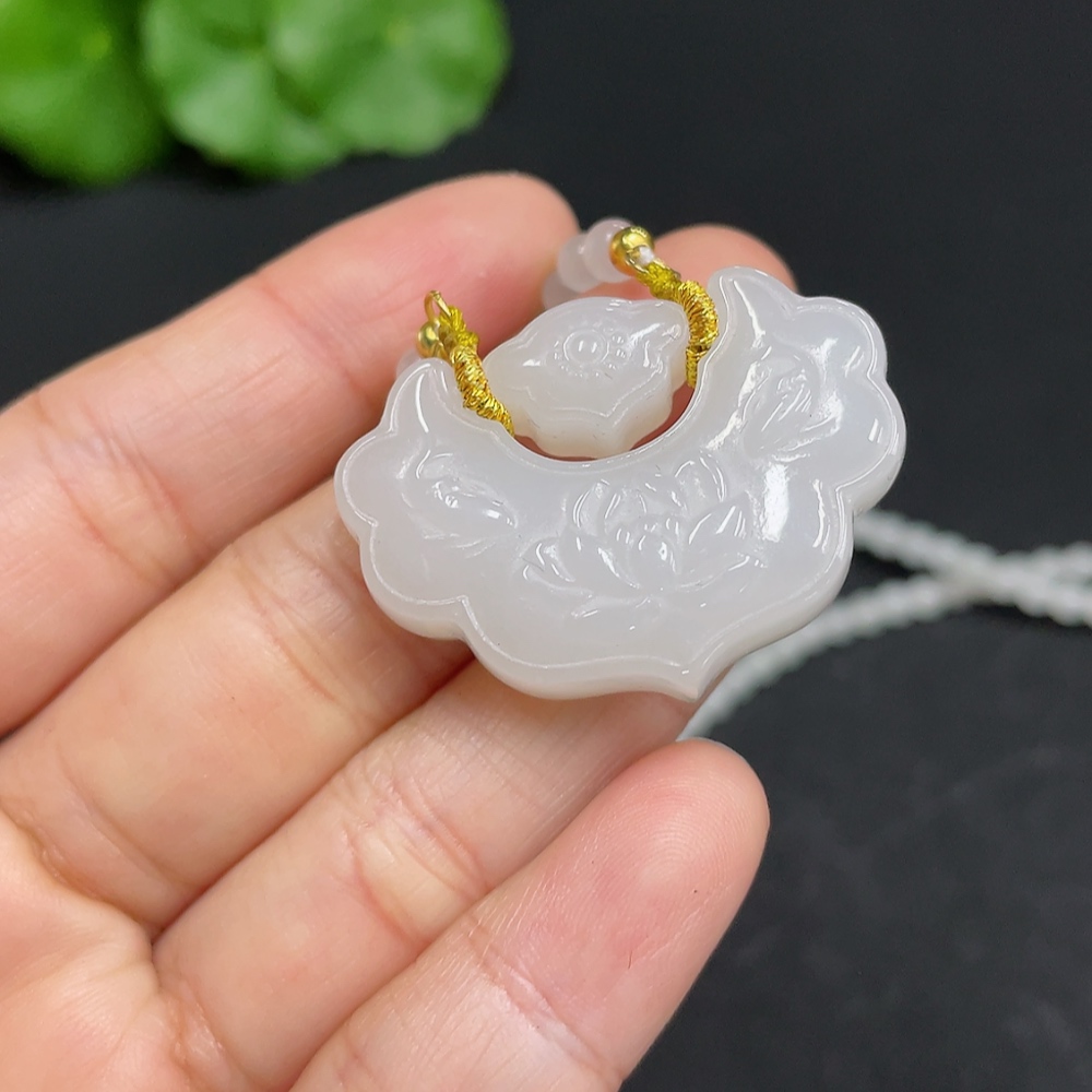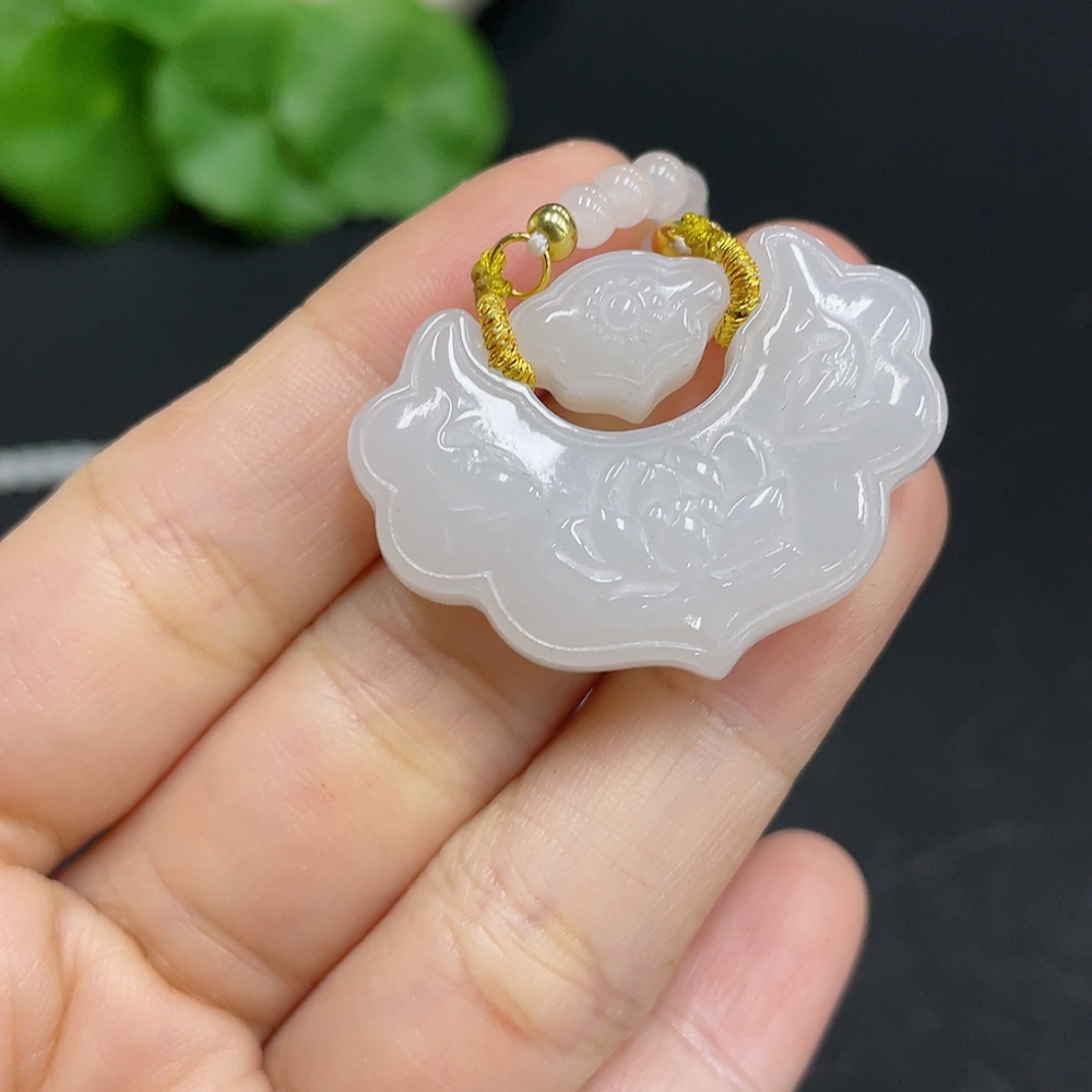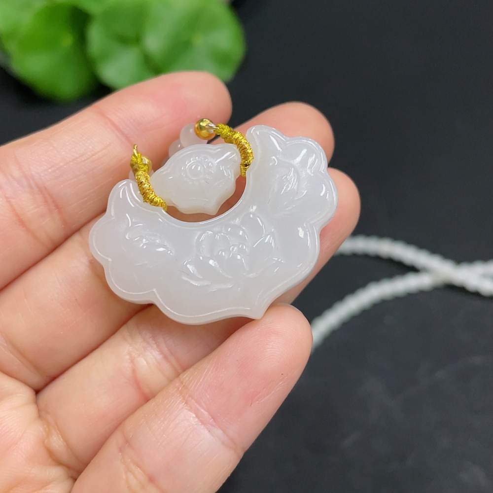 Hetian Jade Pendant Blossoming Wealth Non-Gold