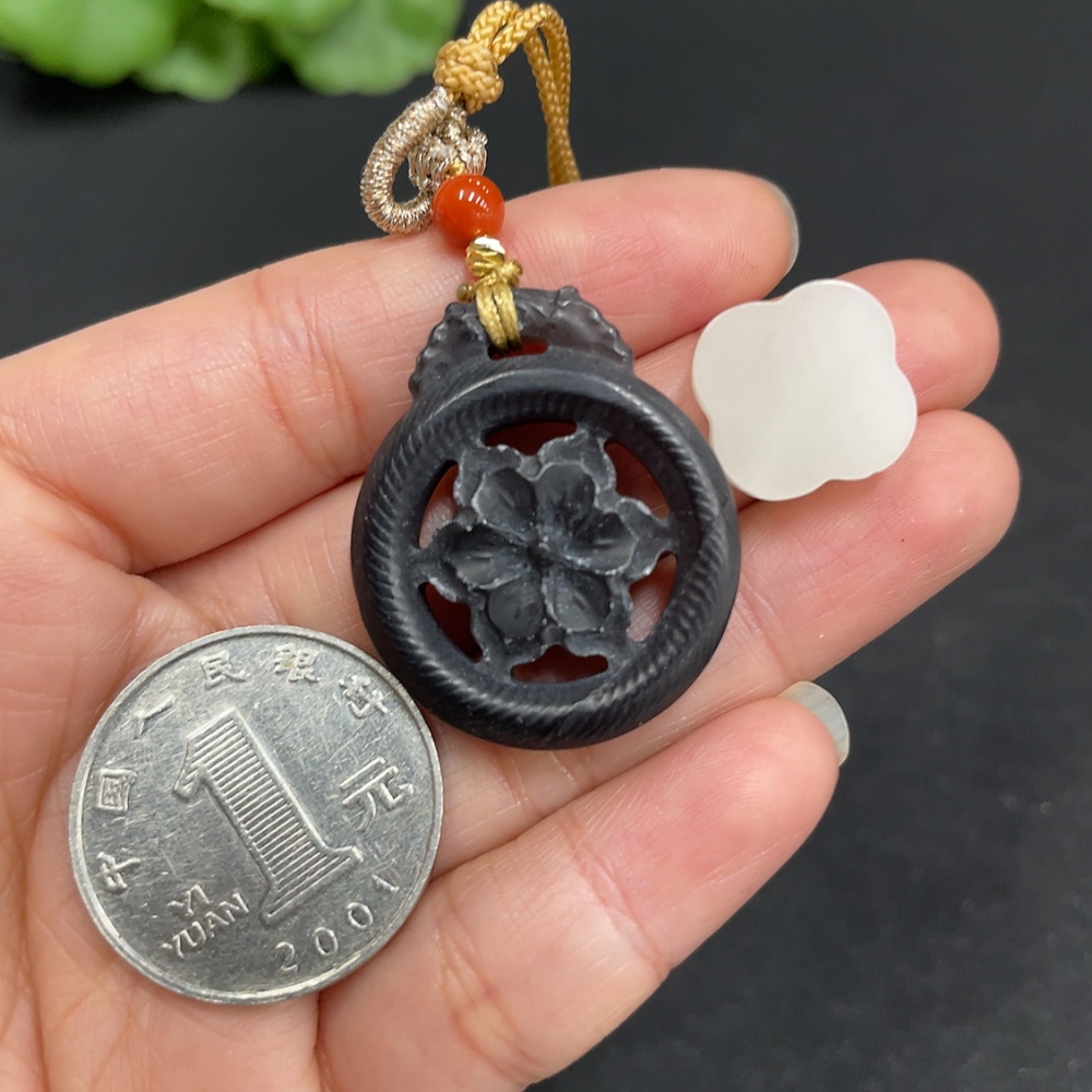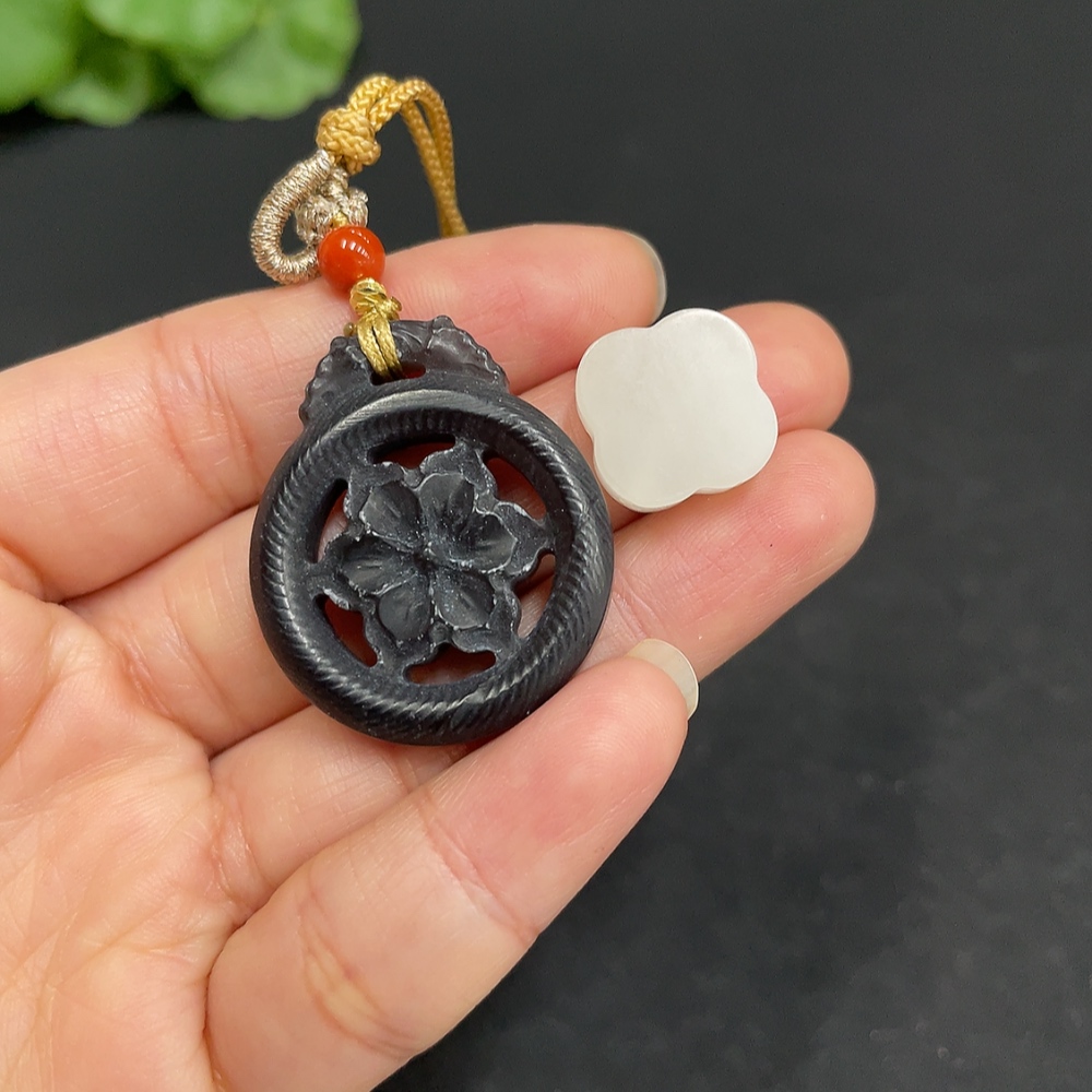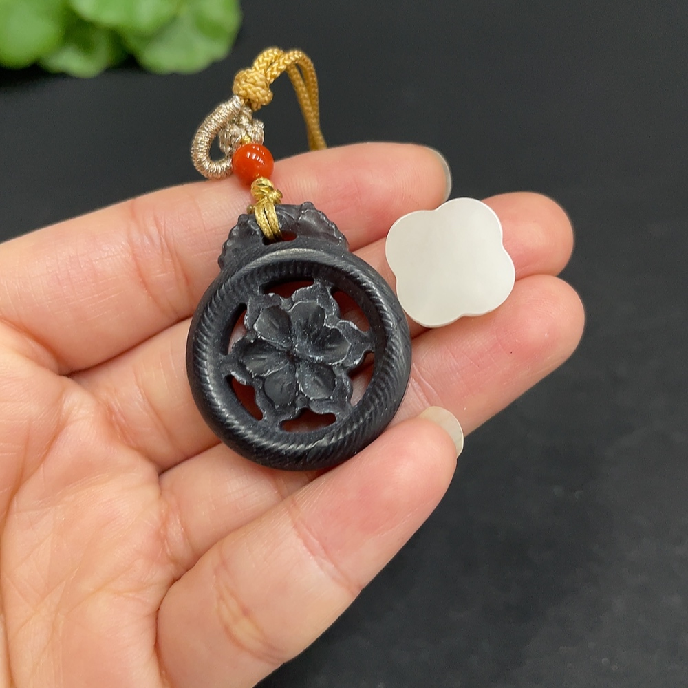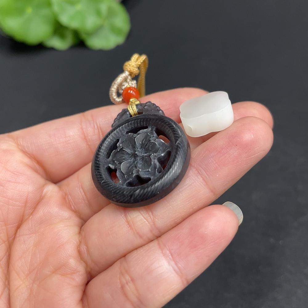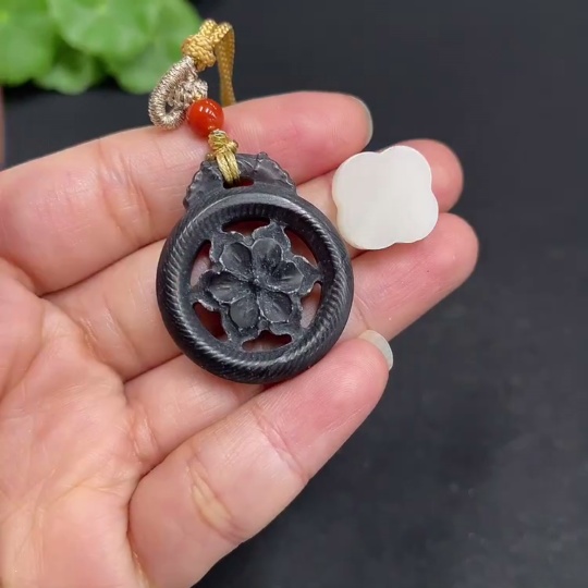 Hetian Jade Pendant Lotus Floral Plaque Total Weight Approx. (Including Rope) 11.1g Beads Not Hetian Jade