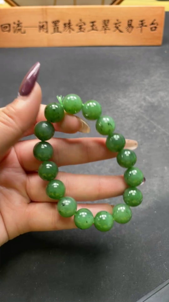 Hetian Jade Jasper Bracelet, approx. 11.9mm beads, total weight approx. 42.5g