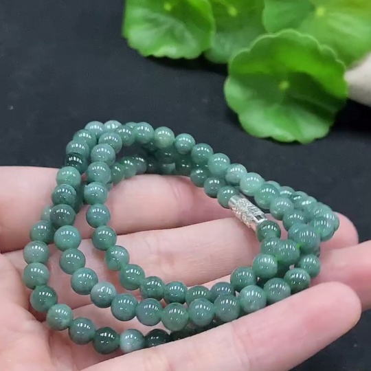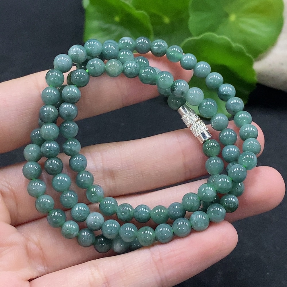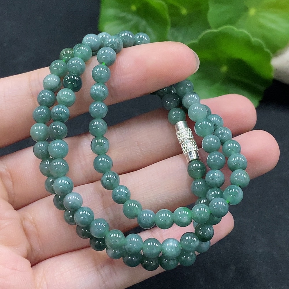 Jadeite Bead Necklace Approx. 5mm Total Weight About 21.15g Non-Gold Inlaid