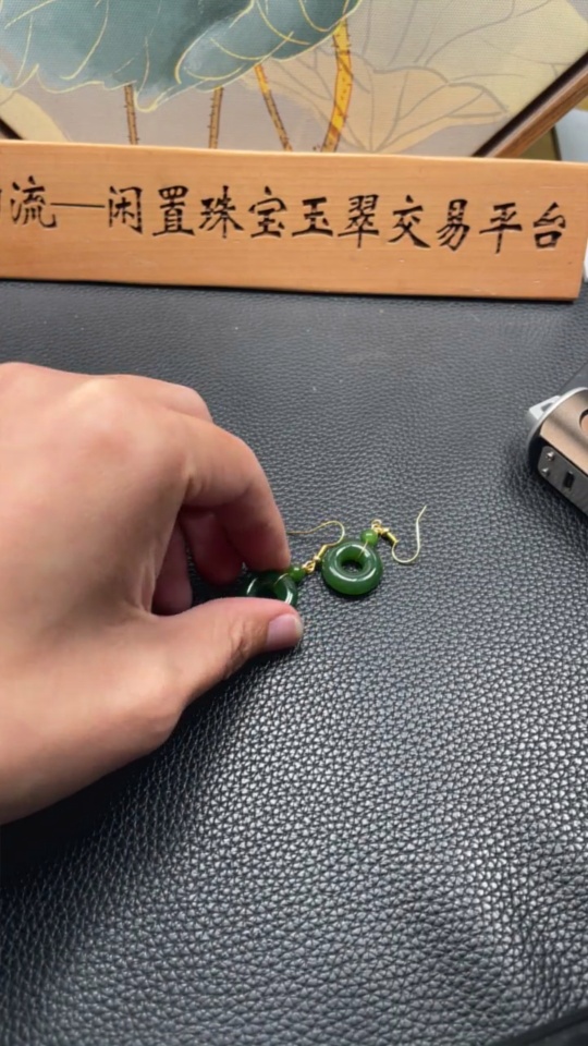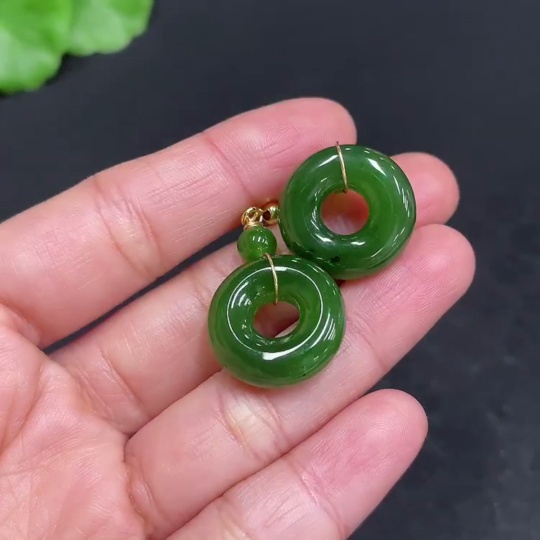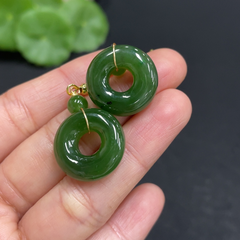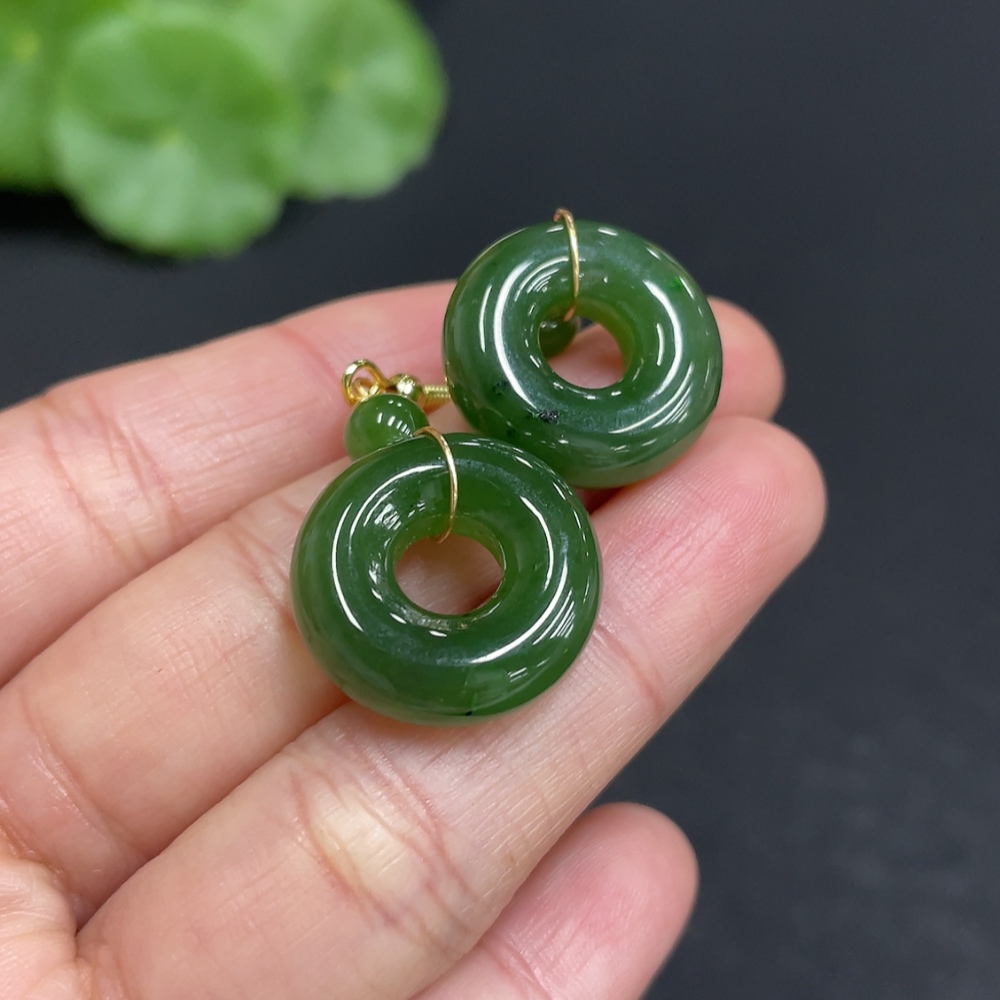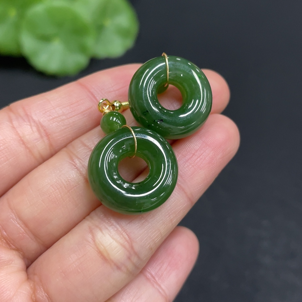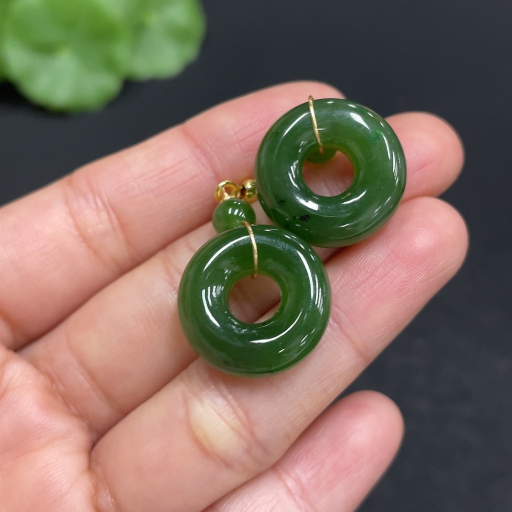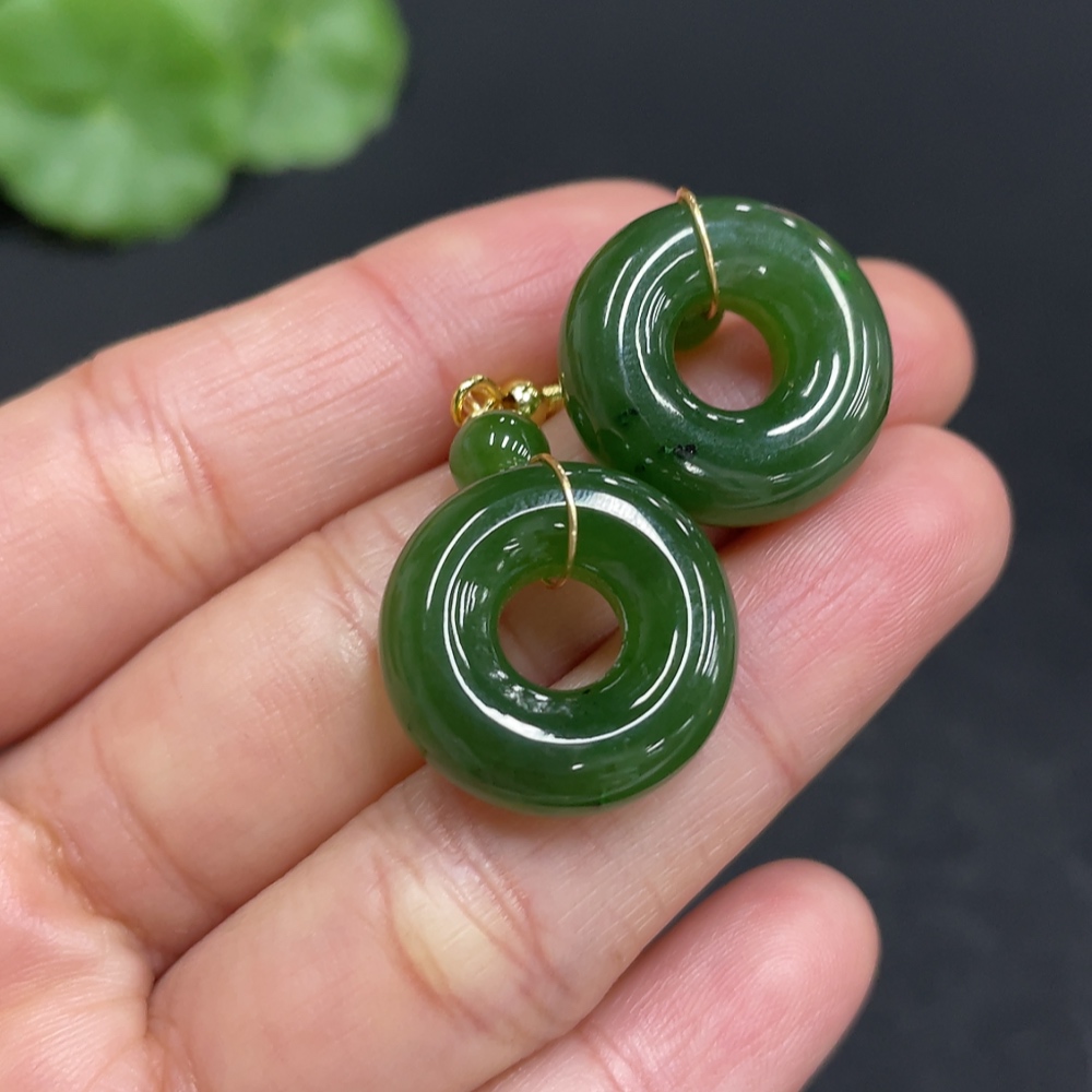 Hetian Jade Donut Earrings Non-Gold Inlaid Total Weight Approx. 7.7g