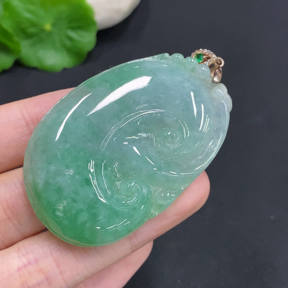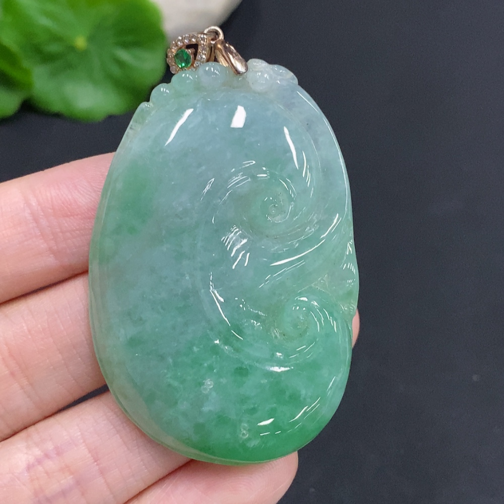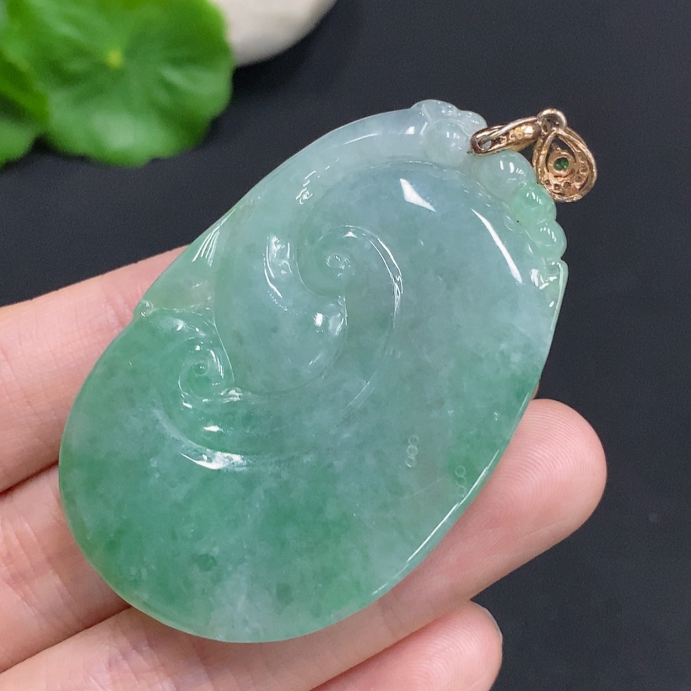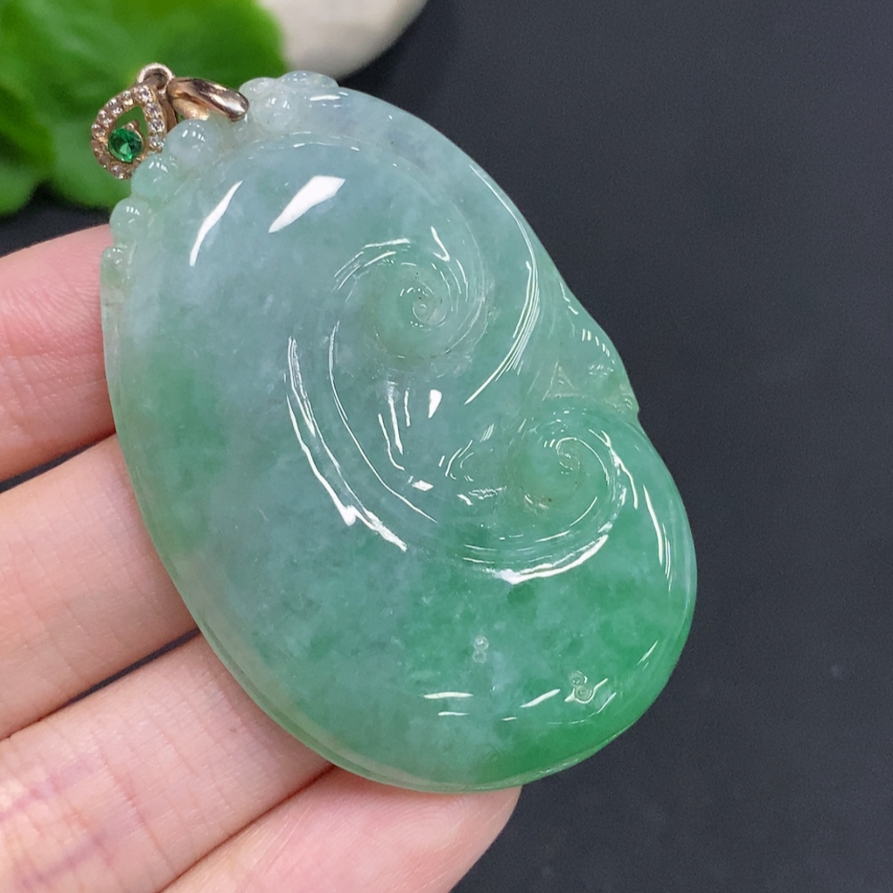 Jadeite Ruyi Pendant Non-Gold Inlaid Total Weight Approx. 30.1g