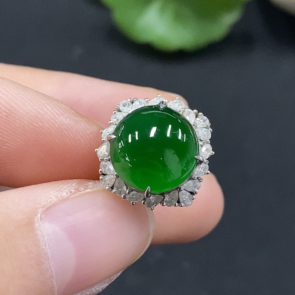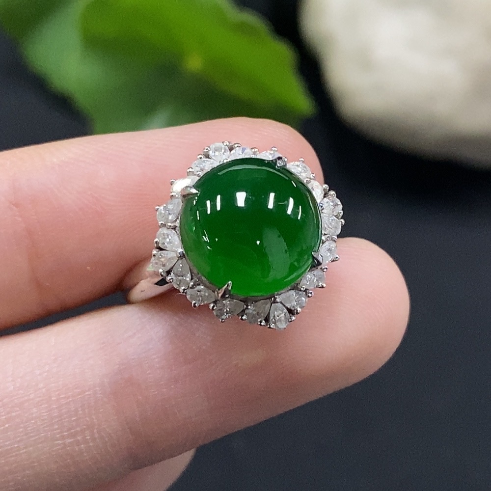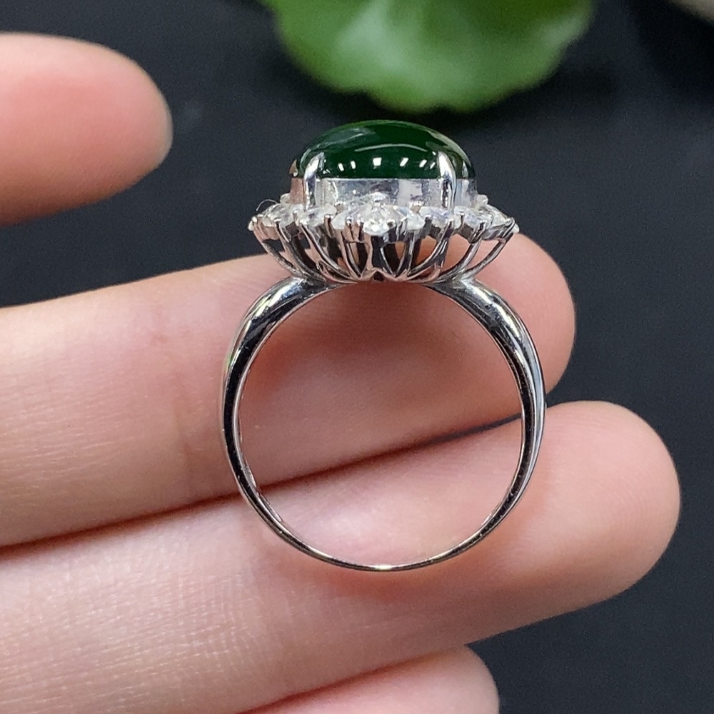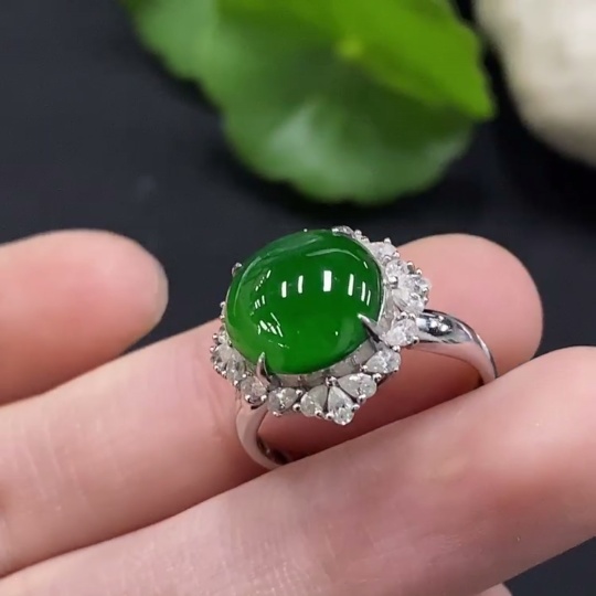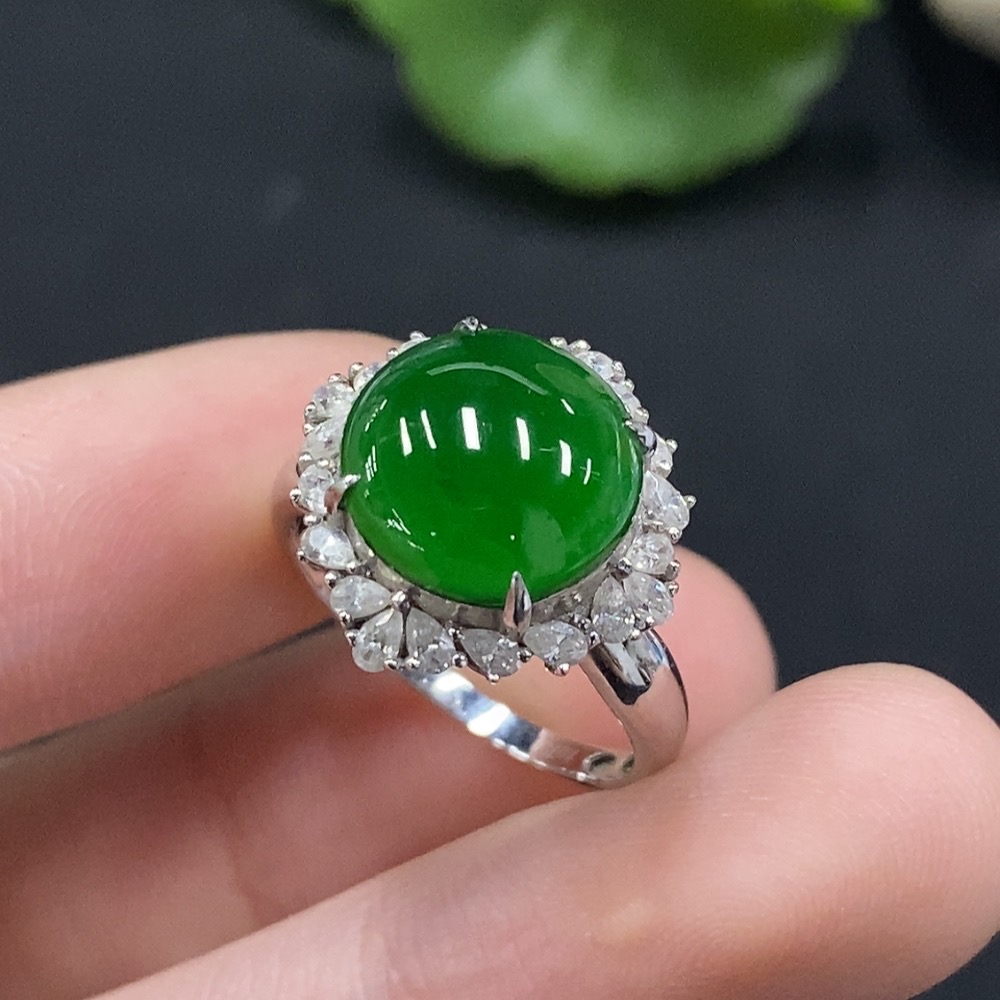 Jadeite Cabochon Solitaire Ring 18K Gold Diamond-Free Size 12 Total Weight Approx. 3.39g