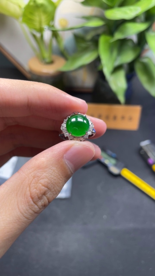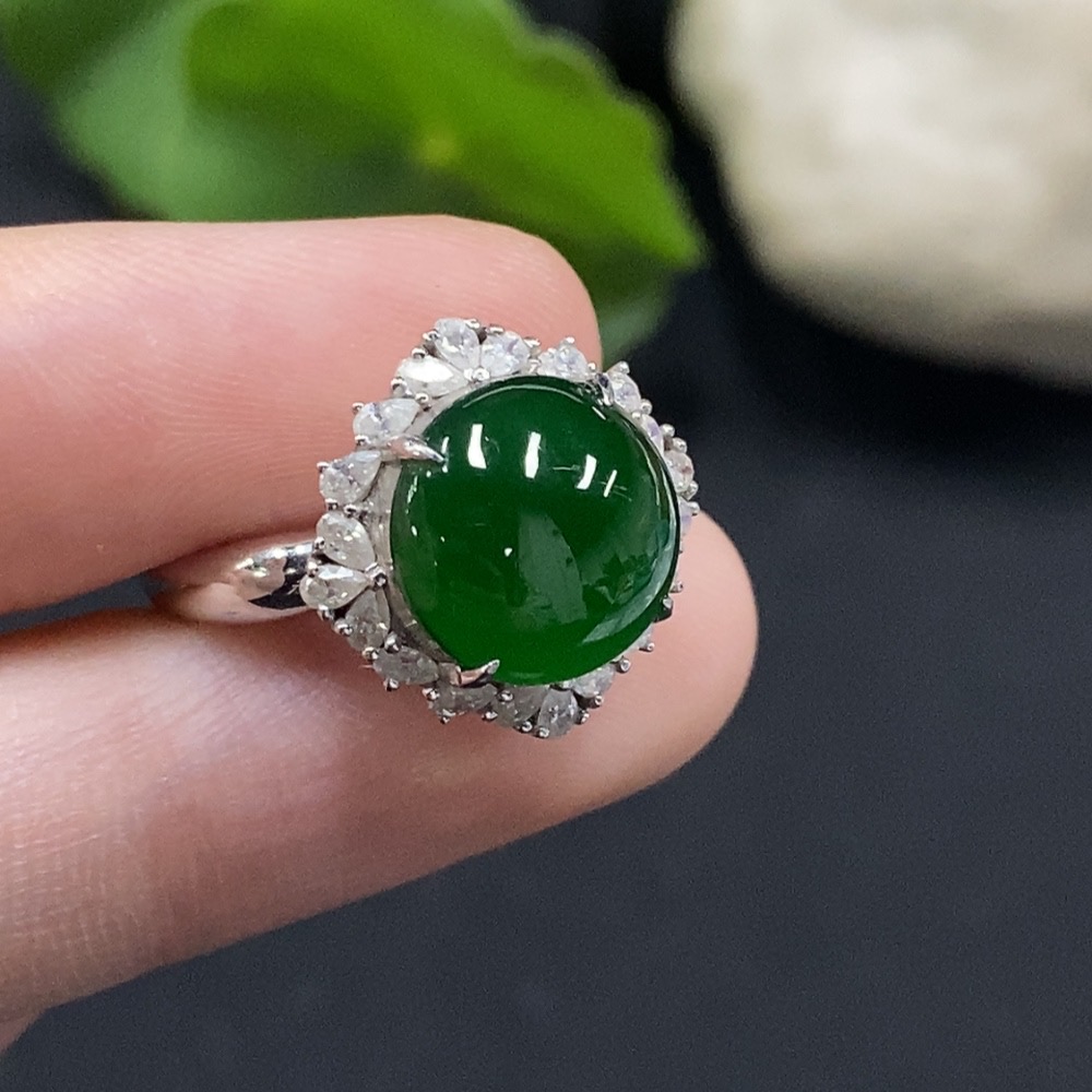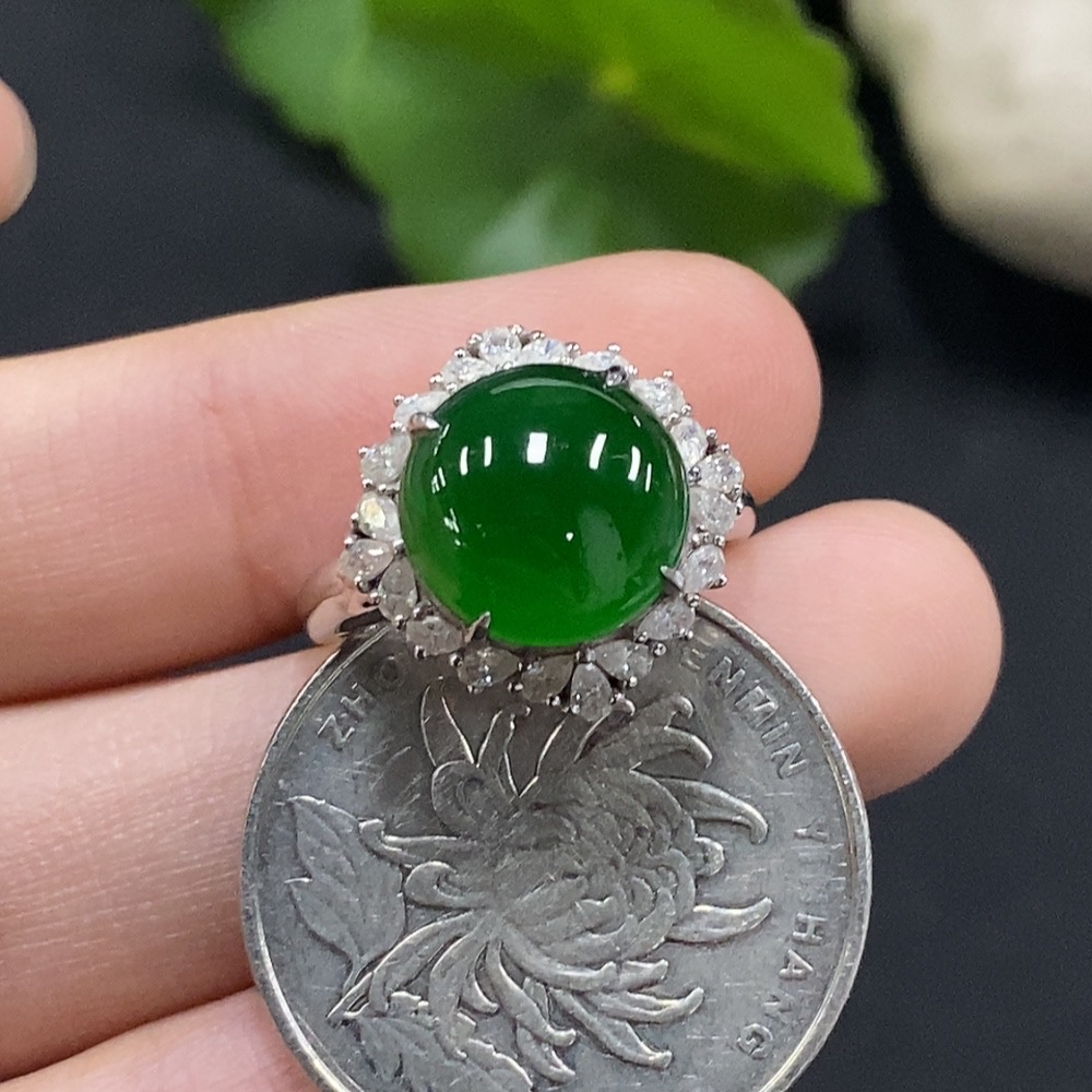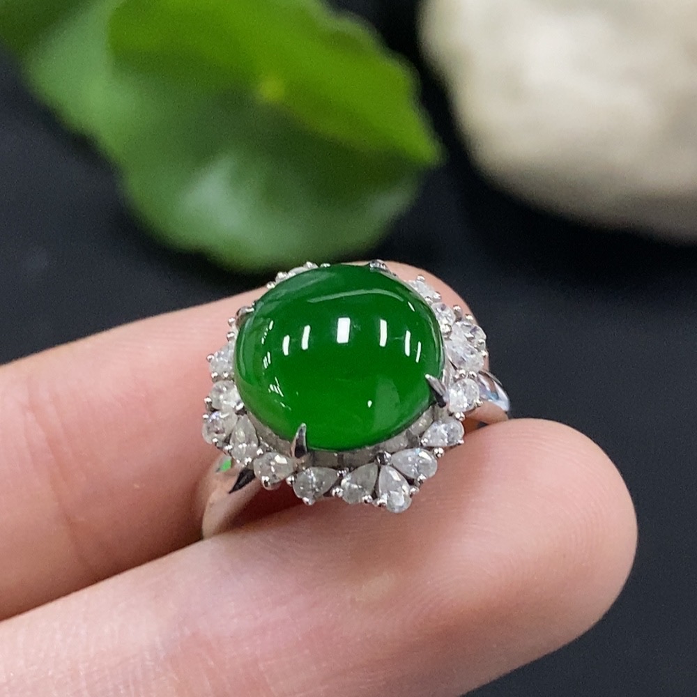 Jadeite Cabochon Solitaire Ring 18K Gold Diamond-Free Size 12 Total Weight Approx. 3.39g