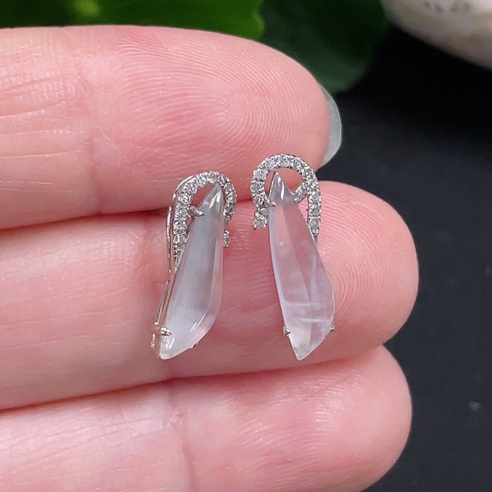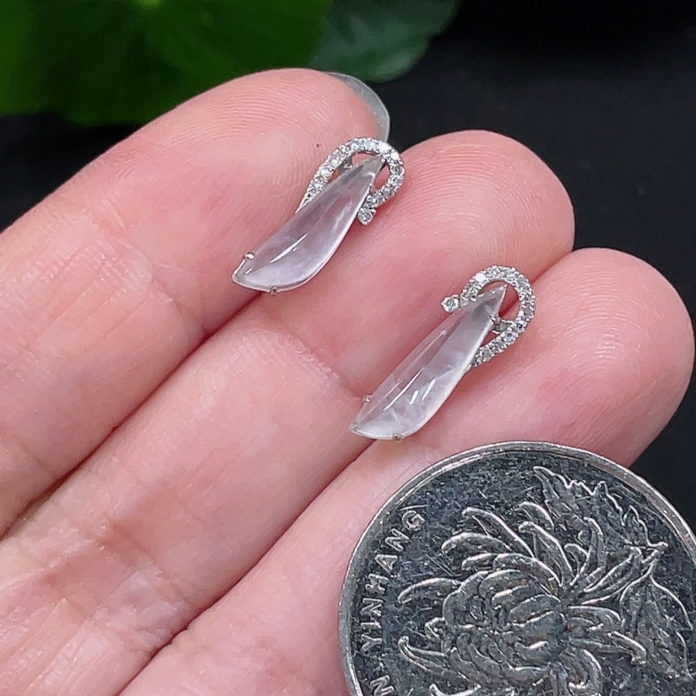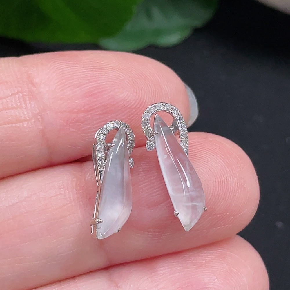 Jadeite Earrings Set in 18K Gold with Diamond Accents, Total Weight Approximately 1.3g