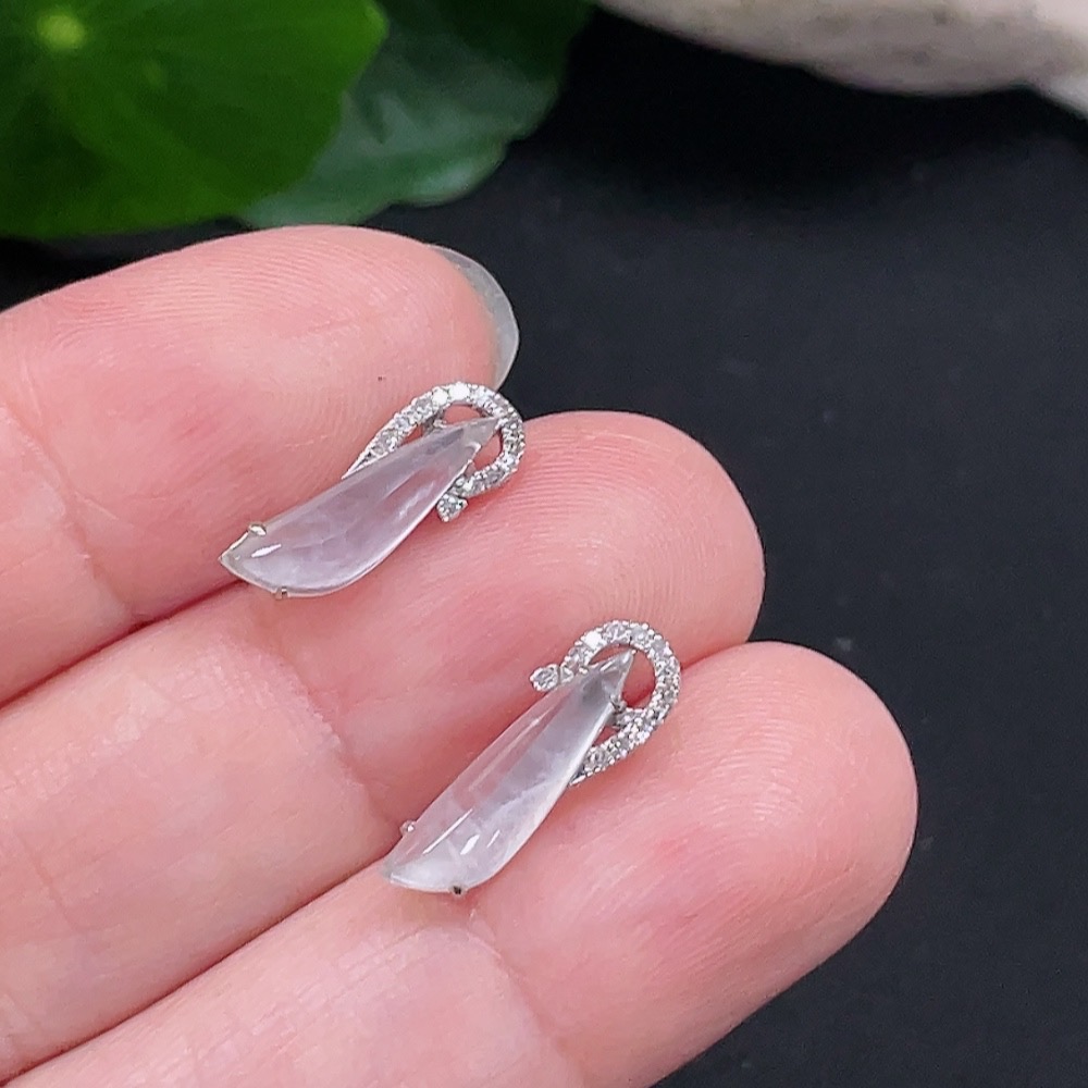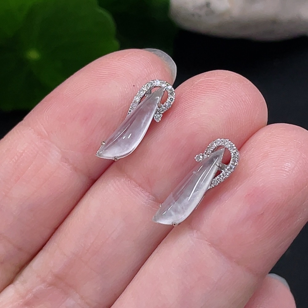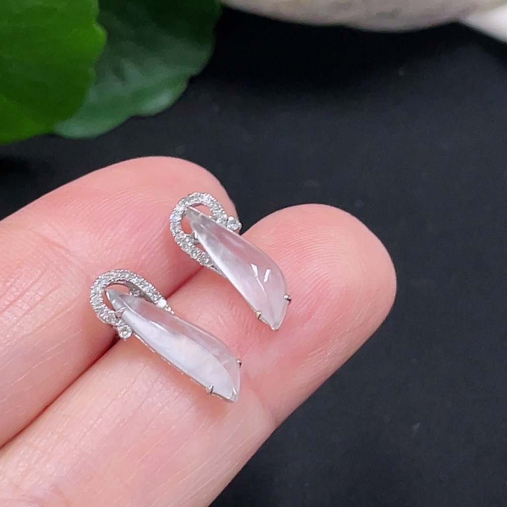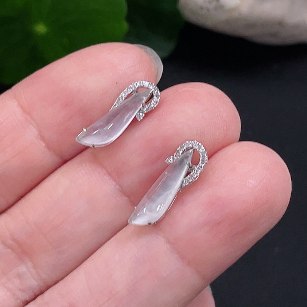 Jadeite Earrings Set in 18K Gold with Diamond Accents, Total Weight Approximately 1.3g