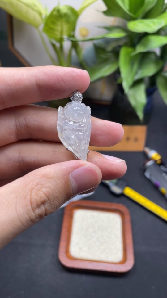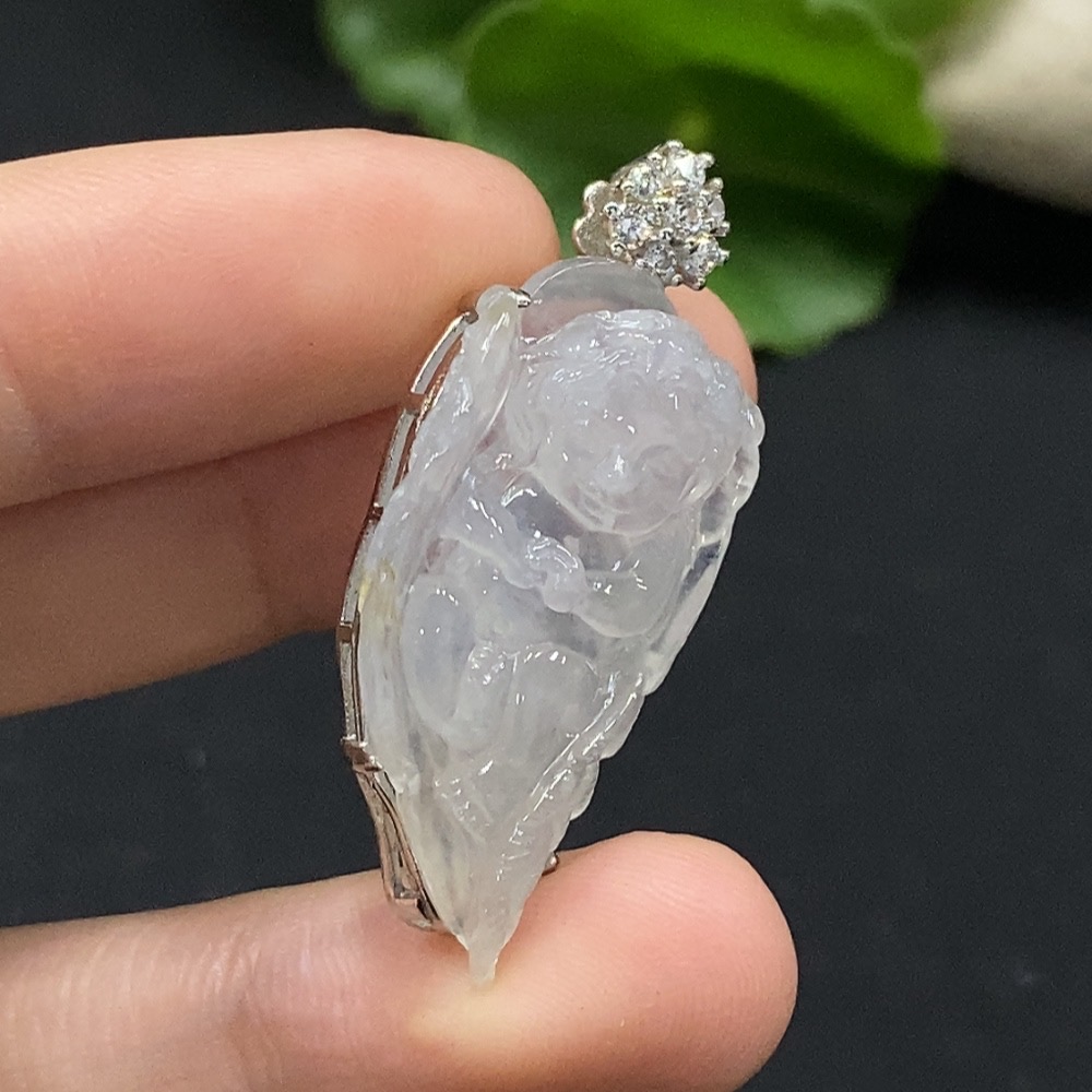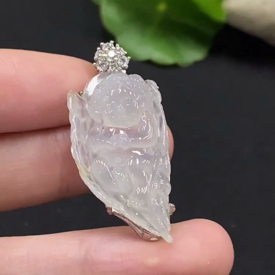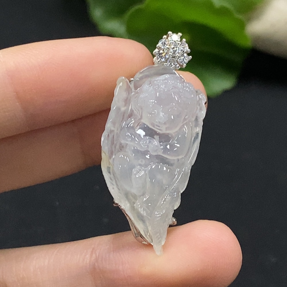 Jadeite Angel Inlaid Pendant Non-Gold Inlaid Total Weight Approx. 6.15g