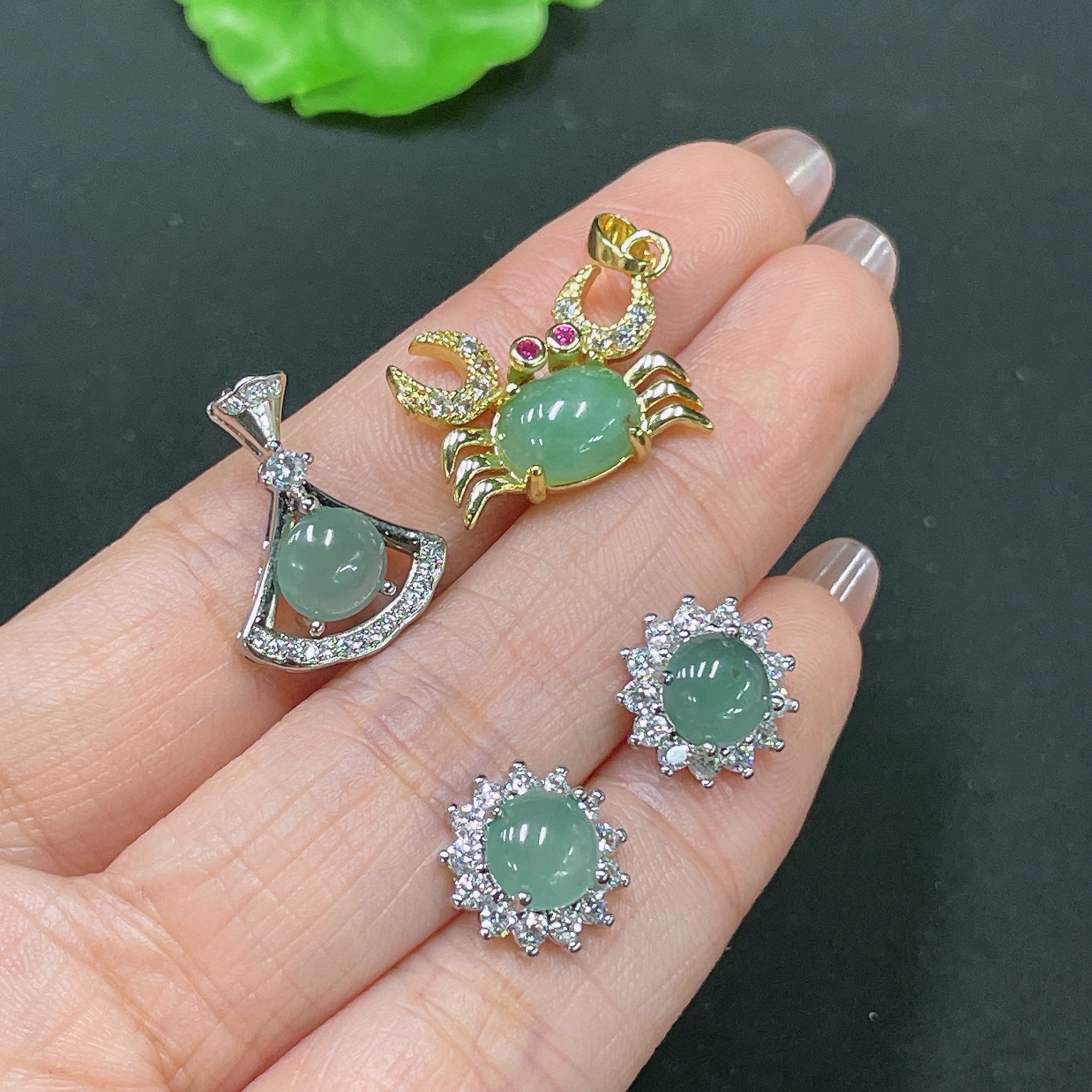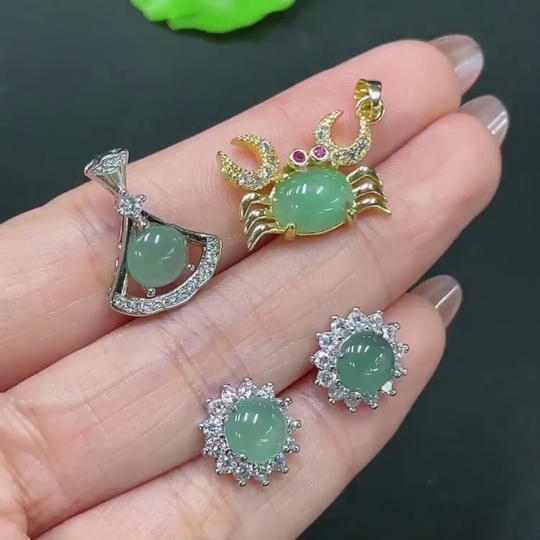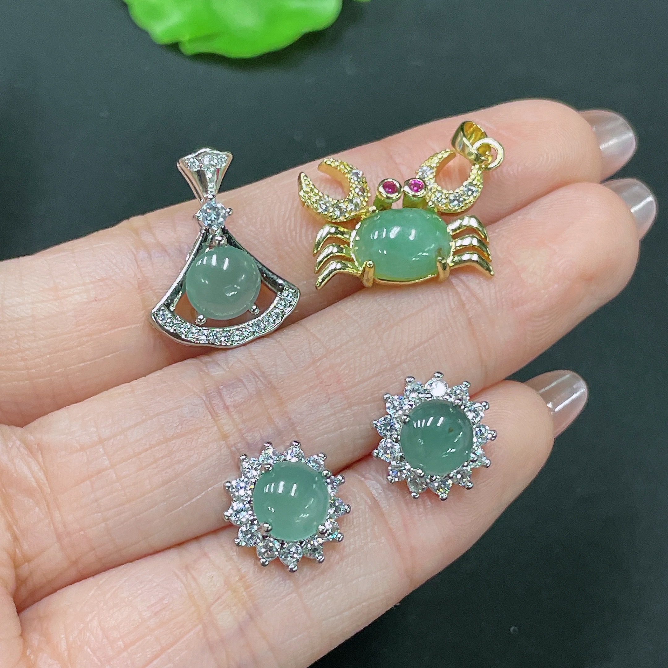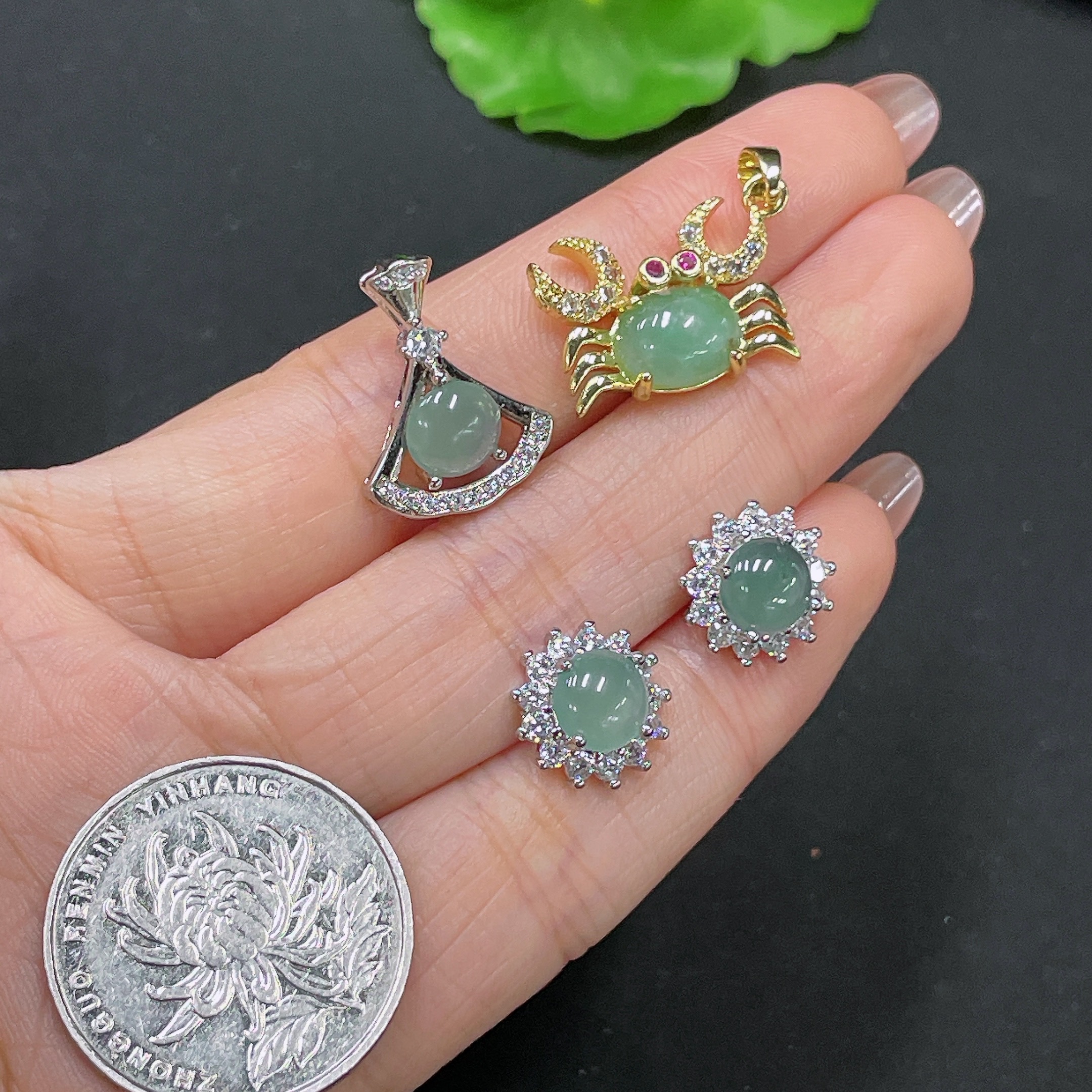 Jadeite inlaid earrings/inlaid pendant non-gold