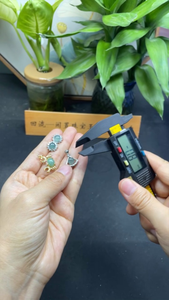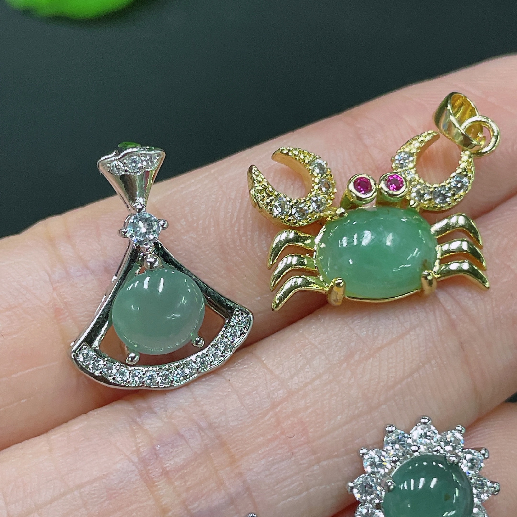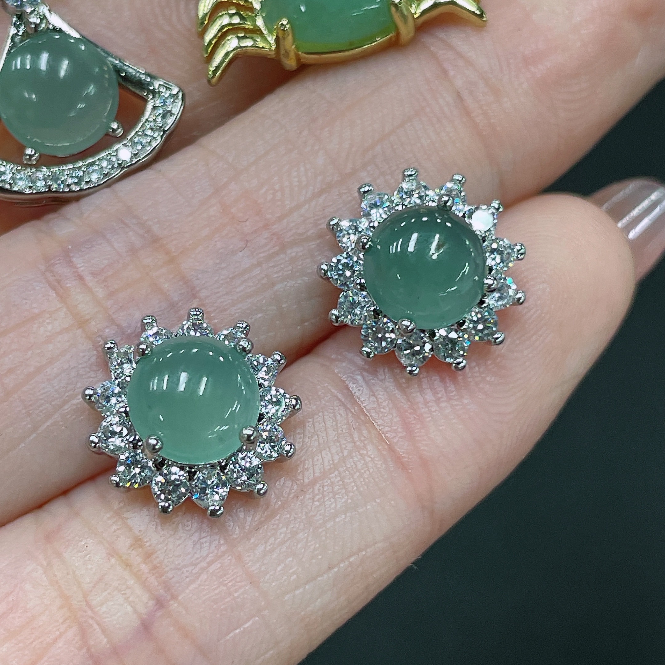 Jadeite inlaid earrings/inlaid pendant non-gold