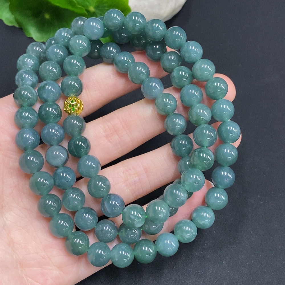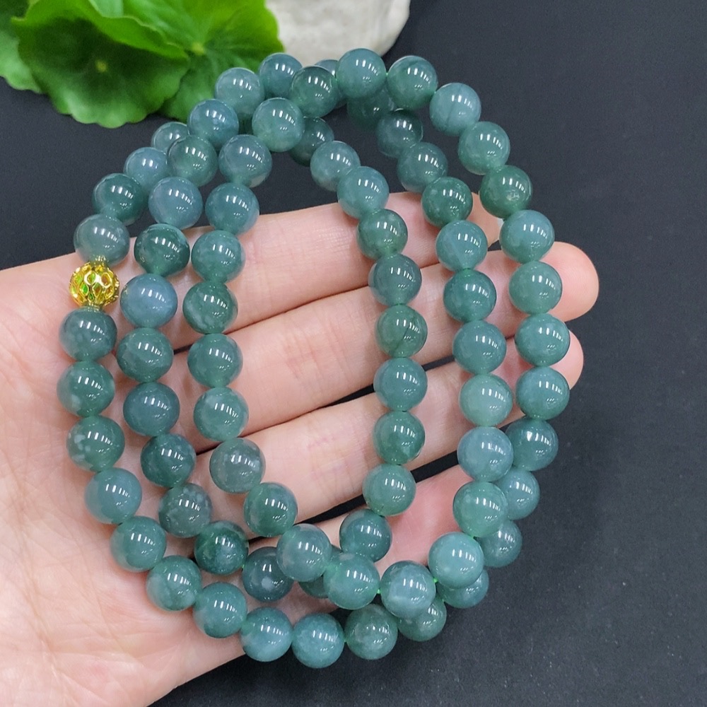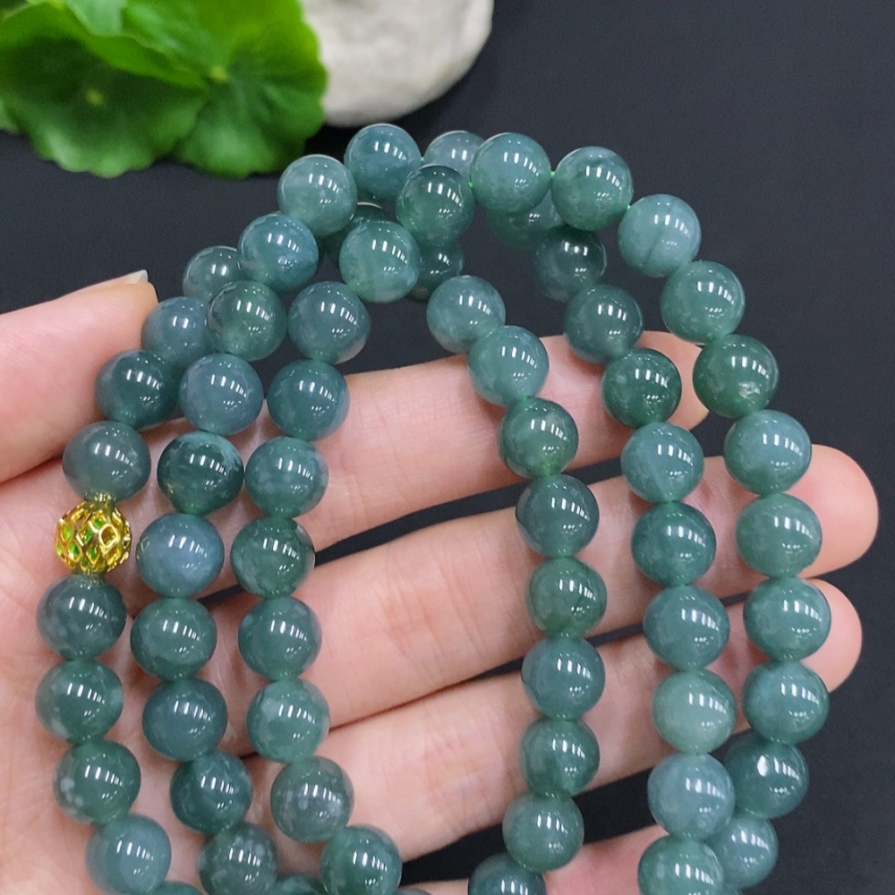 Jadeite Bead Necklace Non-Gold Inlaid Total Weight Approx. 88.7g Size About 8.6mm