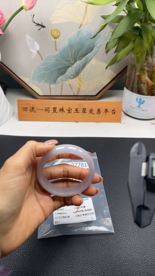 Jadeite round bracelet size 52.5 with crack total weight approx. 45.67g