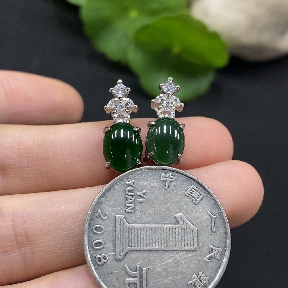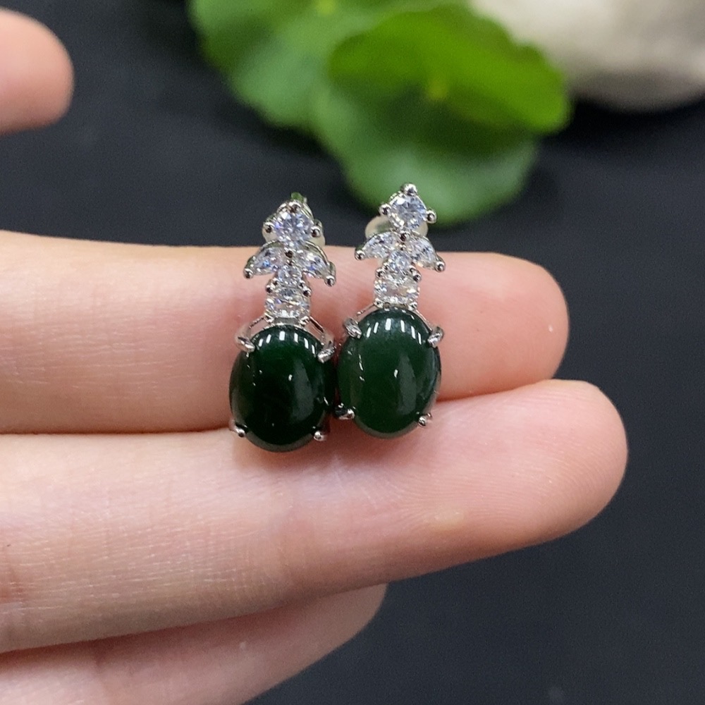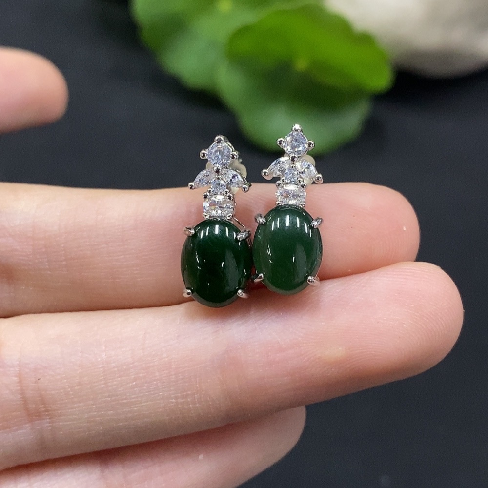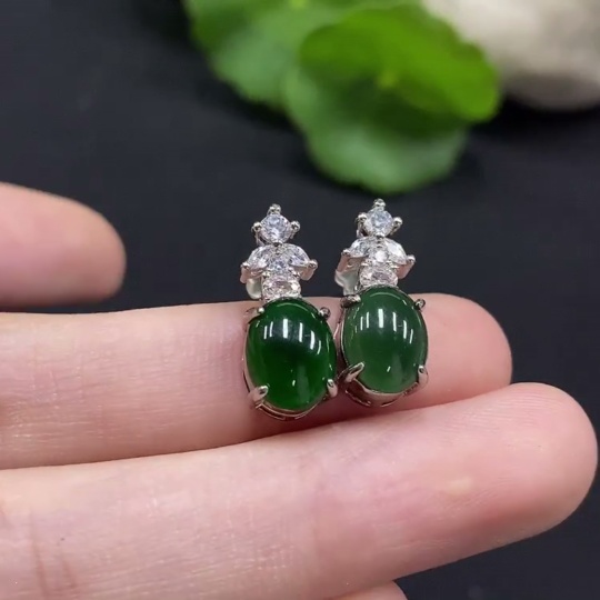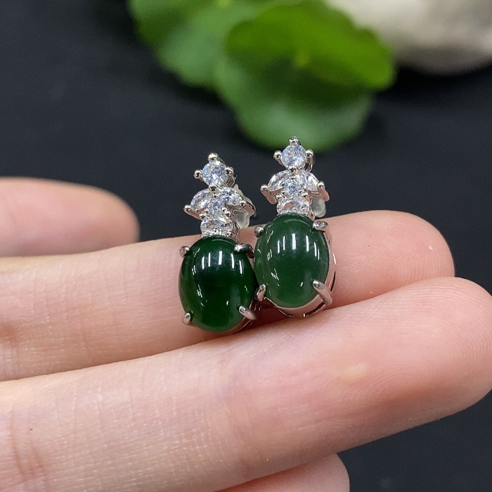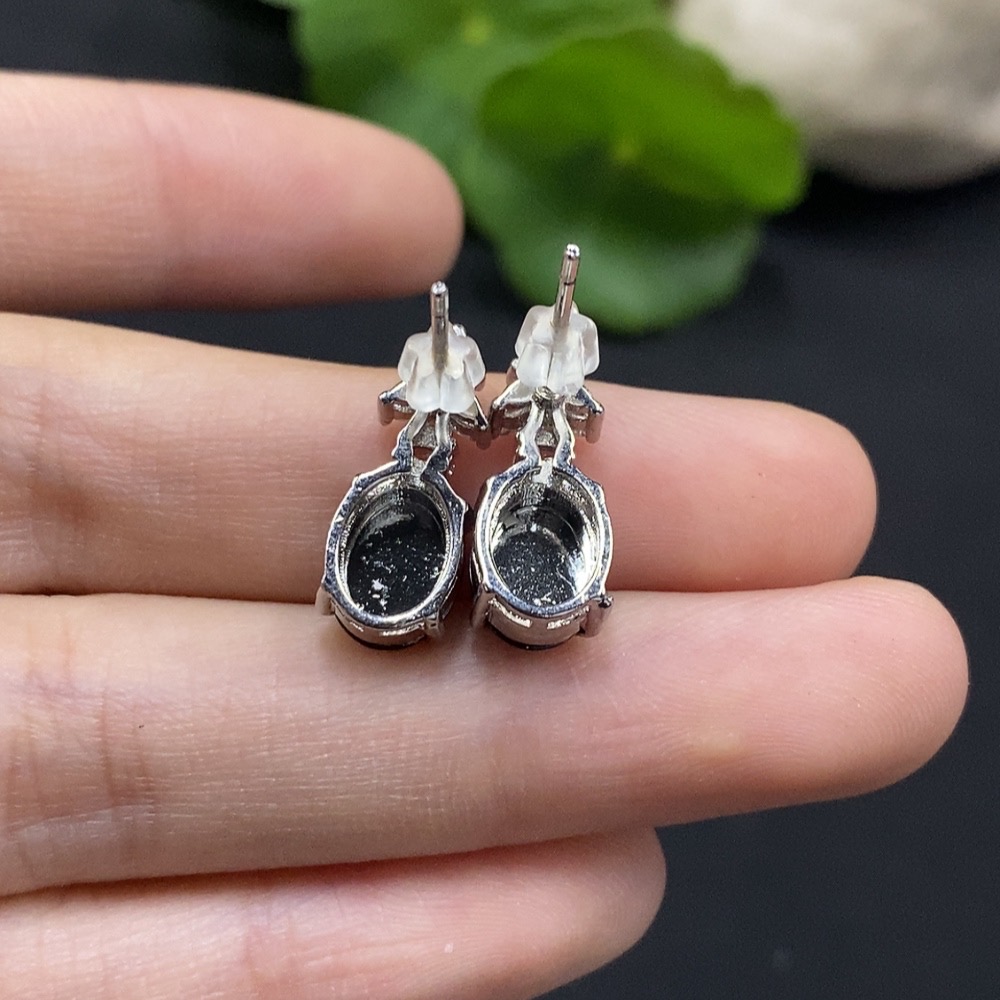 Jadeite Cabochon Stud Earrings Non-Gold Total Weight Approx. 2.88g