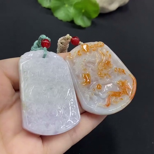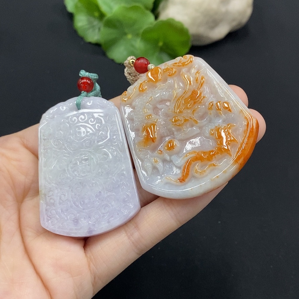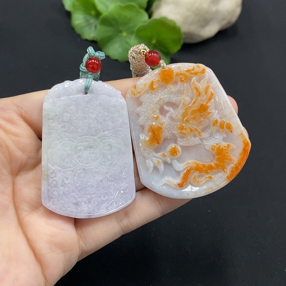 Jadeite Dragon Plaque / Antique Pendant with Non-Grade A Beads