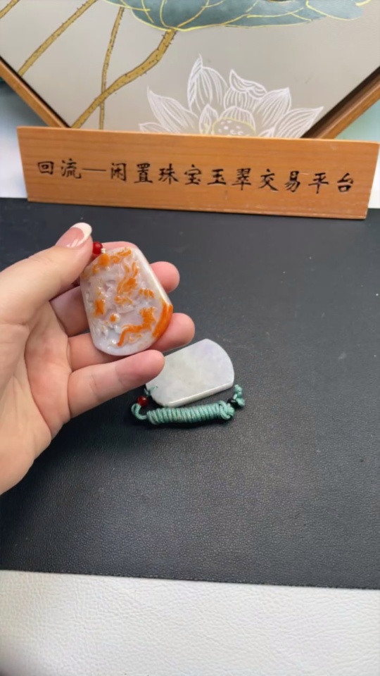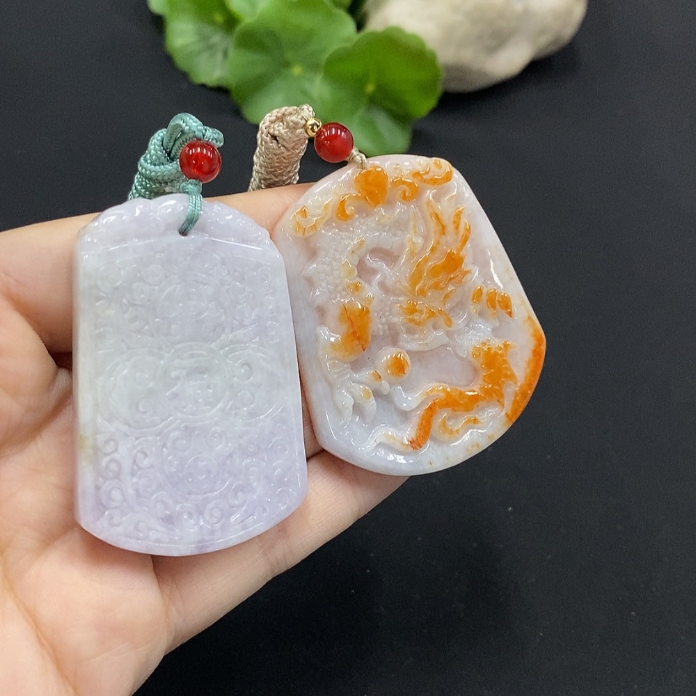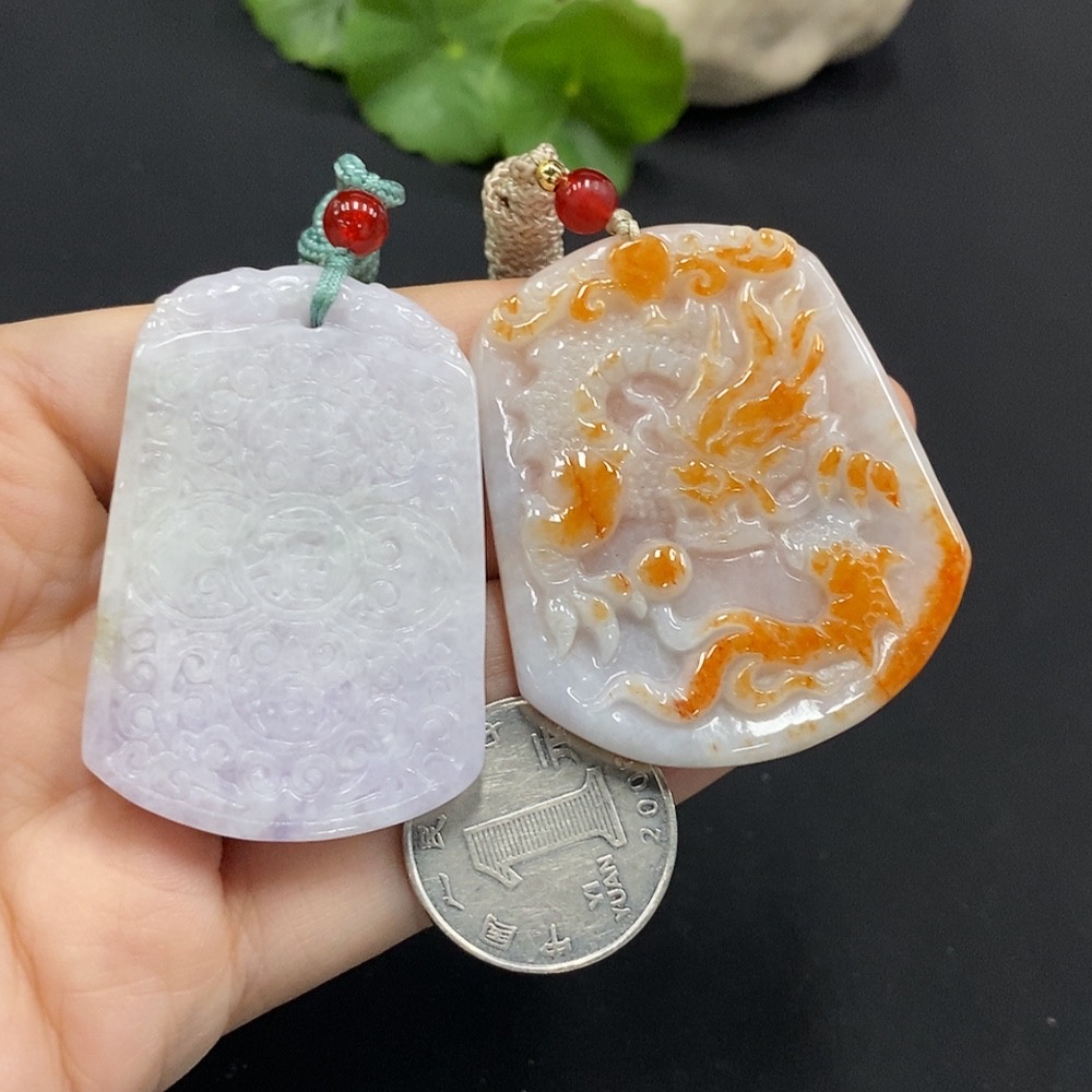 Trezaar - Jadeite Dragon Plaque / Antique PendaitPlite with §it§gGrade A Beads