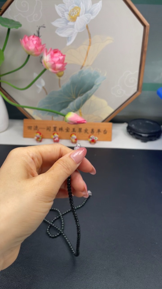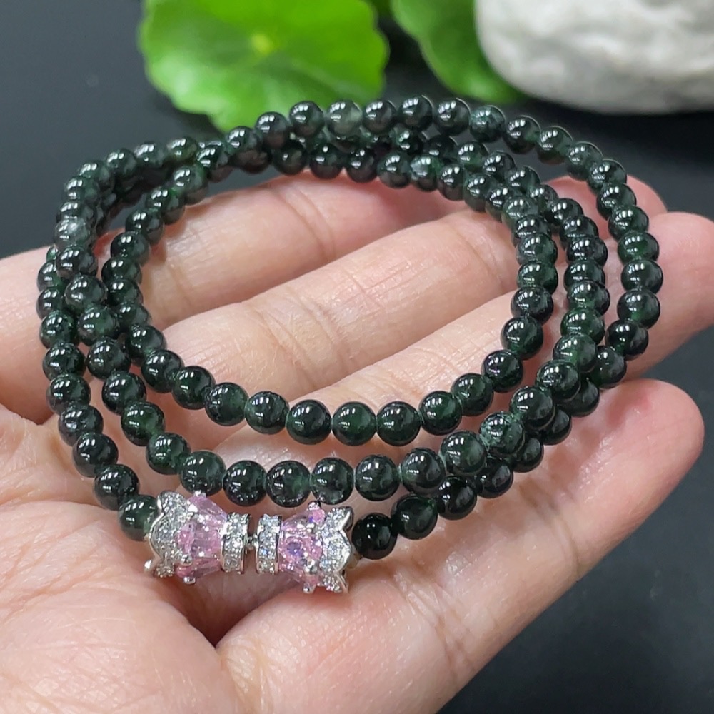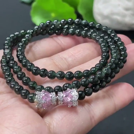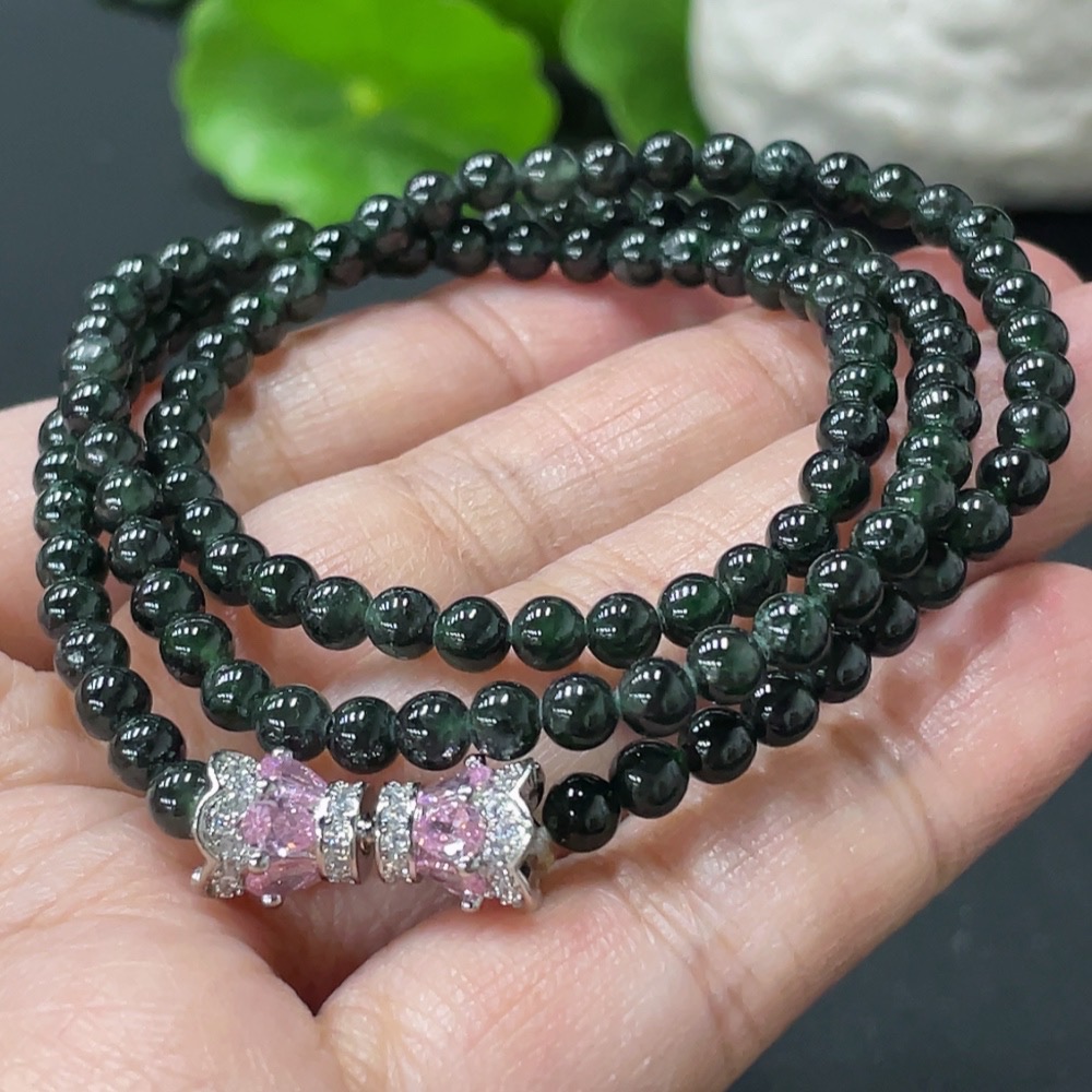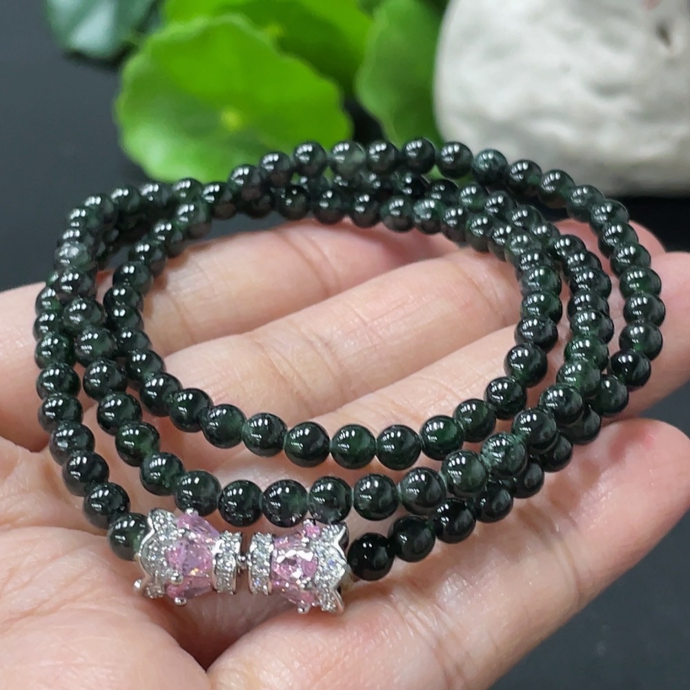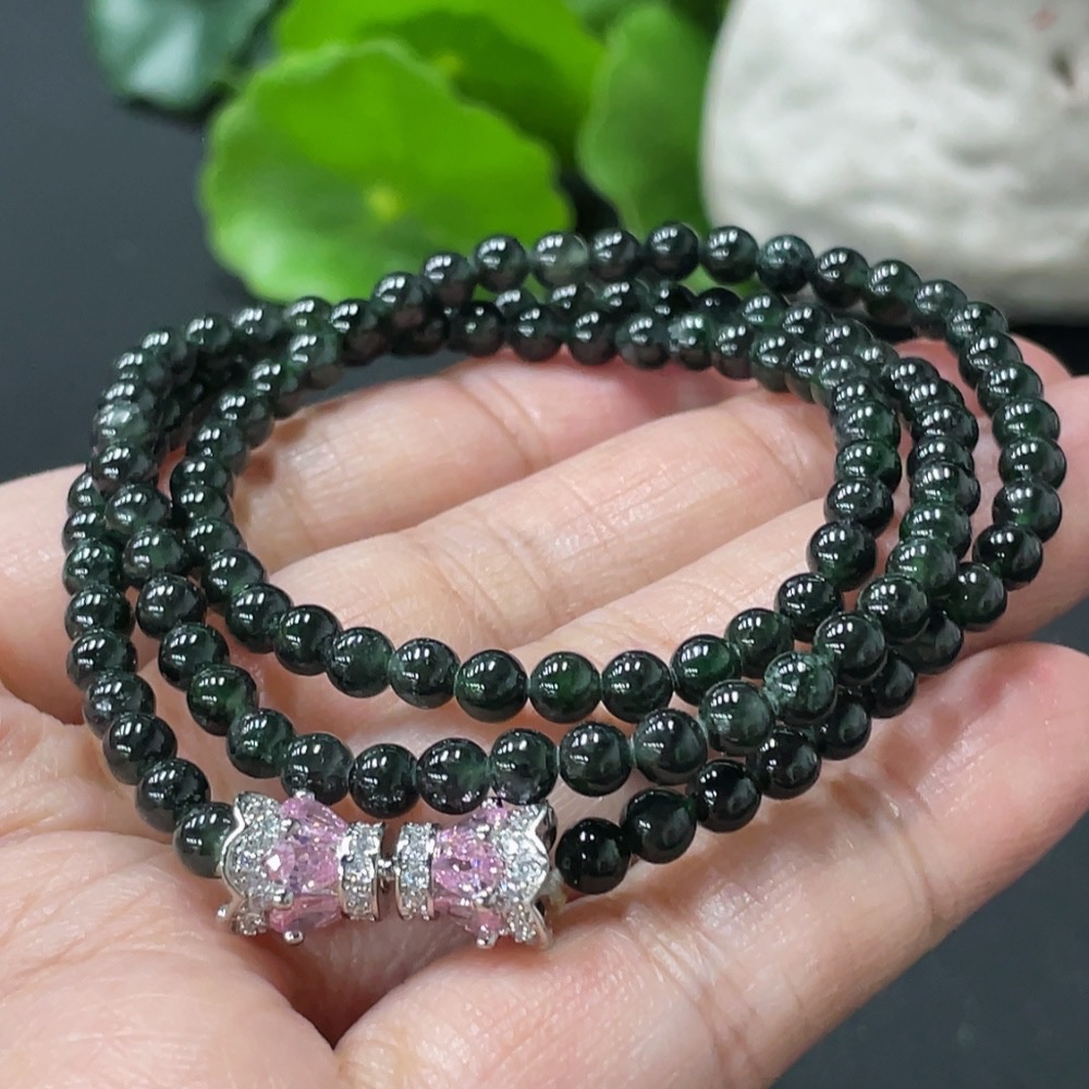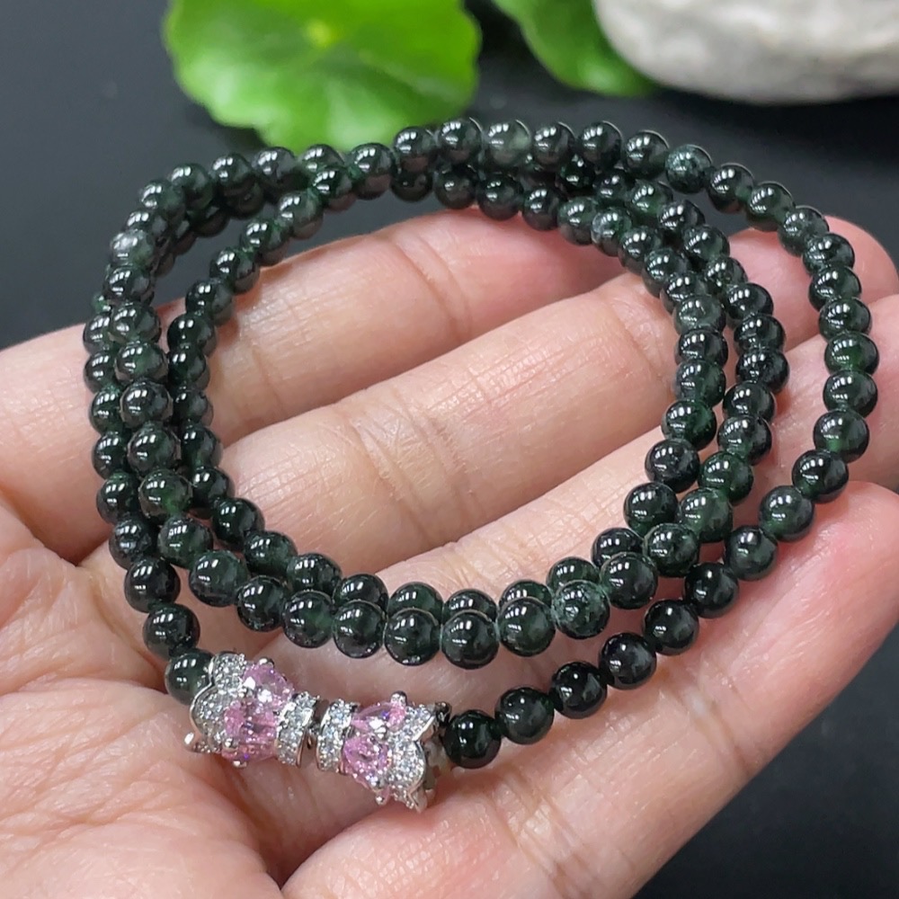 Jadeite bead necklace, approximately 3.9mm, total weight about 16.4g, non-gold clasp