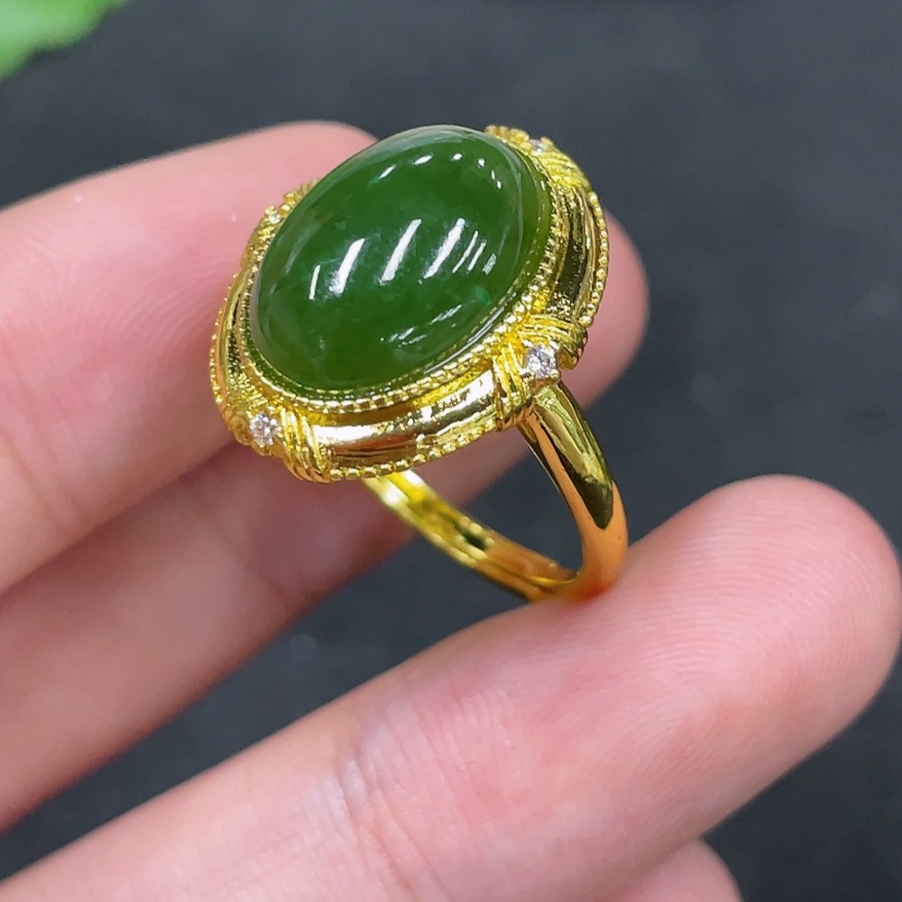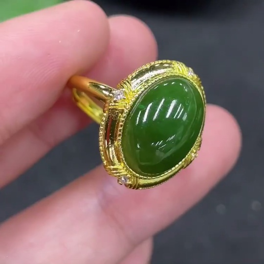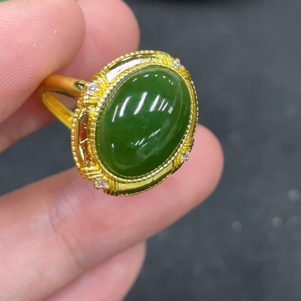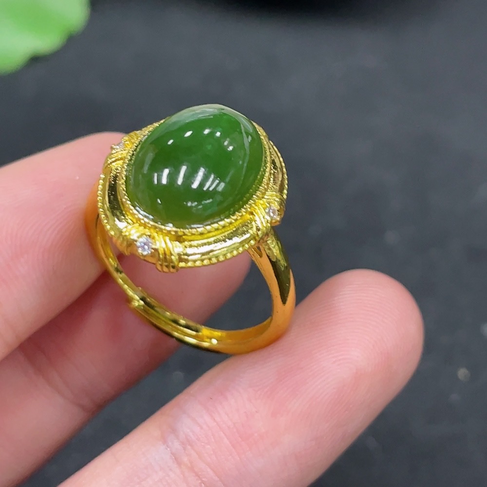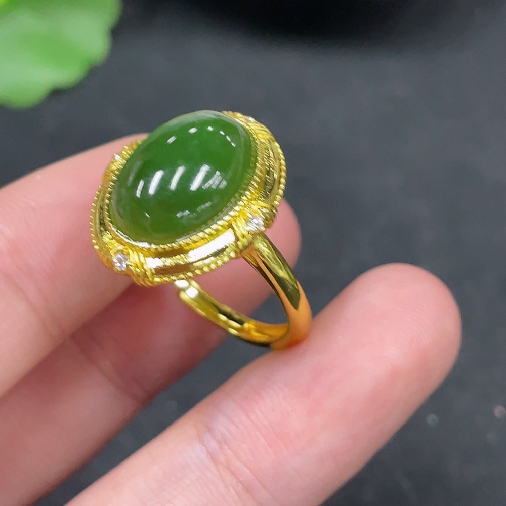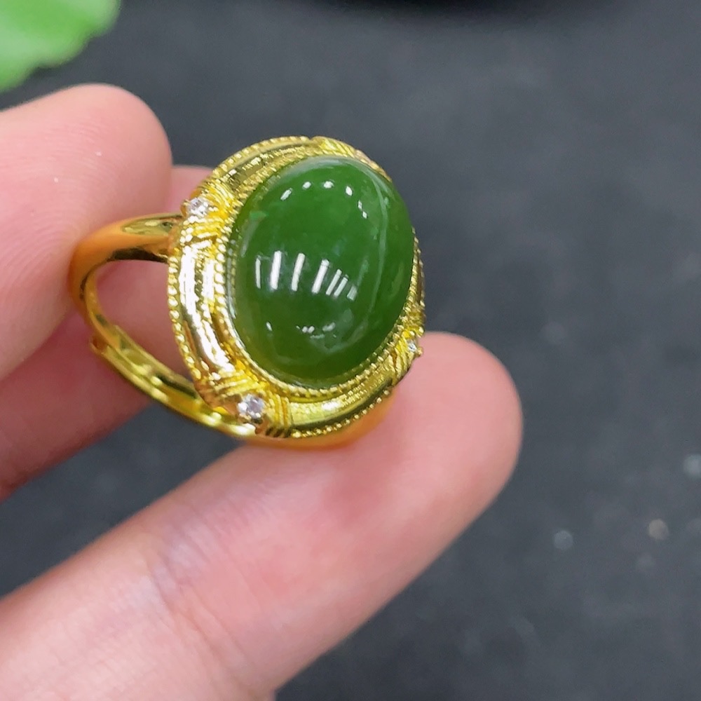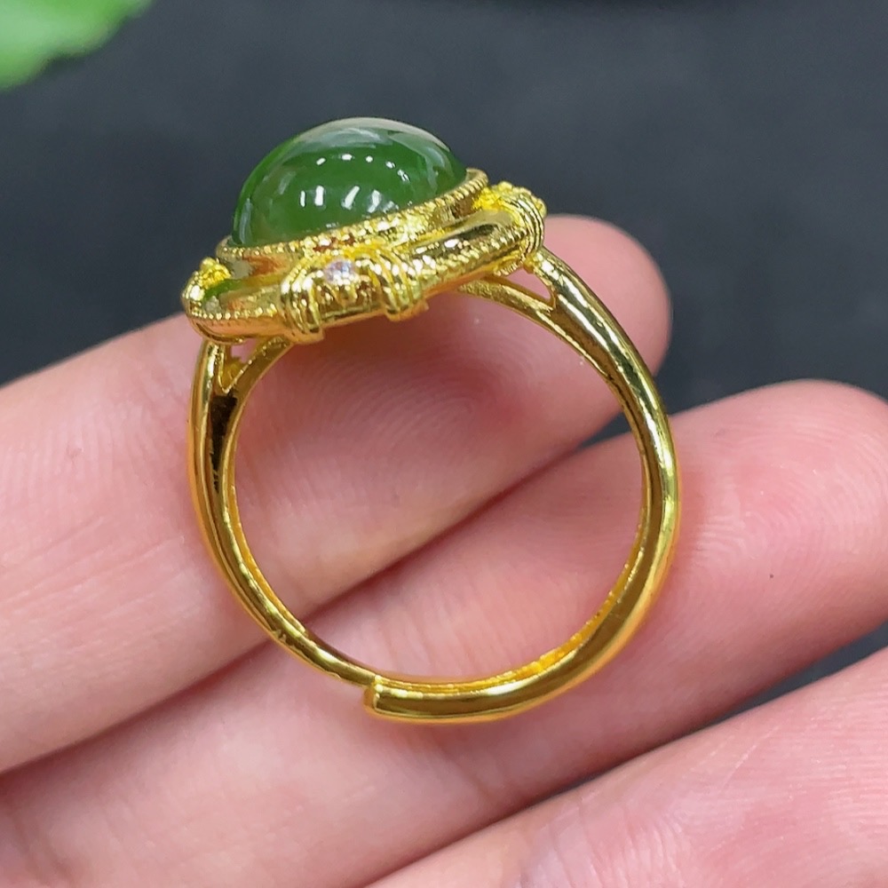 Hetian Jade Jasper Inlaid Adjustable Ring Non-Gold Total Weight Approx. 3.8g