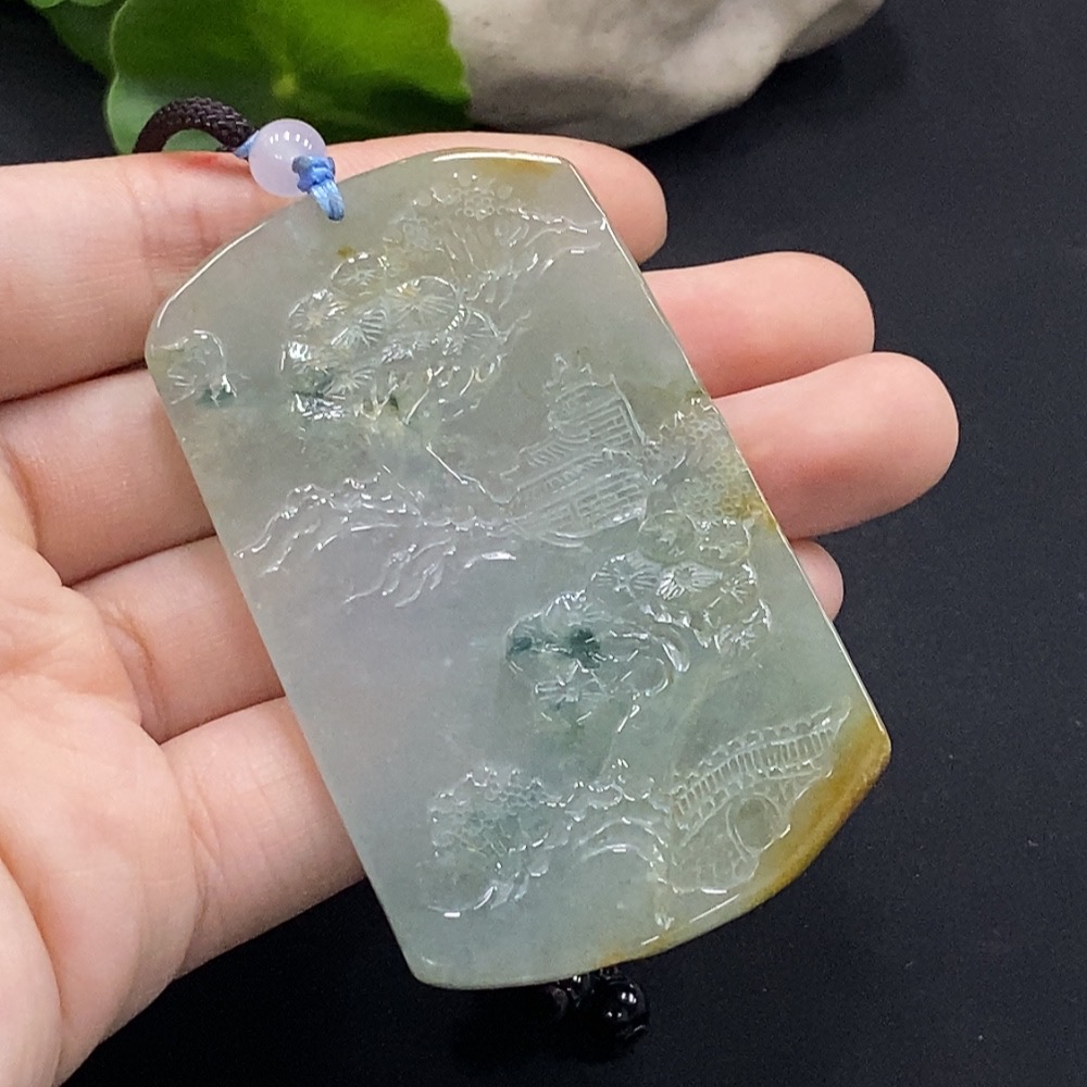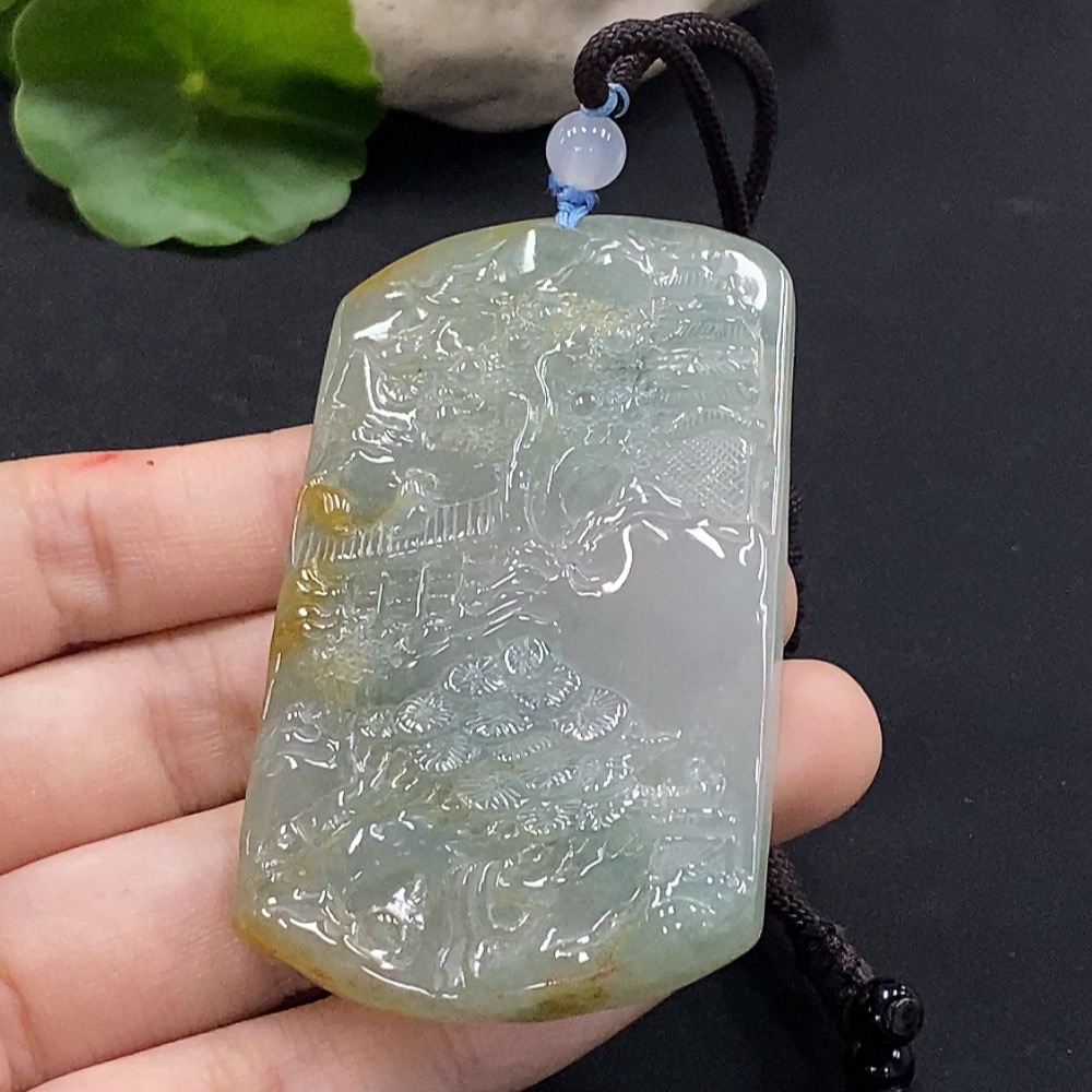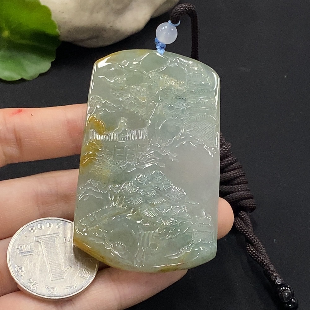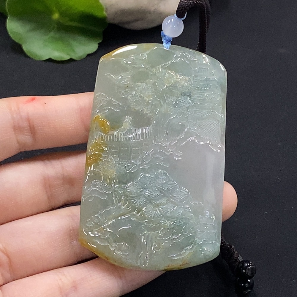 Jadeite Landscape Pendant Total Weight Approx. 44.89g With Non-Grade A Beads