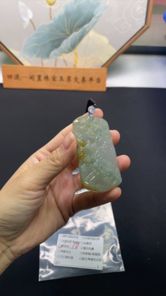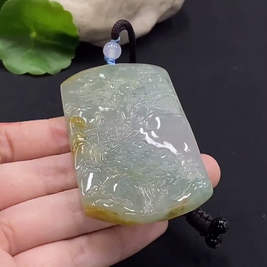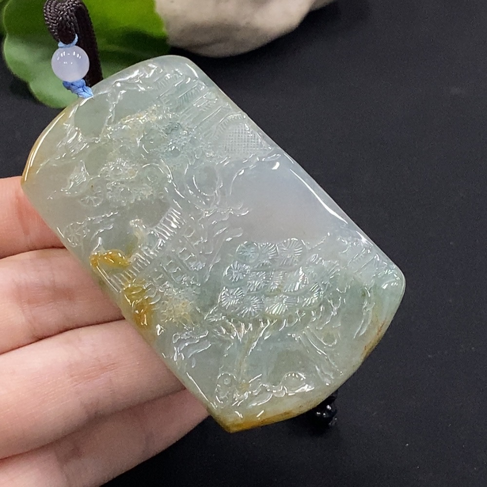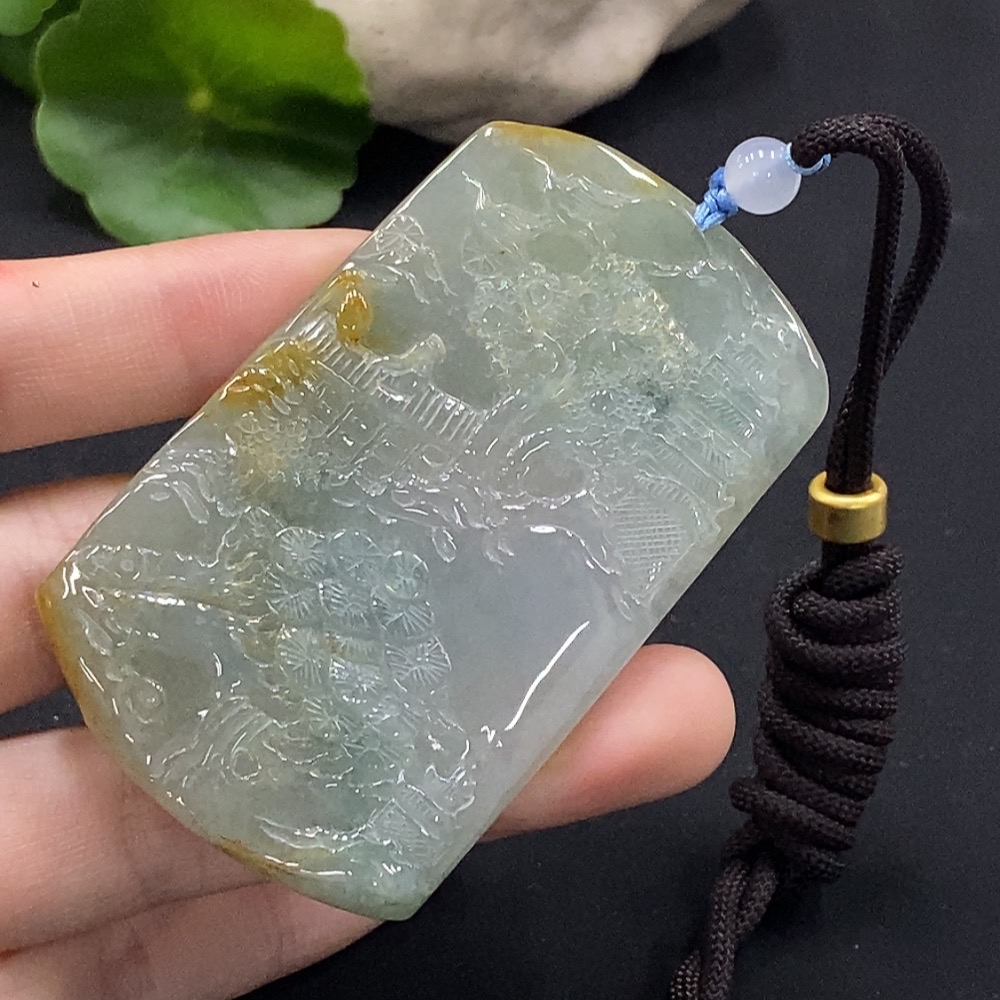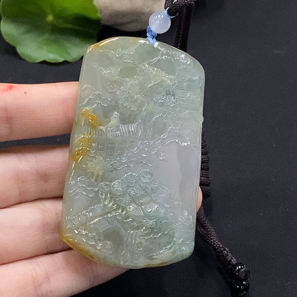 Jadeite Landscape Pendant Total Weight Approx. 44.89g With Non-Grade A Beads