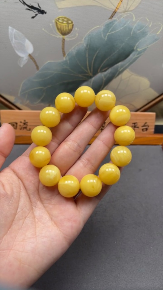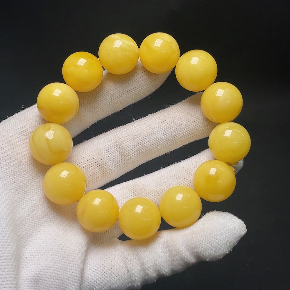 Amber Beeswax Bead Bracelet, Total Weight Approx. 31.2g, Size About 16.1mm