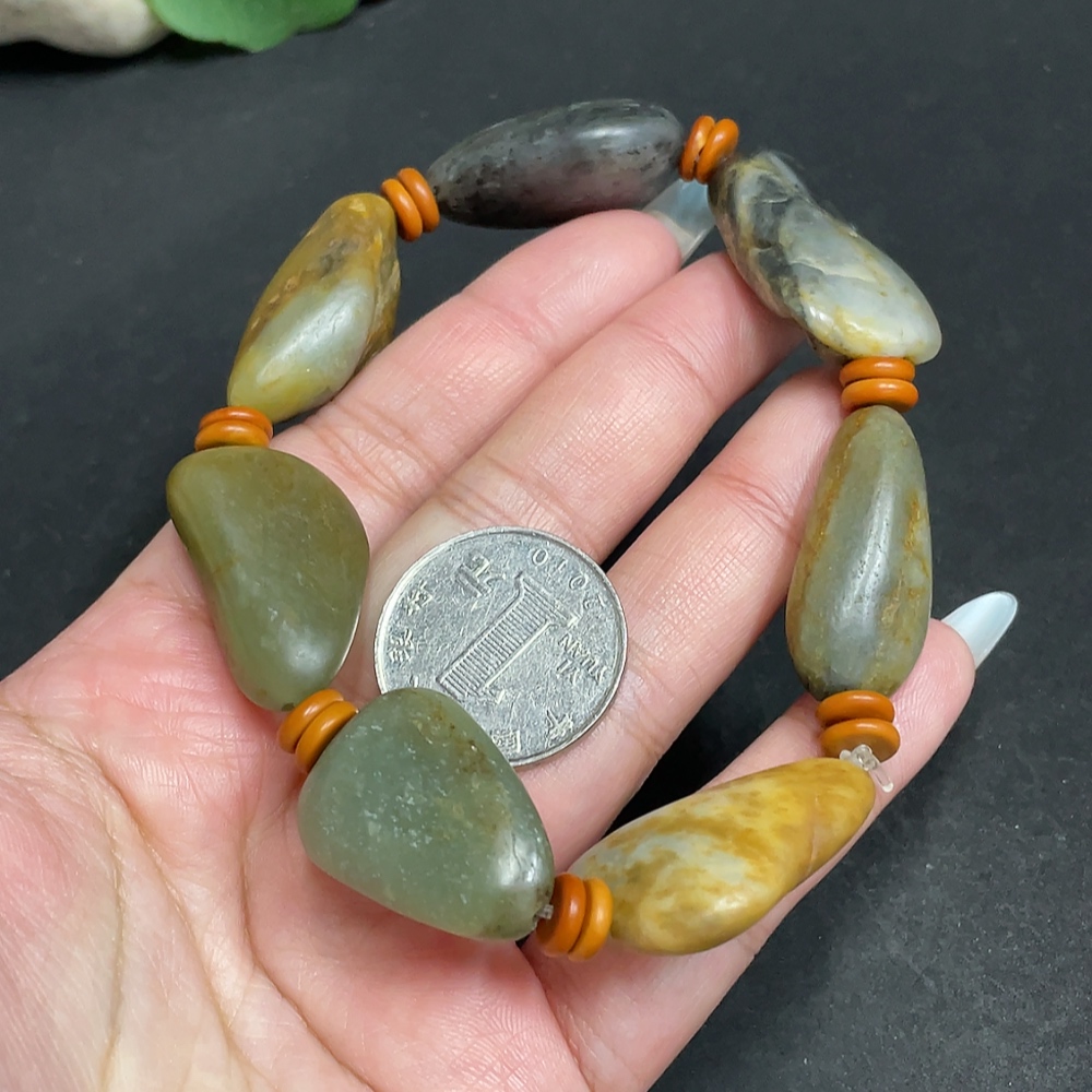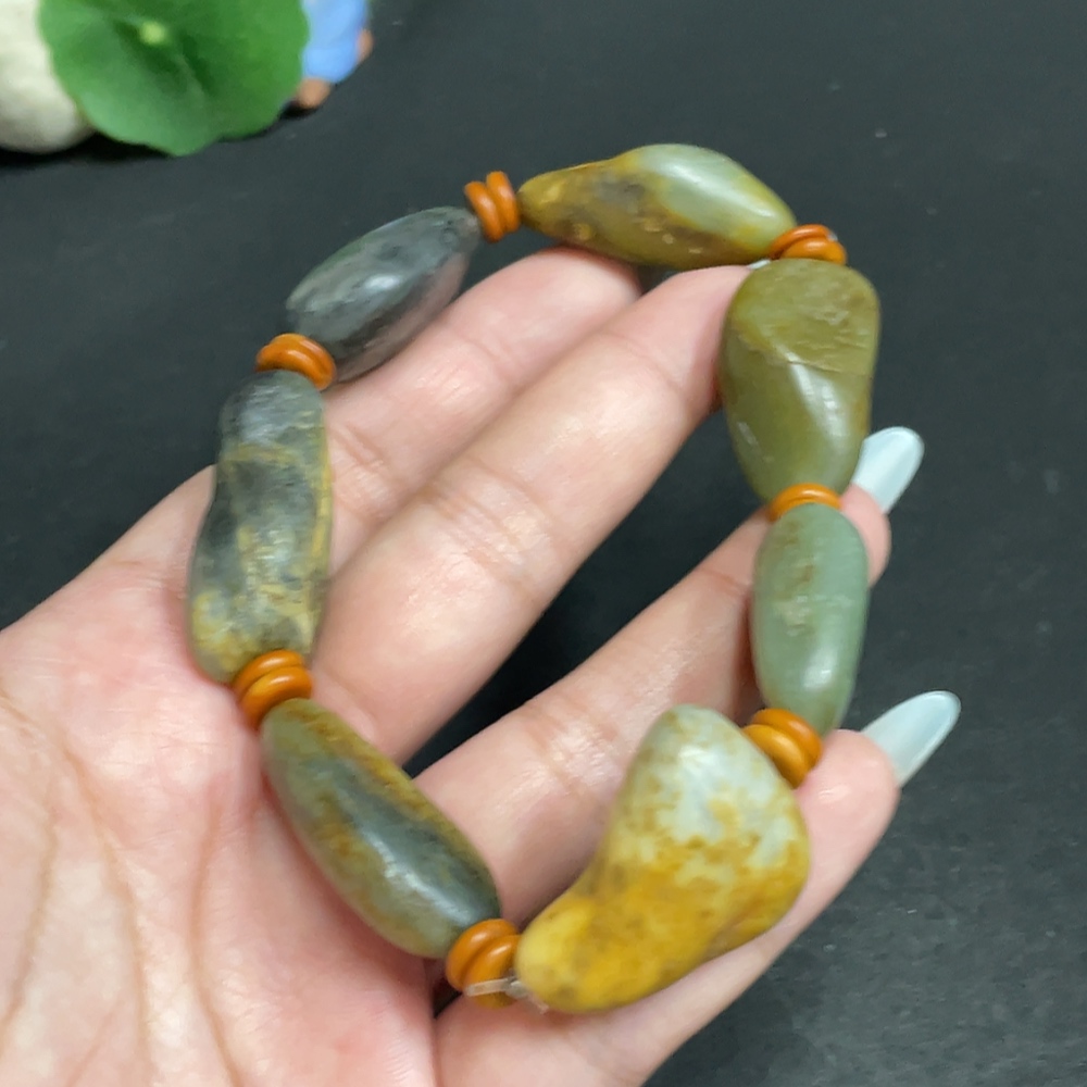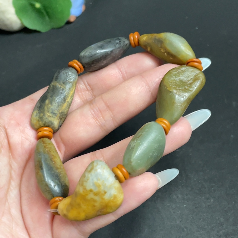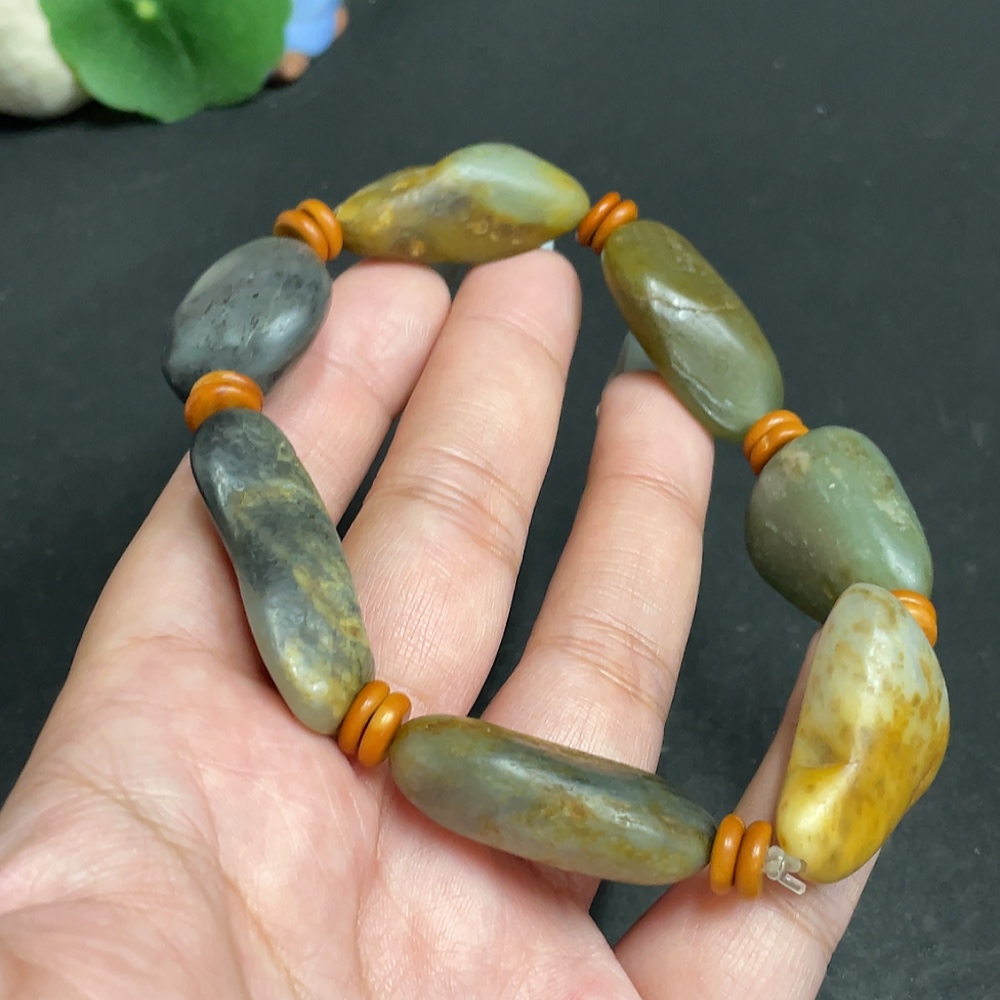 Khotan Jade Bracelet, Containing Other Mineral Components, Undetermined Skin Color Origin, Total Weight Approximately 65.6g