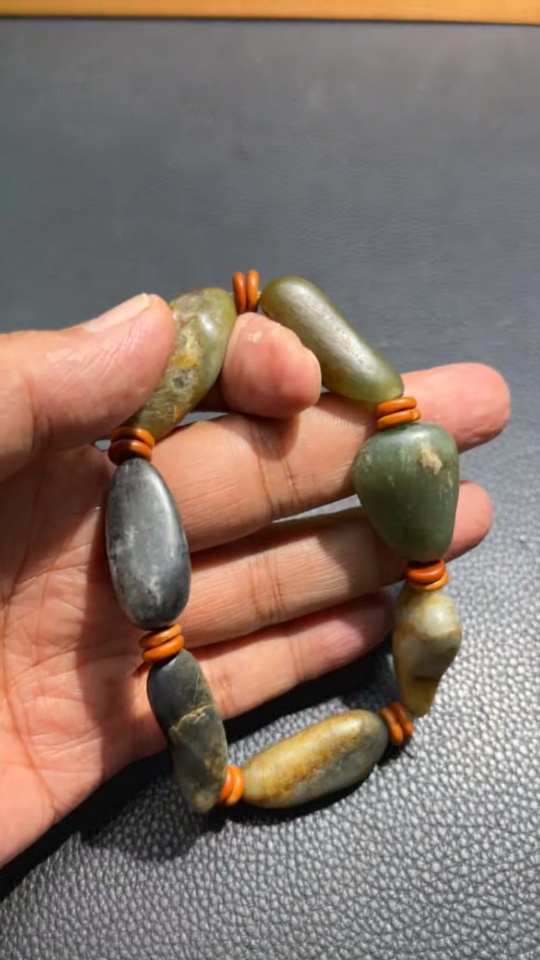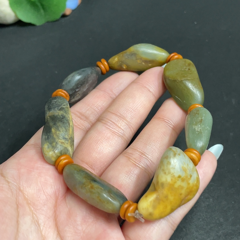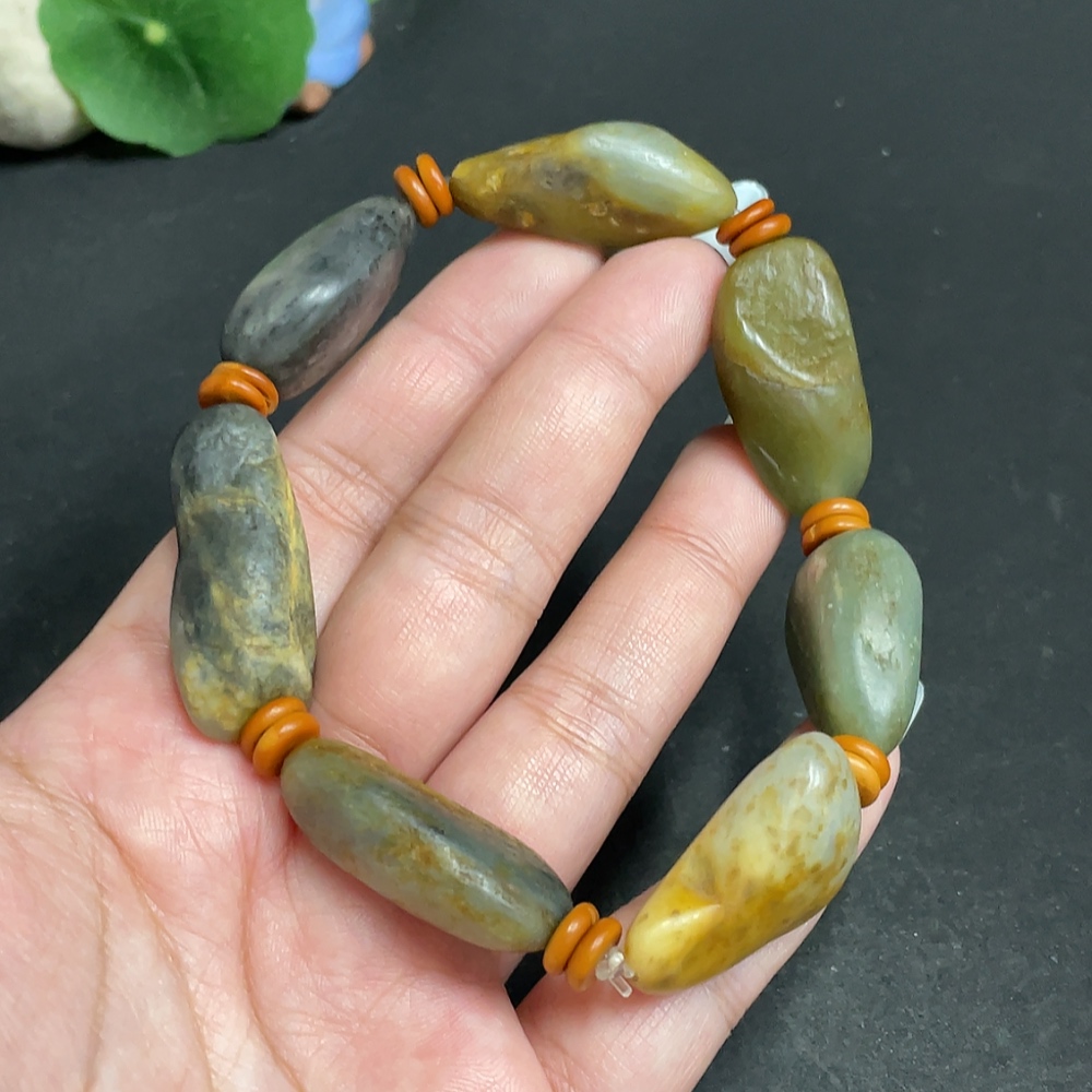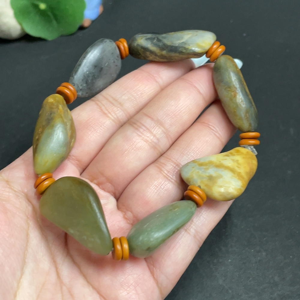 Khotan Jade Bracelet, Containing Other Mineral Components, Undetermined Skin Color Origin, Total Weight Approximately 65.6g