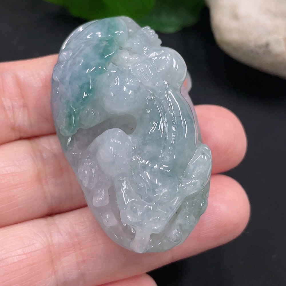 Jadeite Chi Dragon Pendant, Total Weight Approximately 35.4g