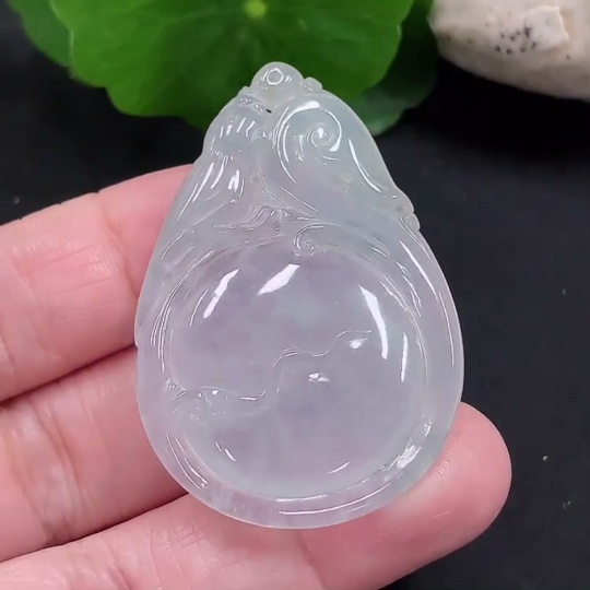 Jadeite Fortune and Longevity Pendant Total weight approximately 12.3 grams