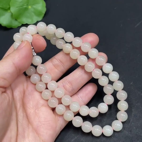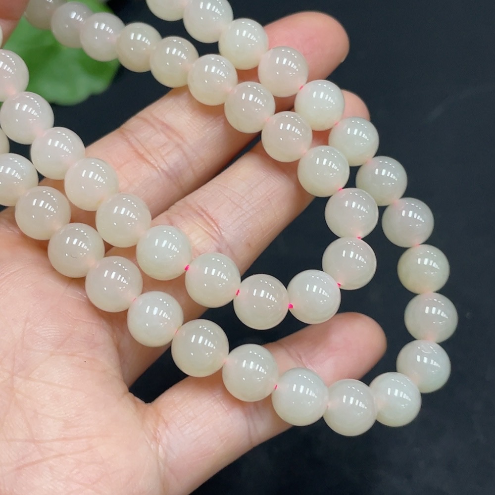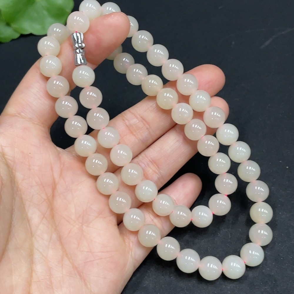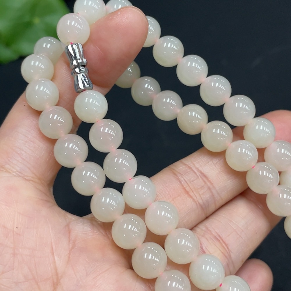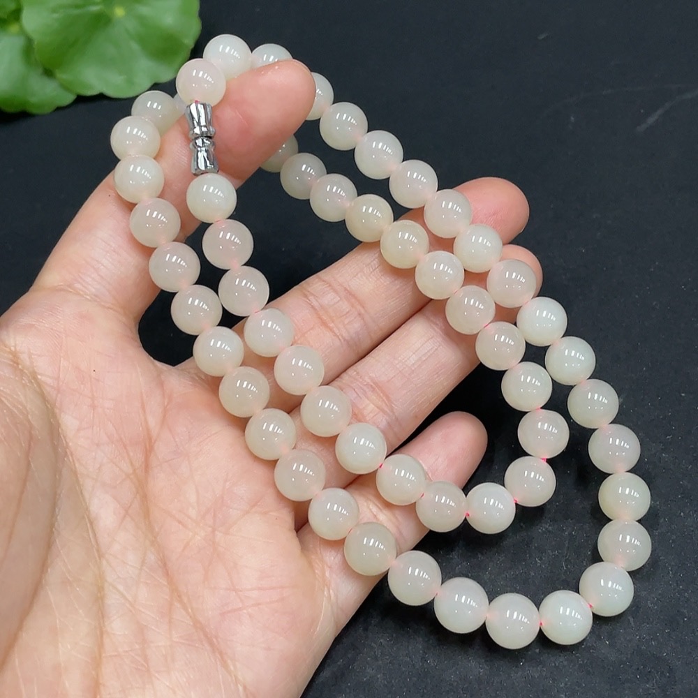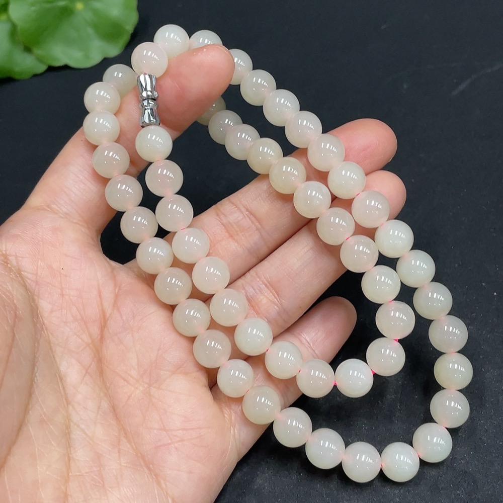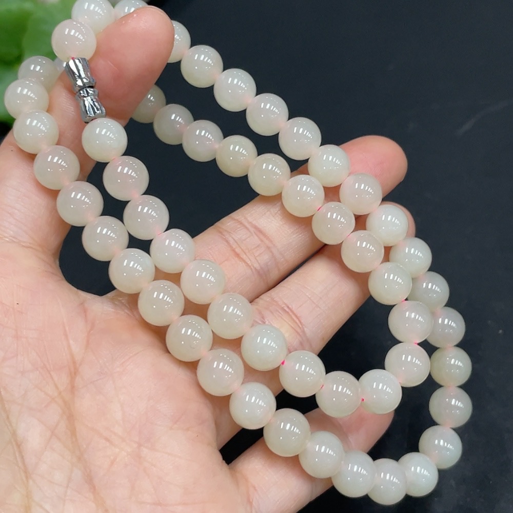 Hetian Jade Bead Necklace Approx. 7.7mm Total Weight About 43.2g Non-Gold