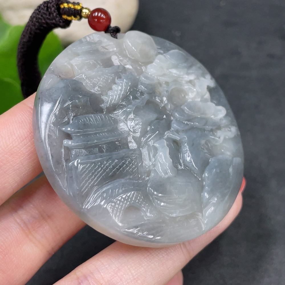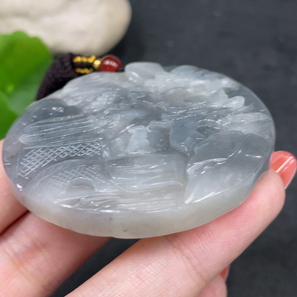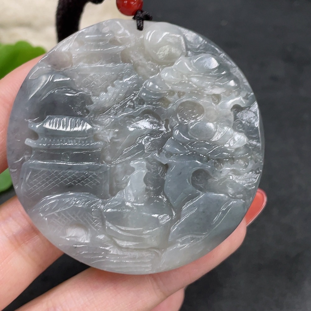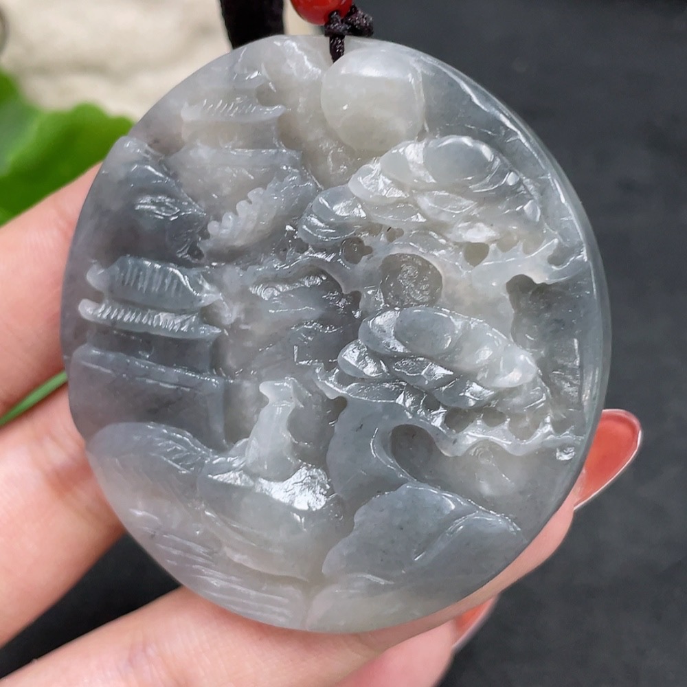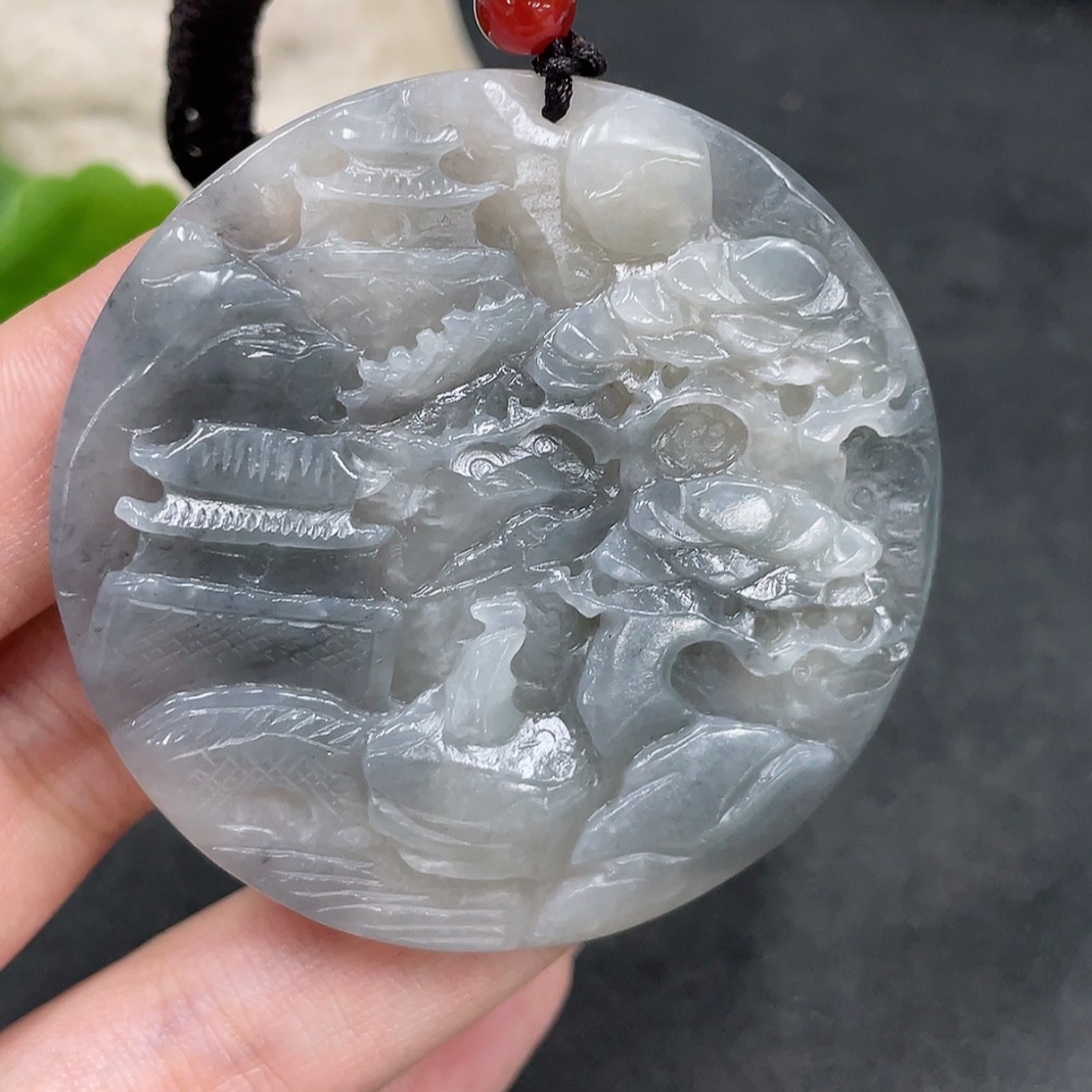 Hetian Jade Pendant Landscape Plaque Total Weight (including rope) 47.4g