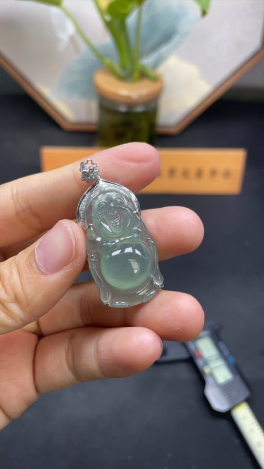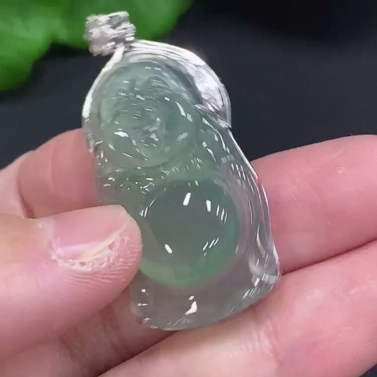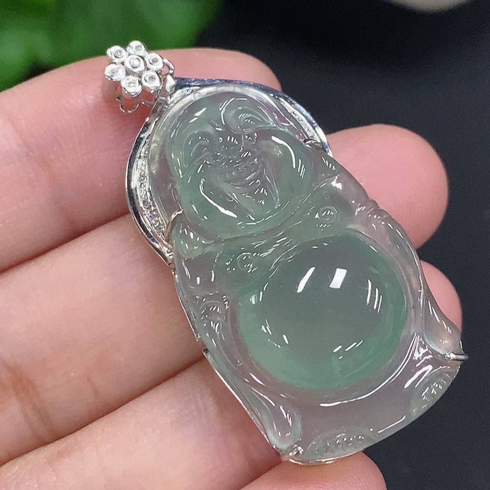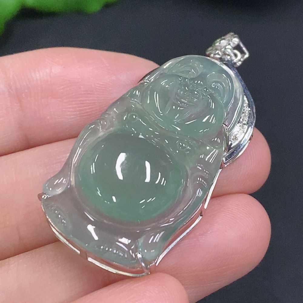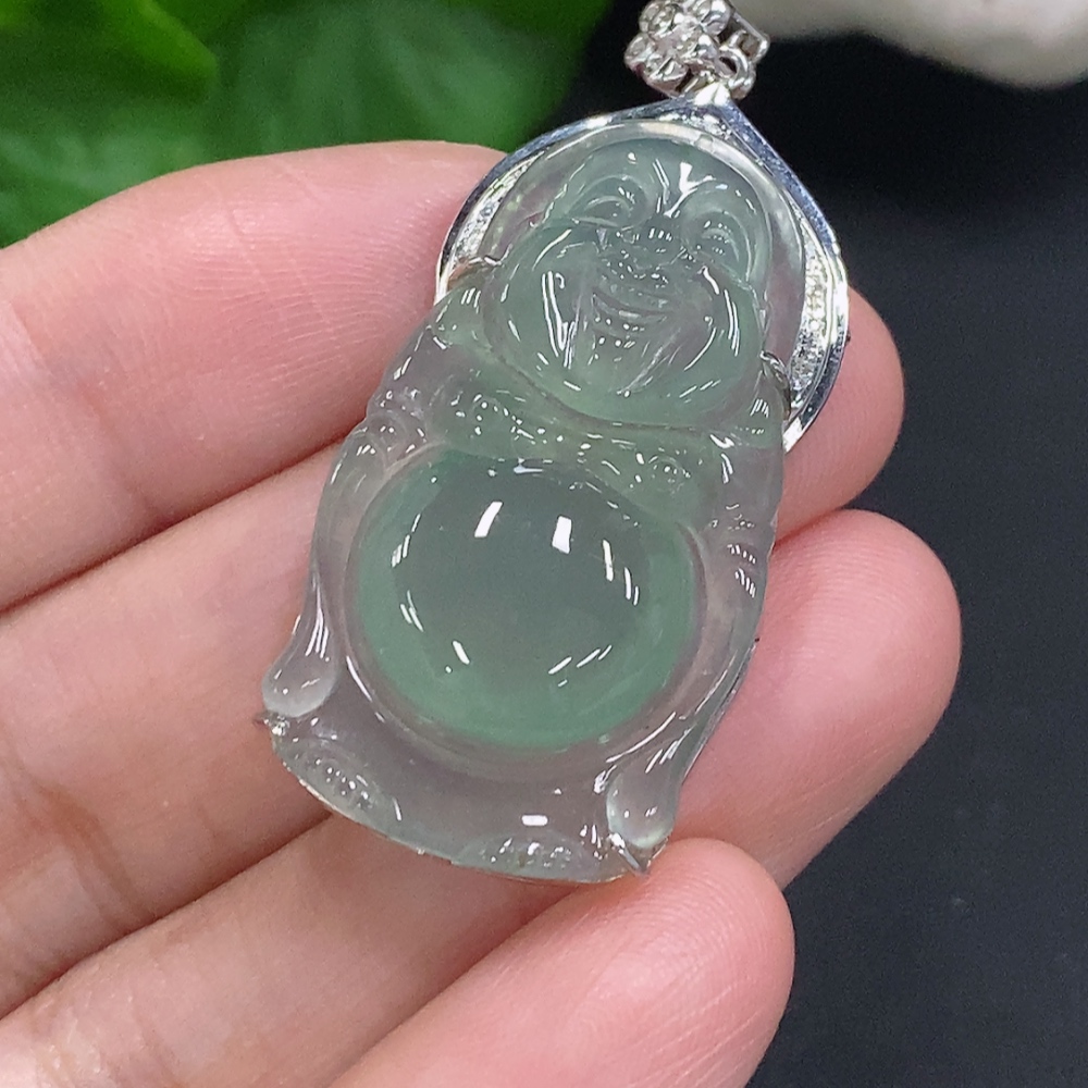 Jadeite Buddha Pendant with 18K Gold Mount, Total Weight Approx. 6.9g (Diamond Accented)