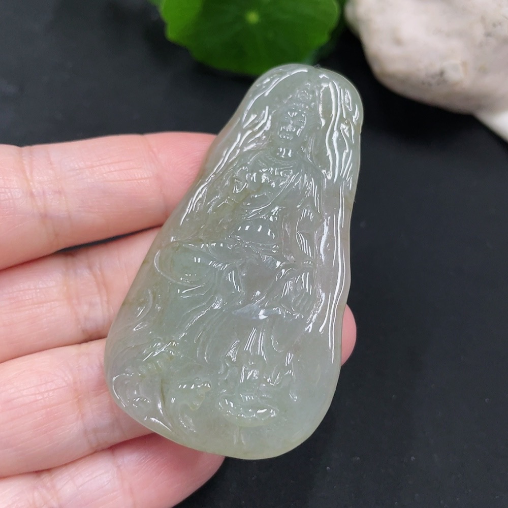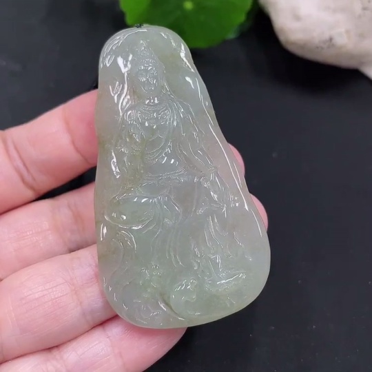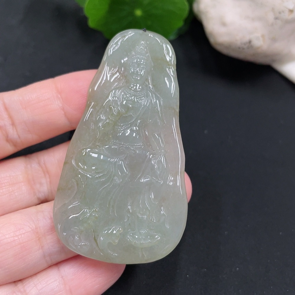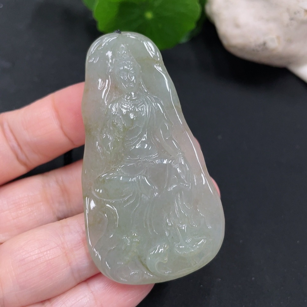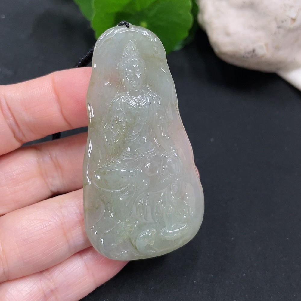 Jadeite Guanyin Pendant Total Weight Approx. 23.2g (Including Rope Weight)