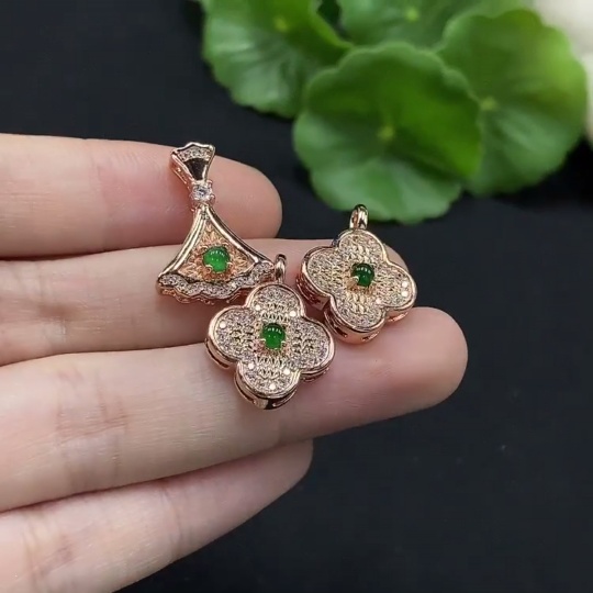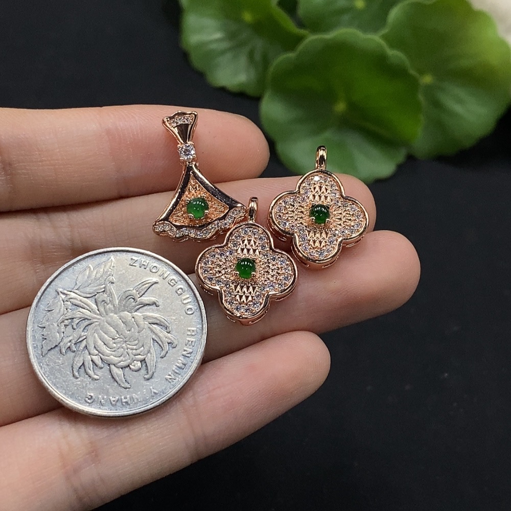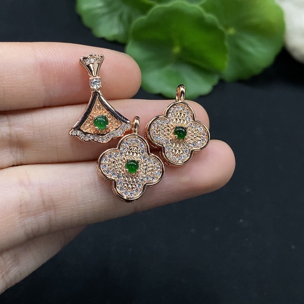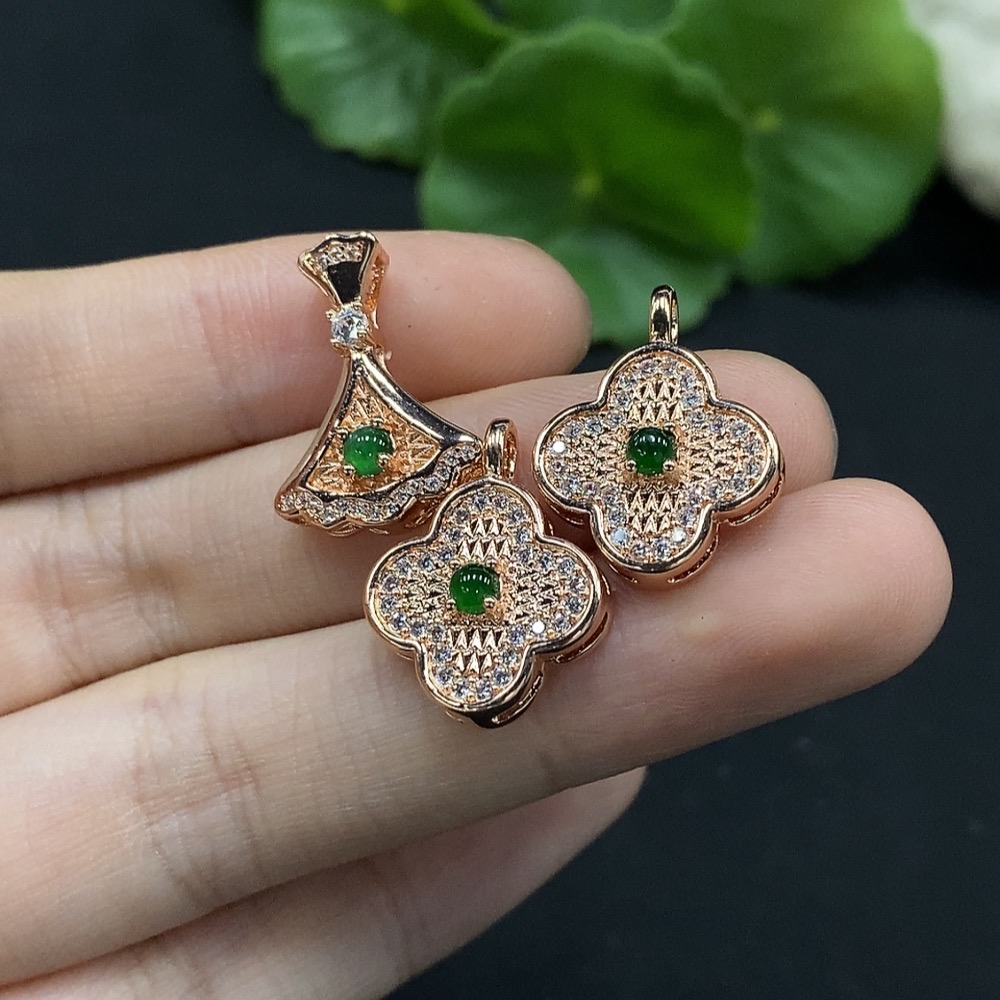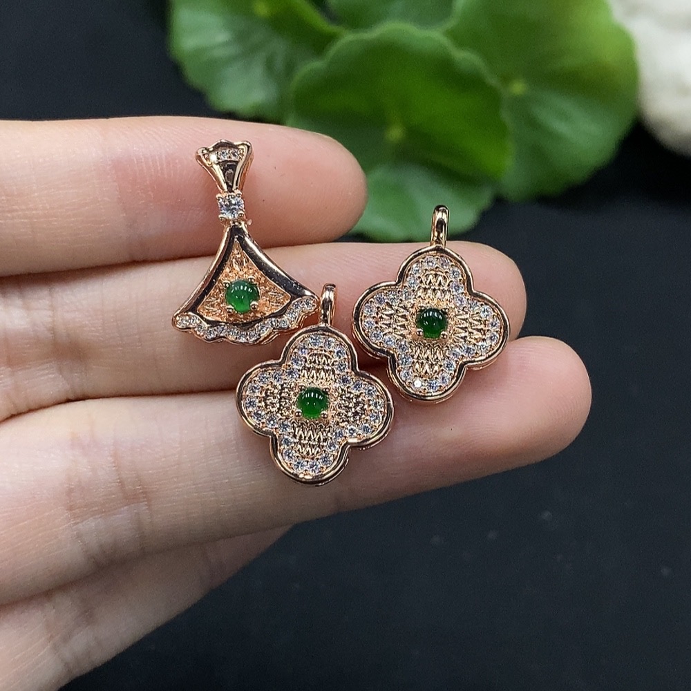 Jadeite Cabochon Inlay Pendant Non-Gold Setting