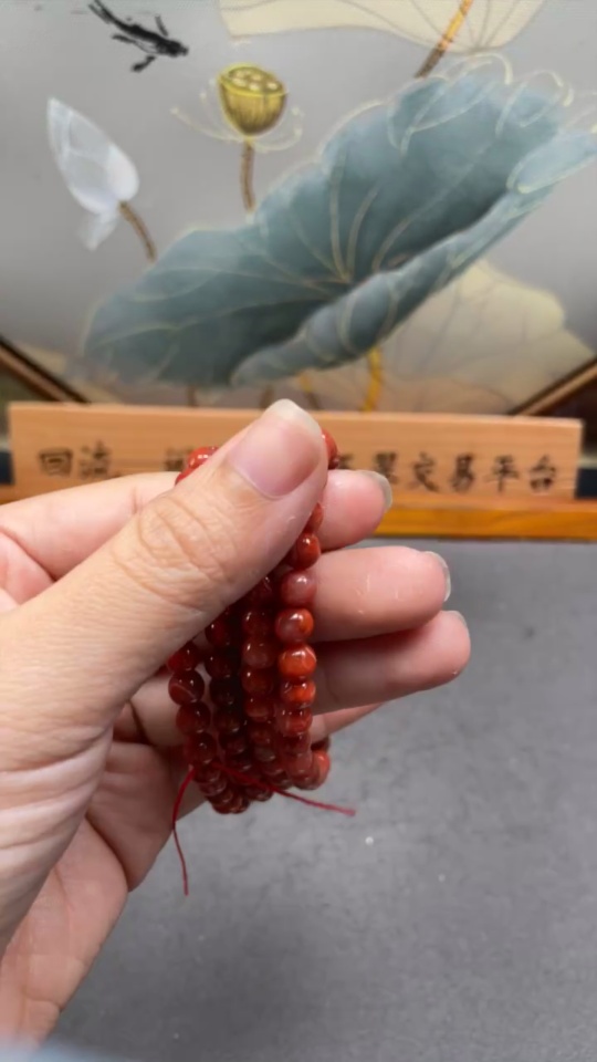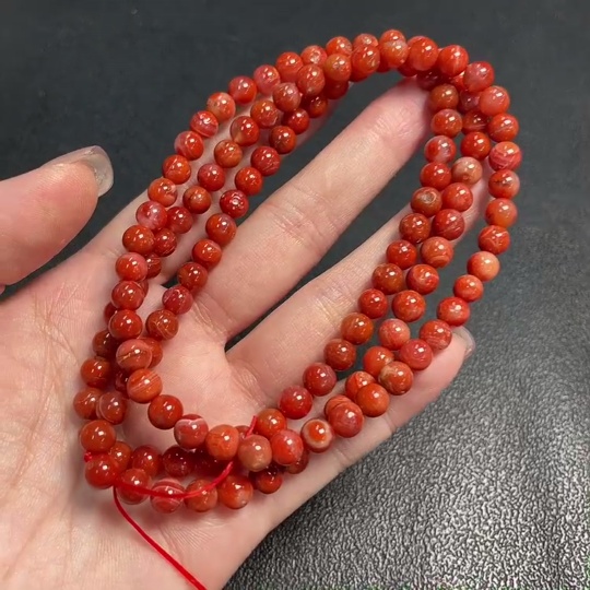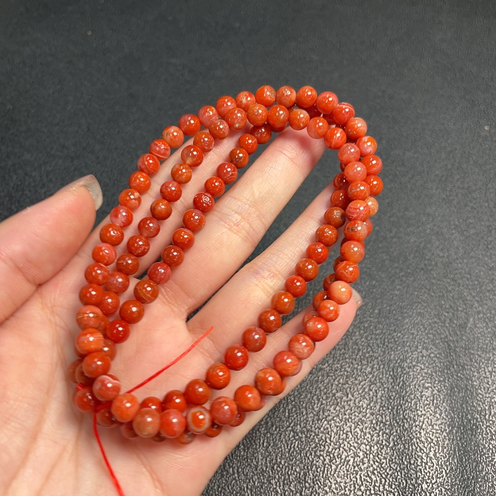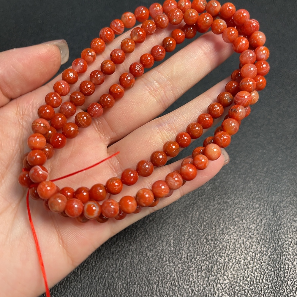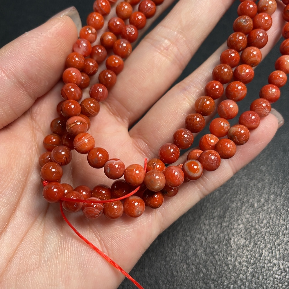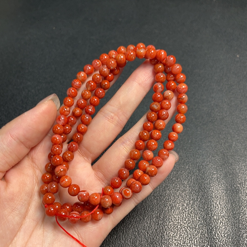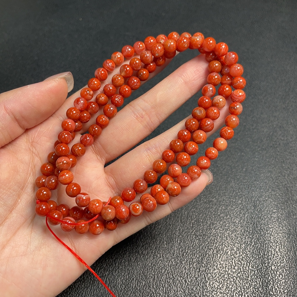 South Red Agate Bead Necklace with Visible Organic Matter, Total Weight Approx. 38.06g, Size About 6.2mm