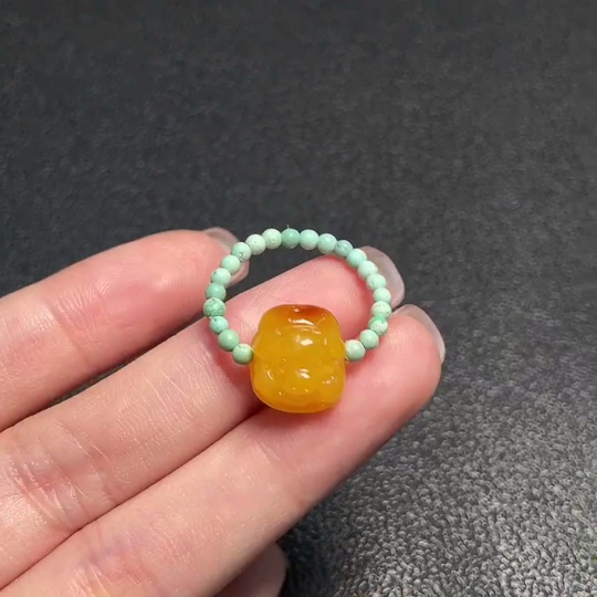 Amber Beeswax Ring (non-natural gemstone considered, total weight approx. 1.21g)