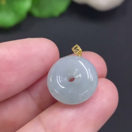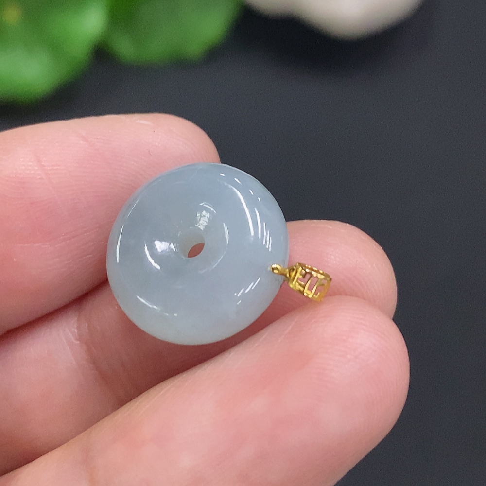 Jadeite Safety Pendant with 18K Gold Clasp, Total Weight Approximately 2.2 Grams