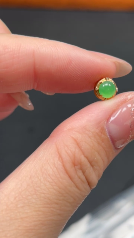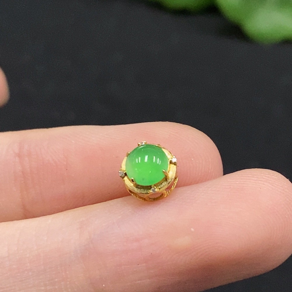 Jadeite Pendant with 18K Gold, Total Weight Approx. 0.4g (Accented with Diamonds)