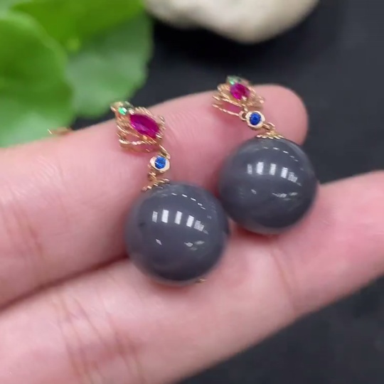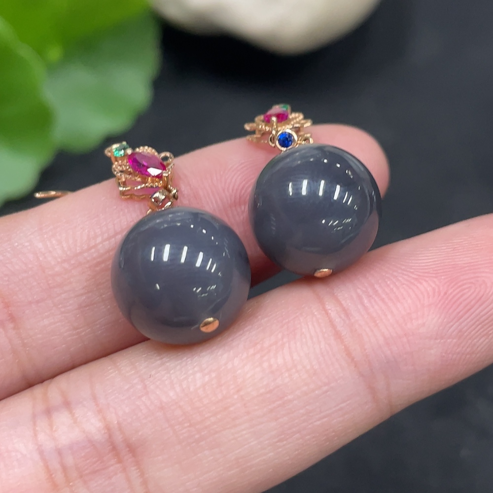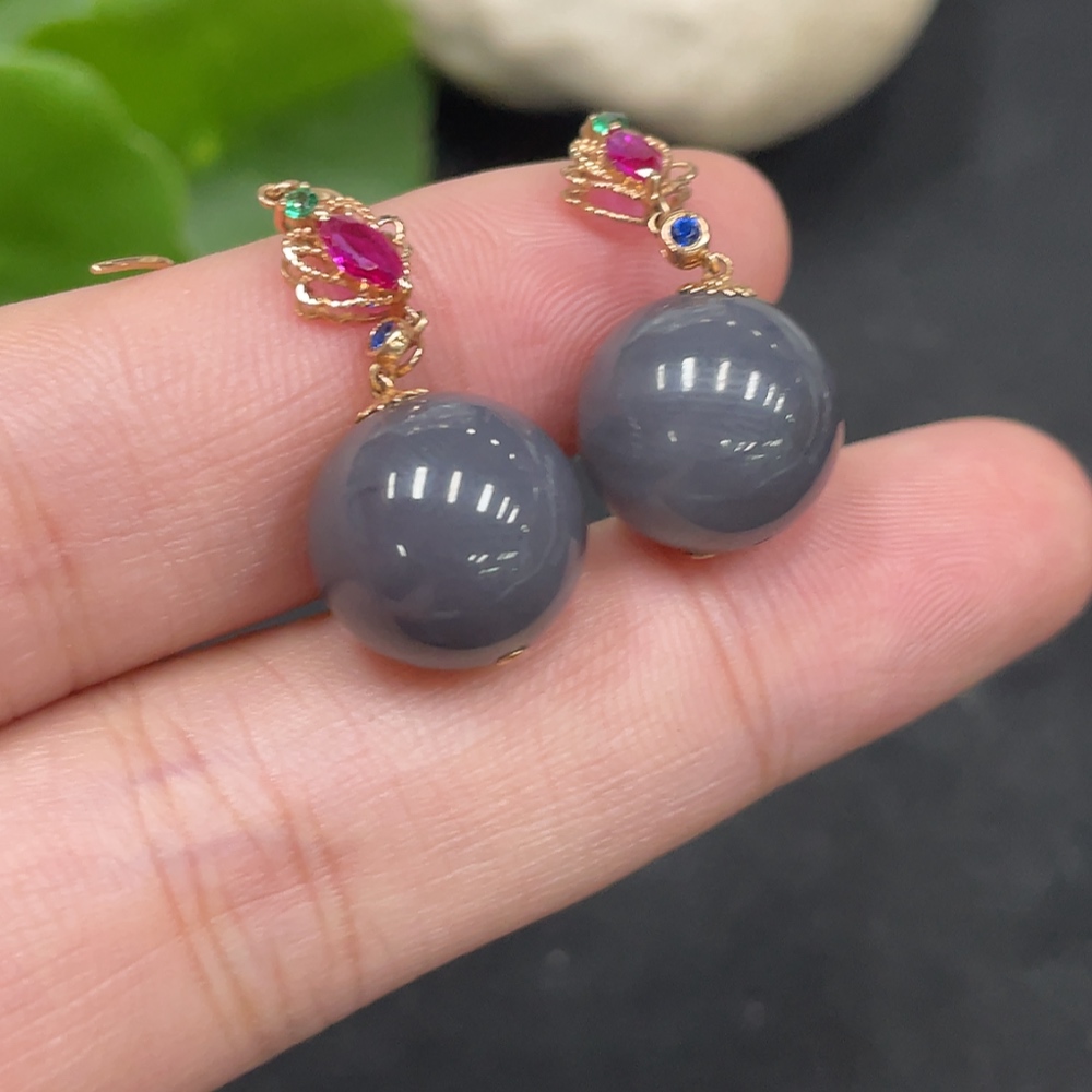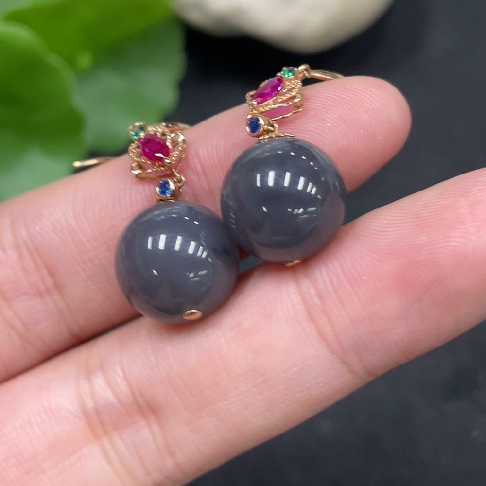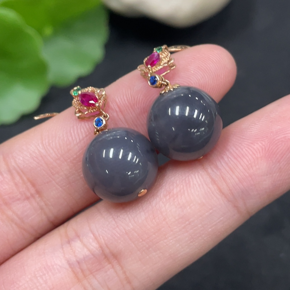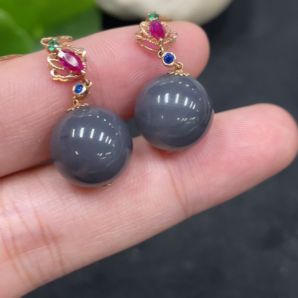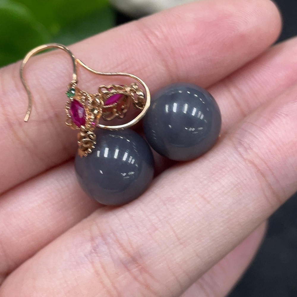 Hetian Jade Bead Inlaid Earrings, Approximately 12mm, 18k Gold, Total Weight About 6.1g