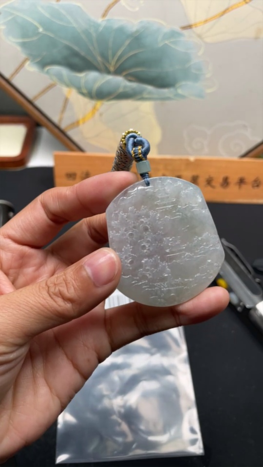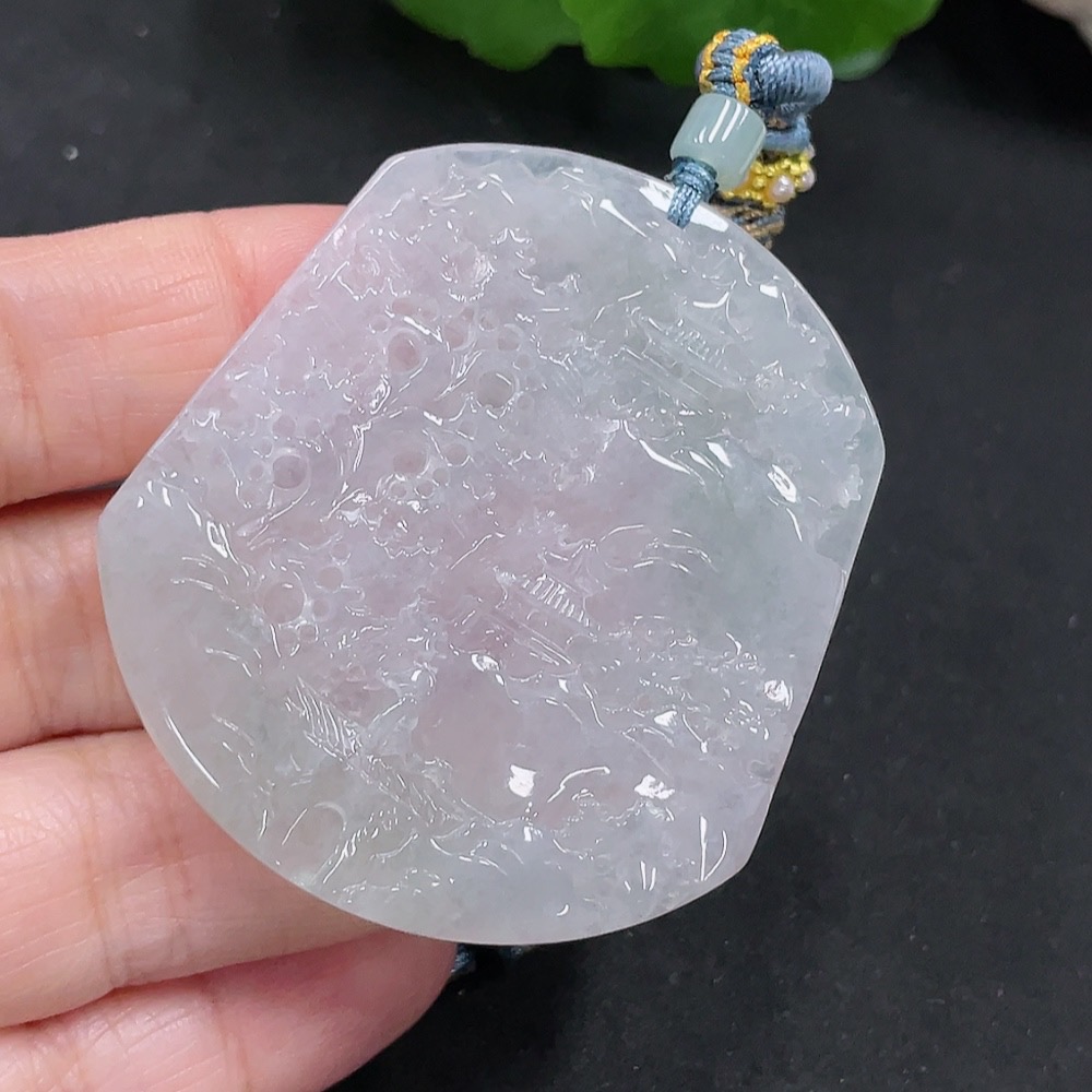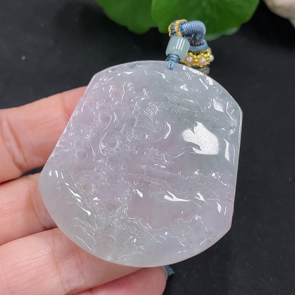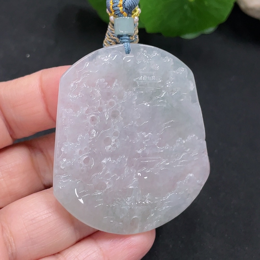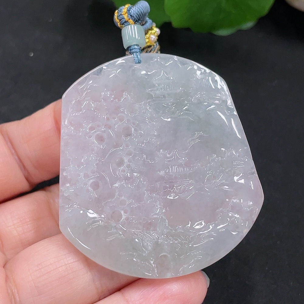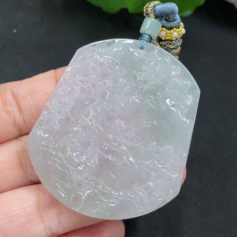 Jadeite Landscape Pendant with a total weight of approximately 28.3g (including rope weight)