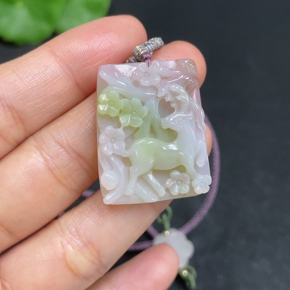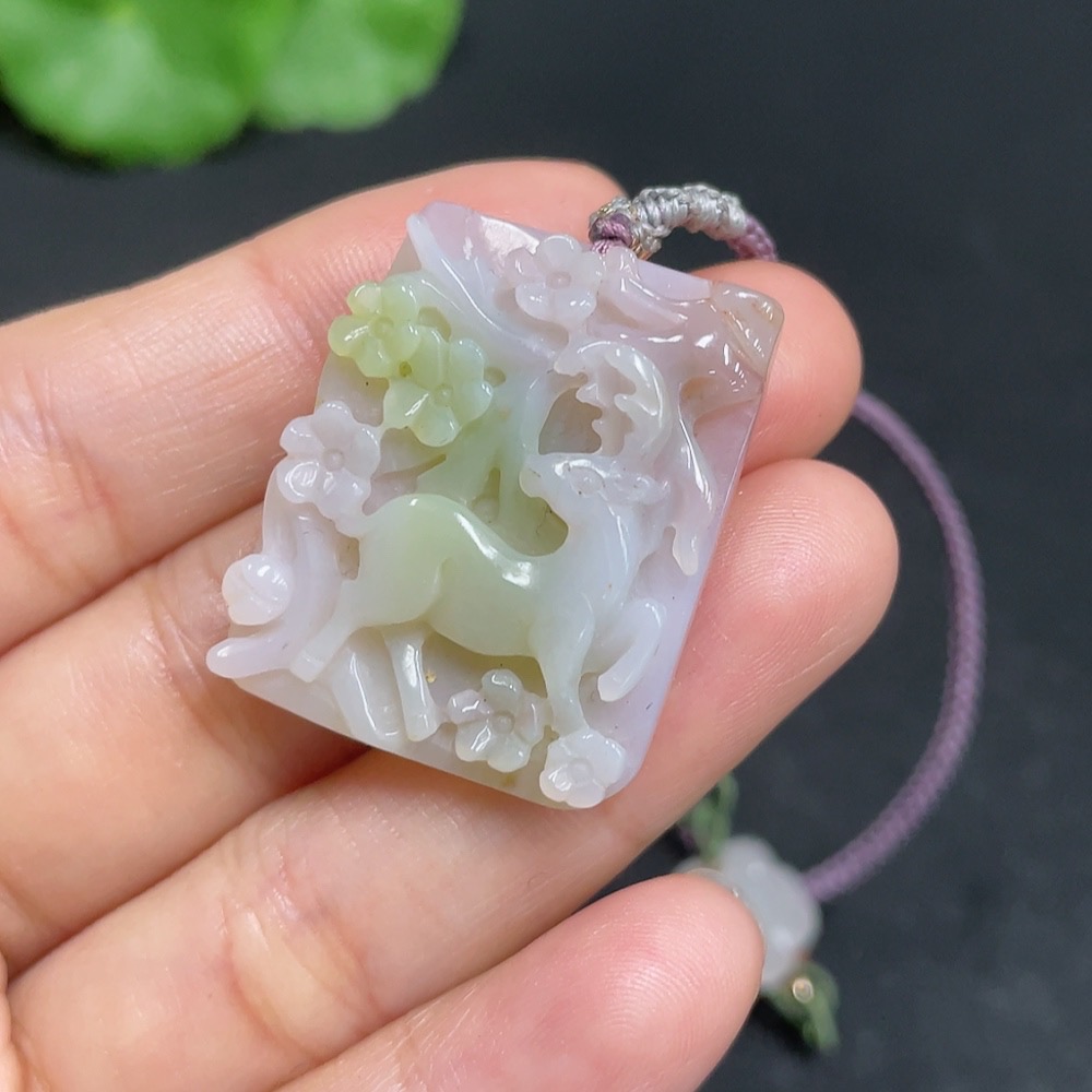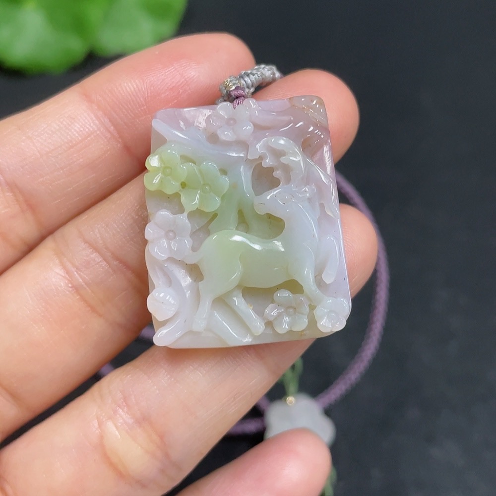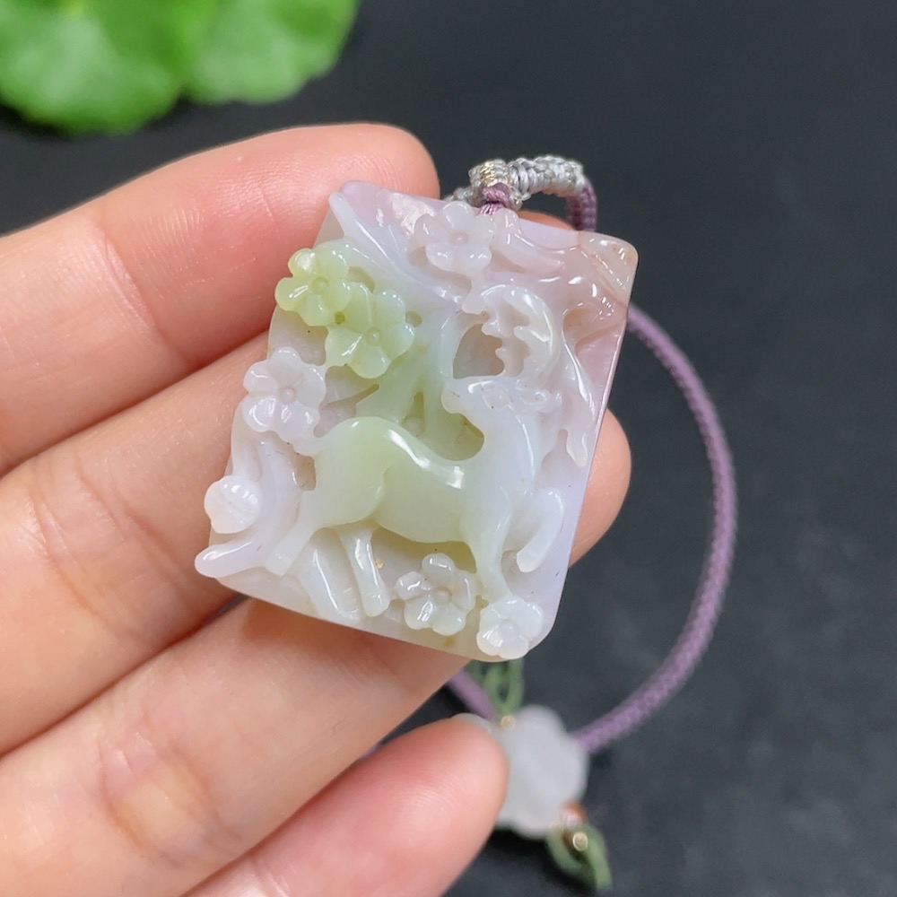Yanyuan Agate Pendant - Deer and Plum Blossom in Spring