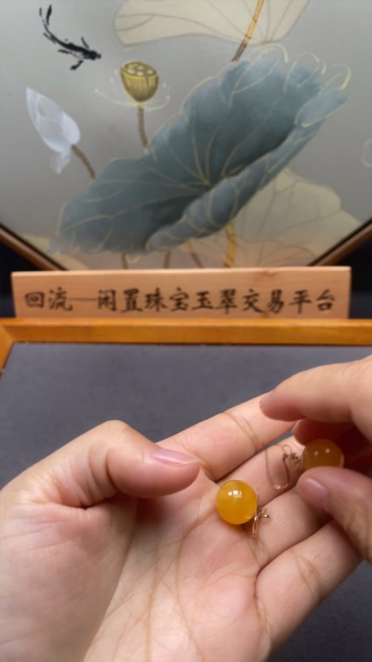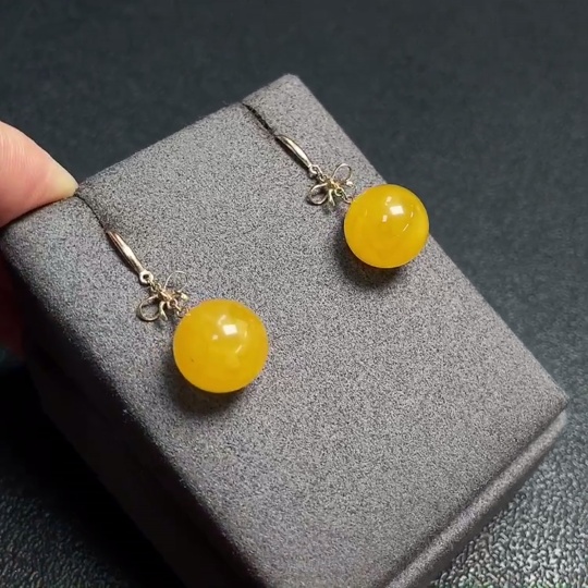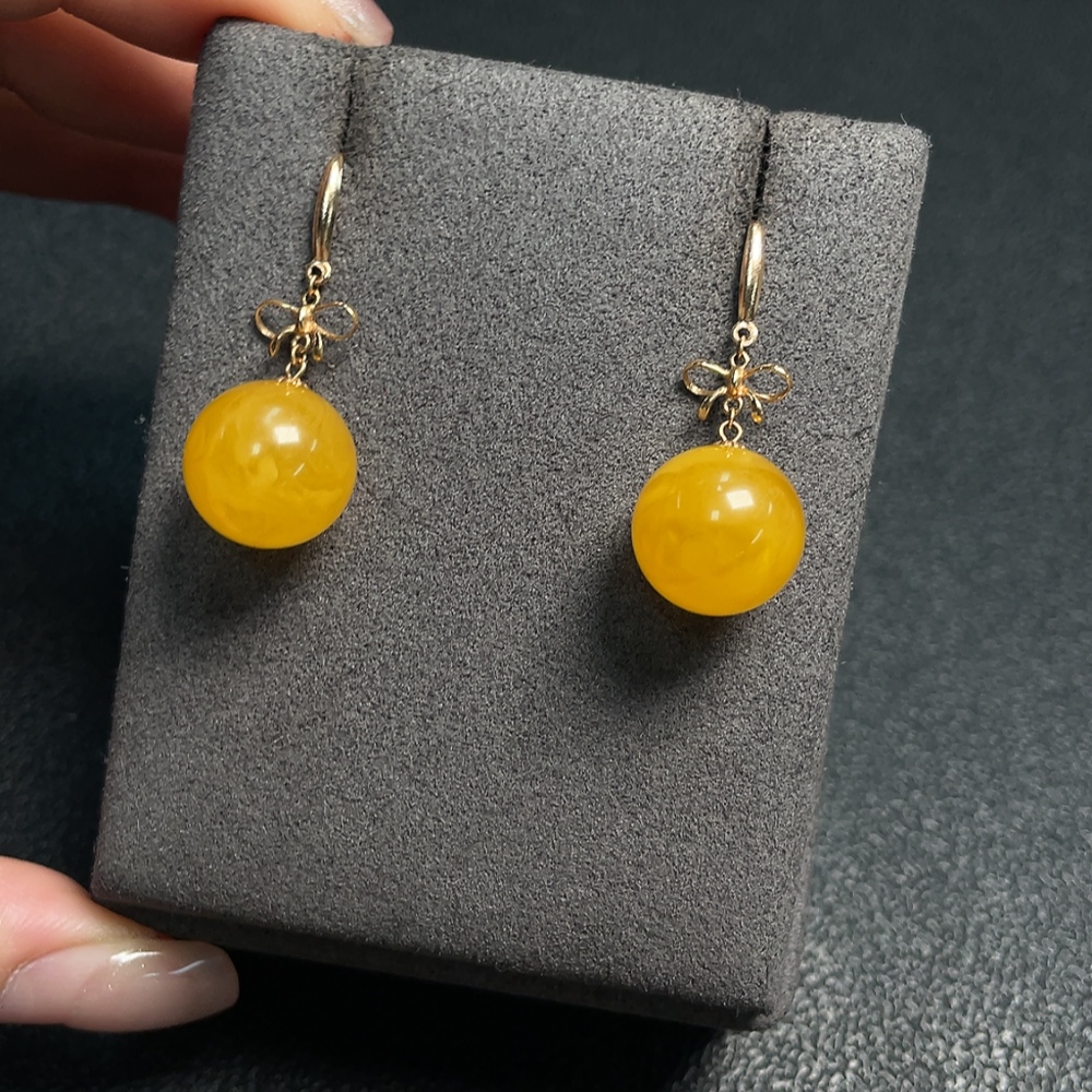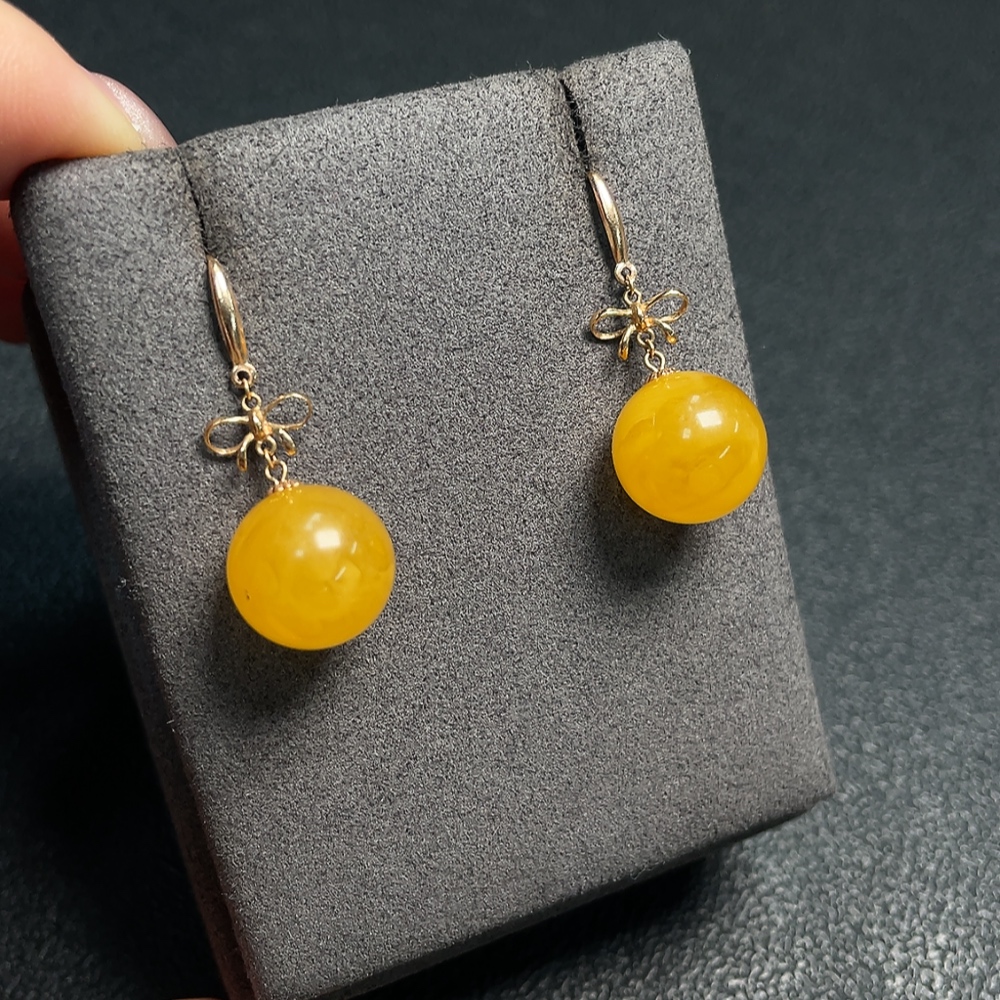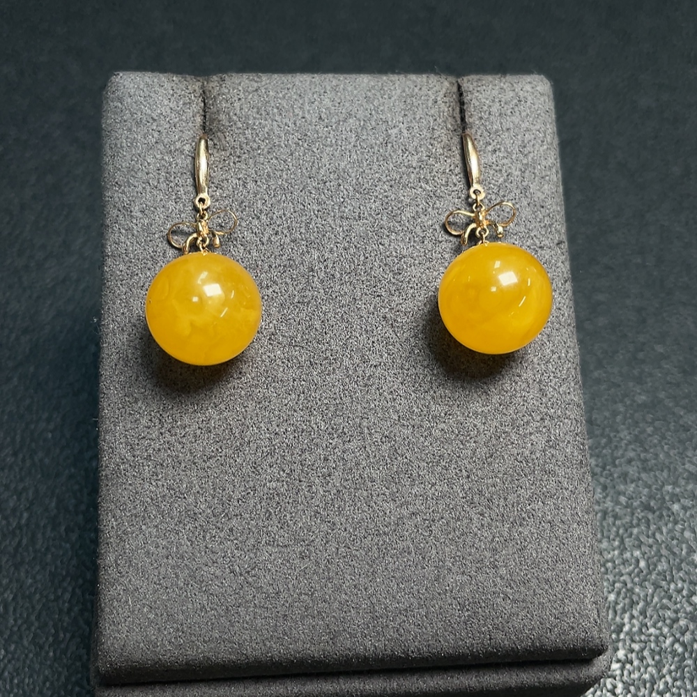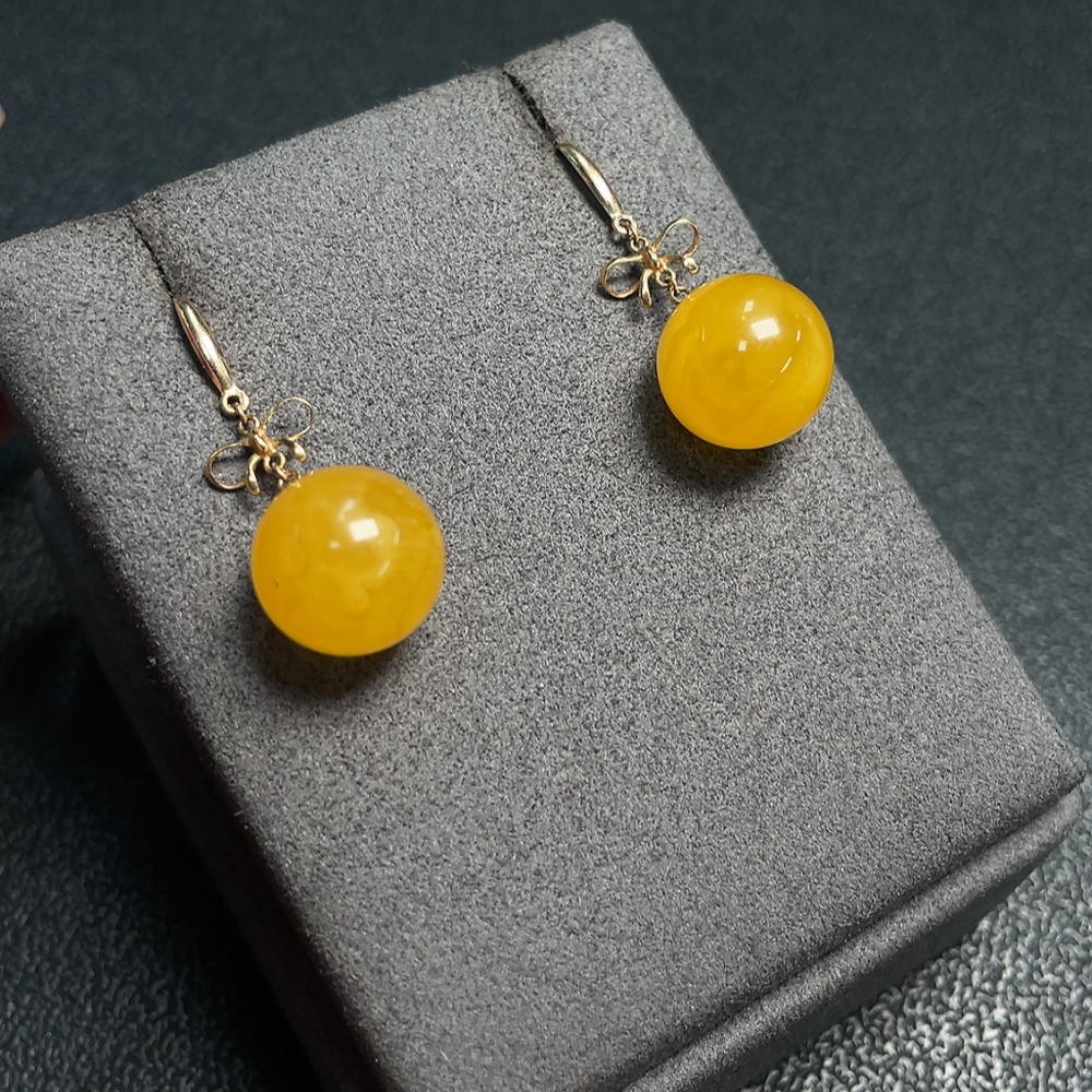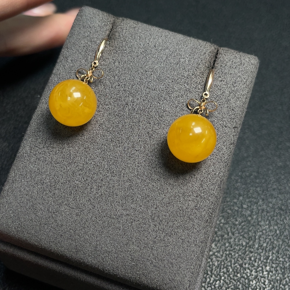 18K Amber Beeswax Earrings, Total Weight Approx. 2.72g, Size About 12.4mm
