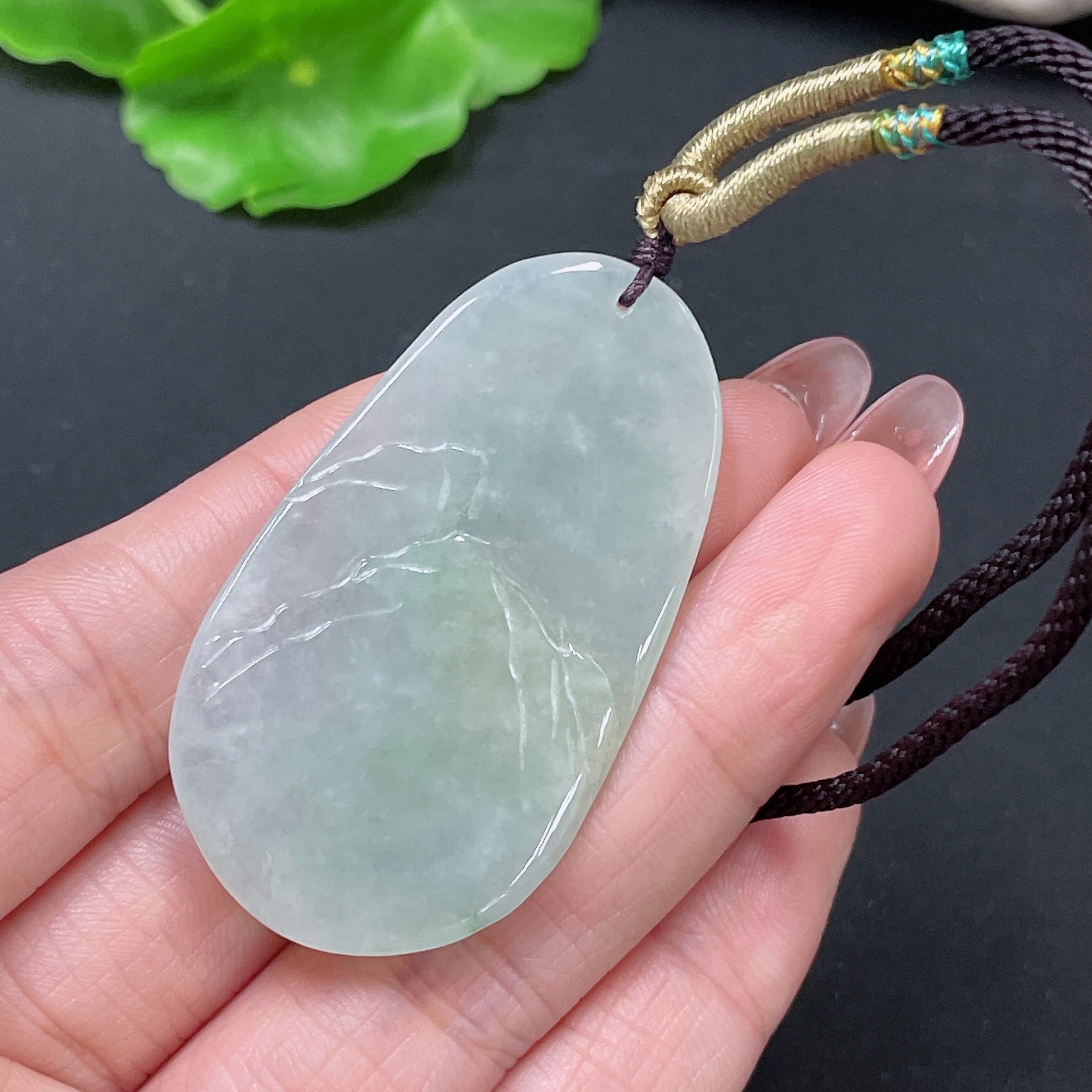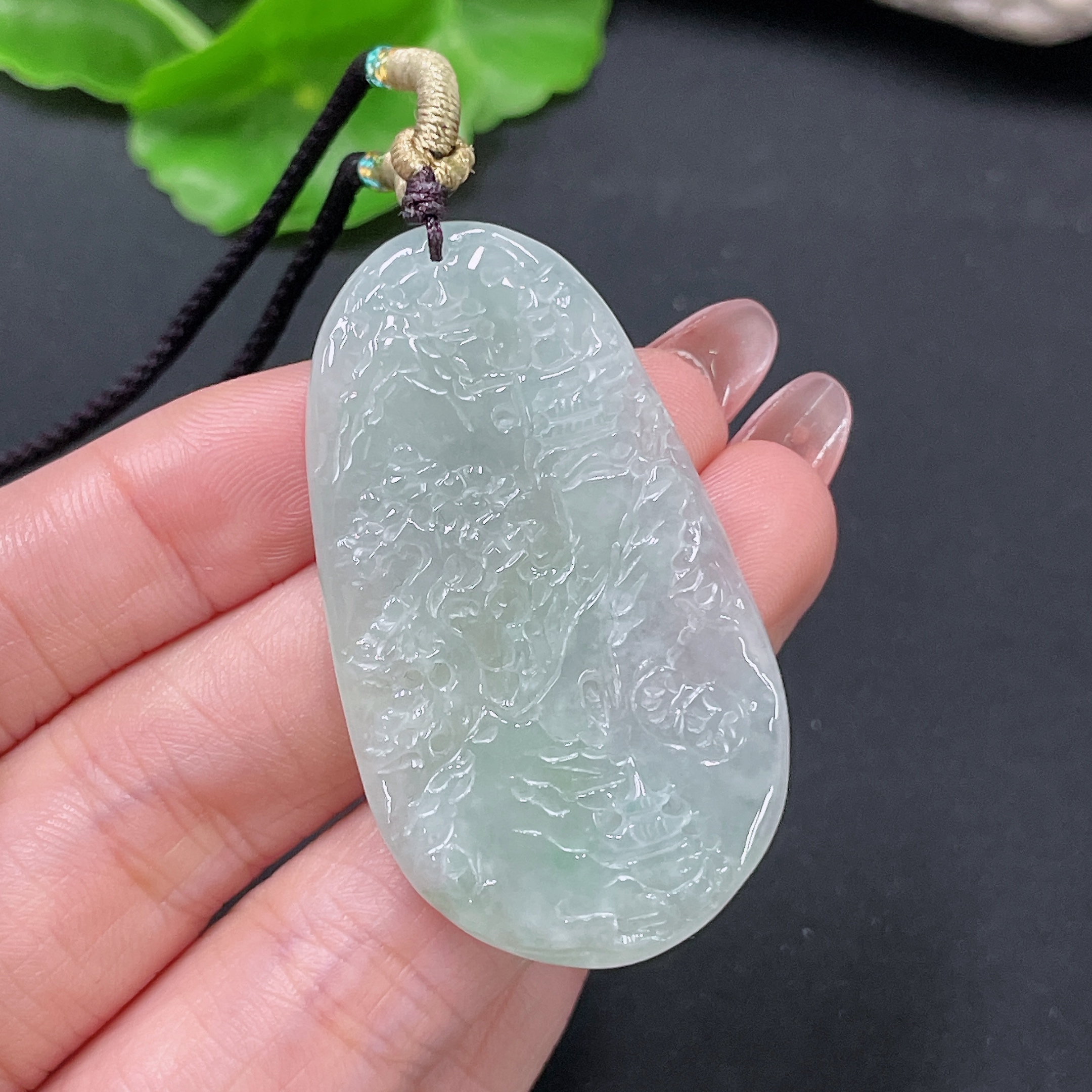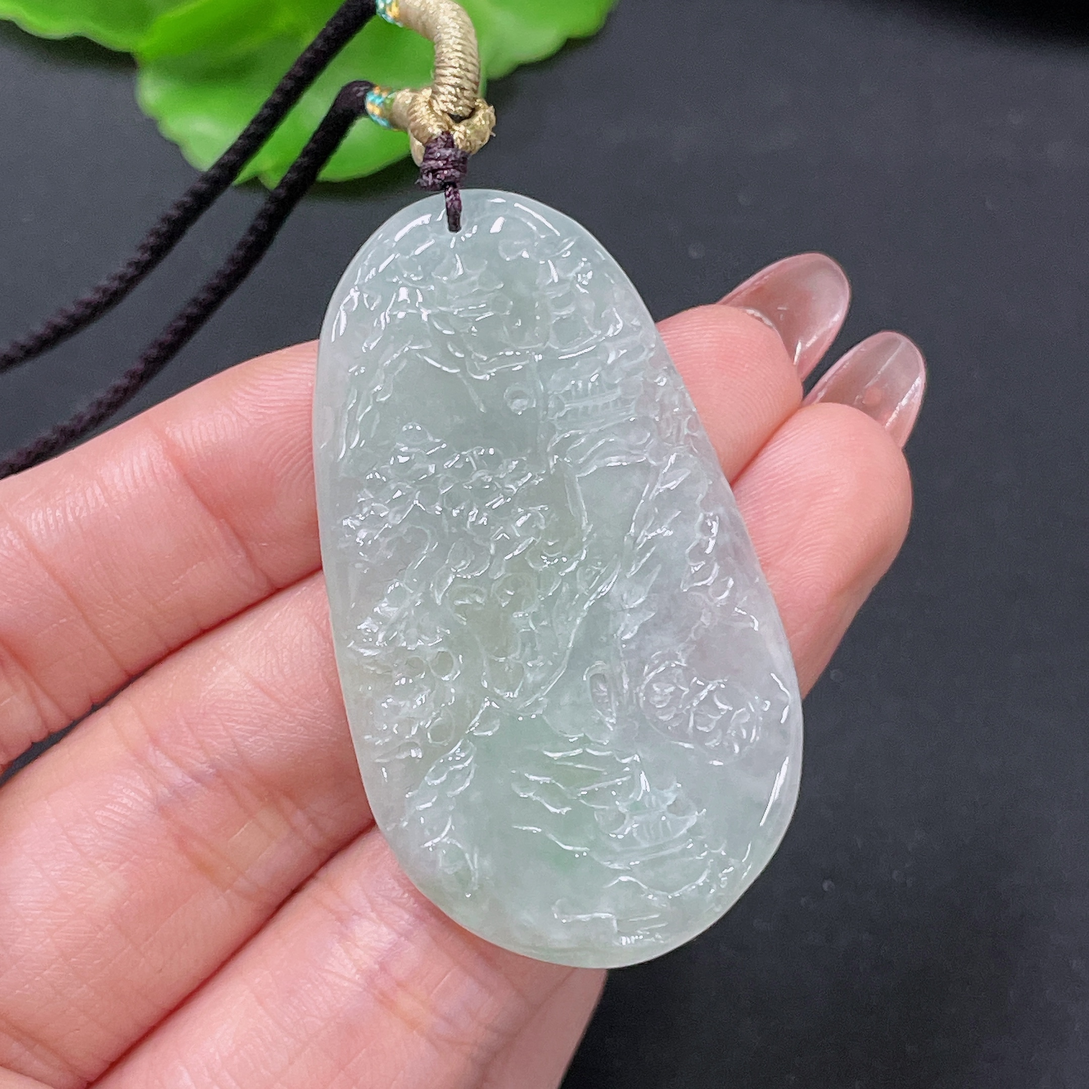 Jadeite Pendant Landscape with Cord Total Weight Approx. 17.4g