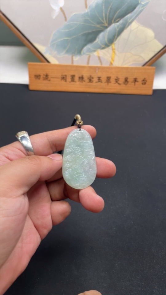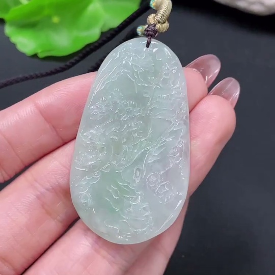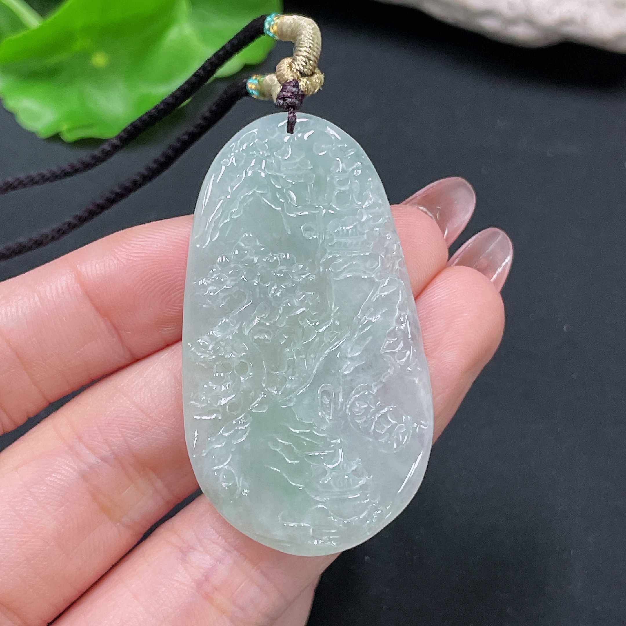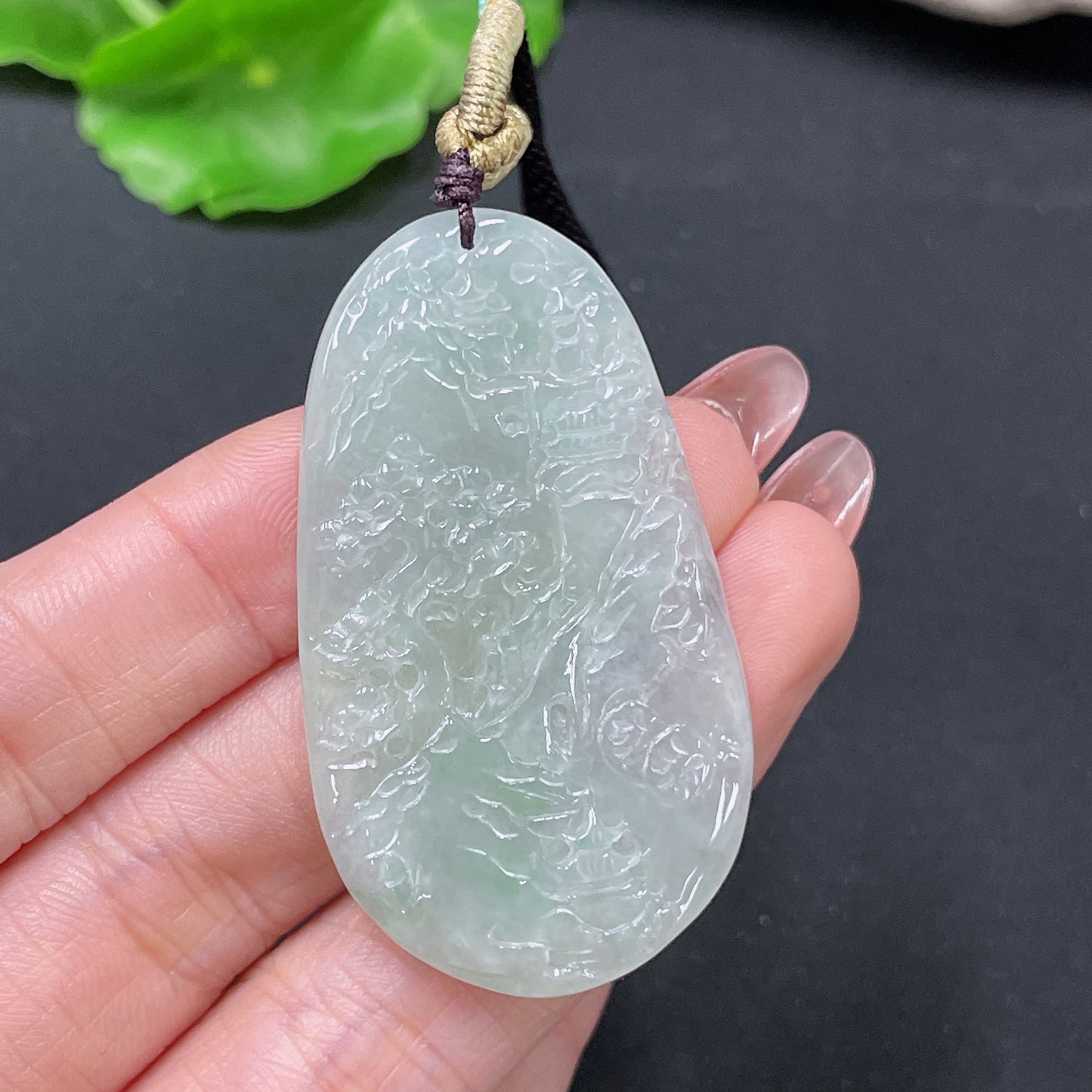 Jadeite Pendant Landscape with Cord Total Weight Approx. 17.4g