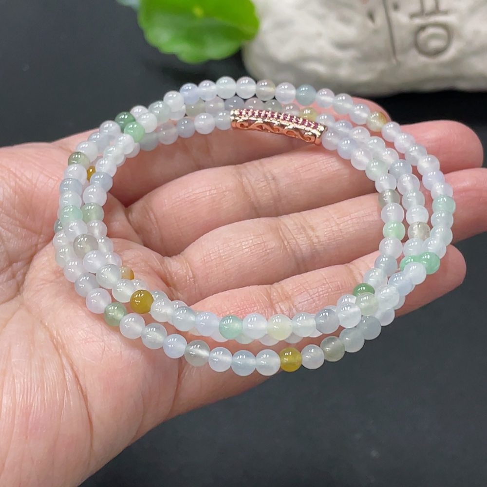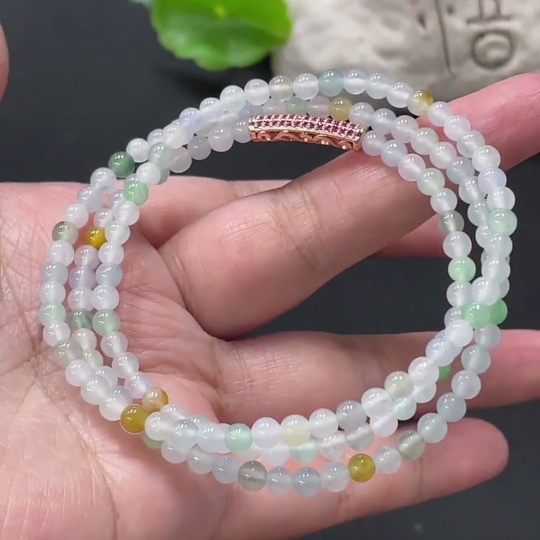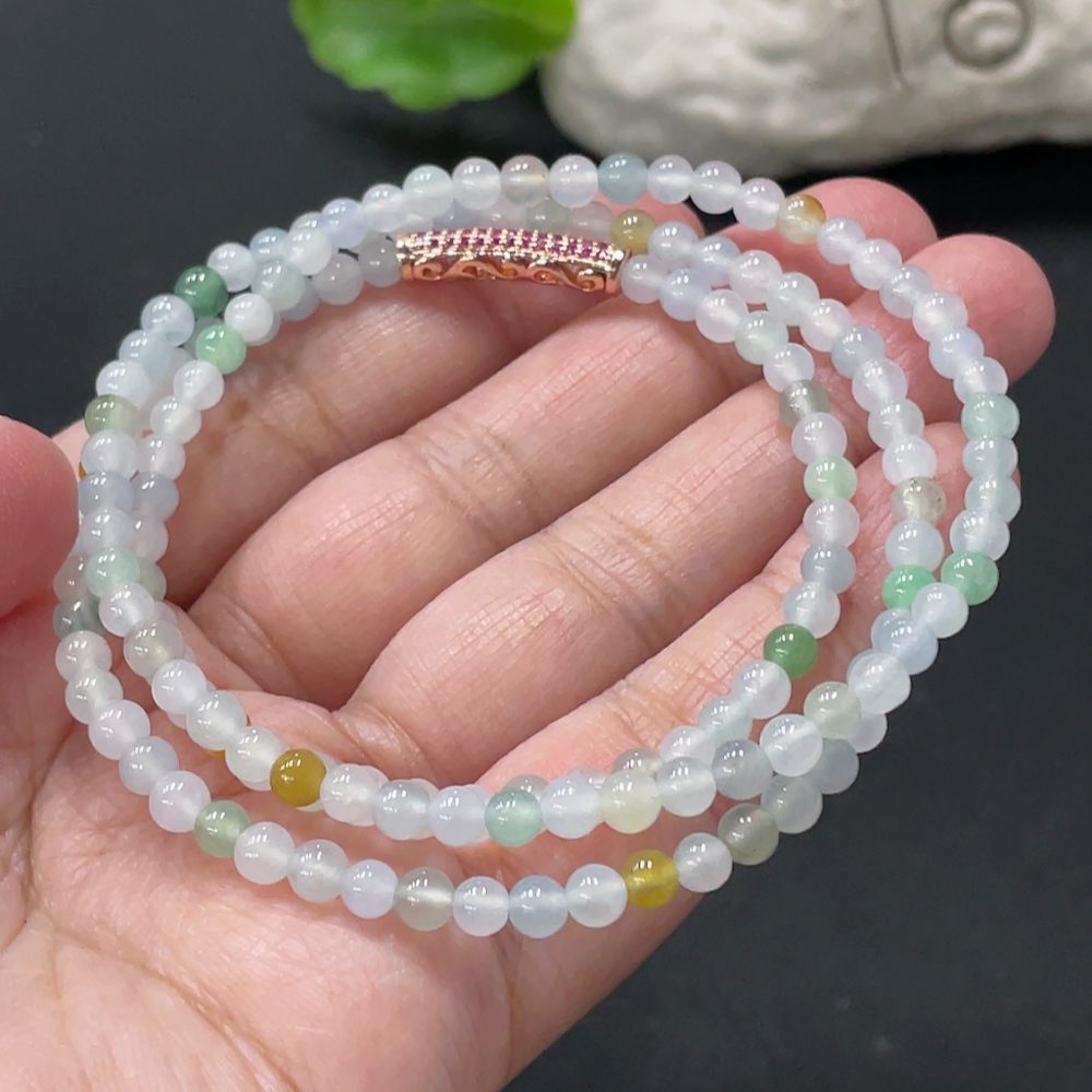 Jadeite Bead Necklace Approx. 4.2mm Total Weight Approx. 17.36g Non-Gold Clasp Non-Grade A Yellow Bead