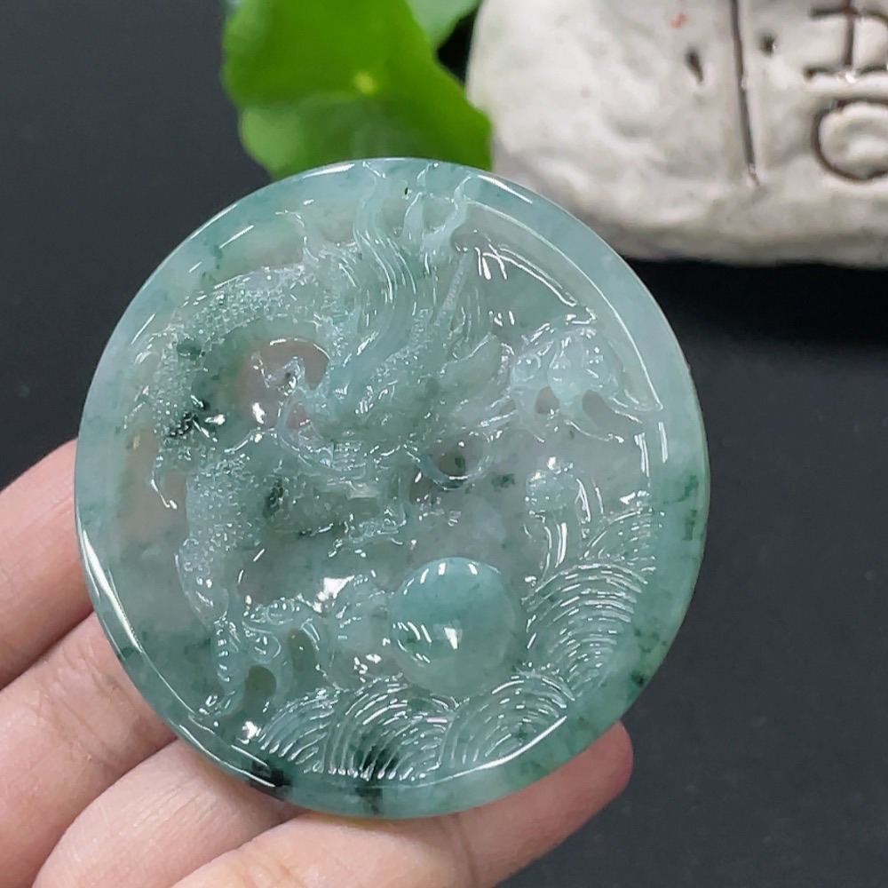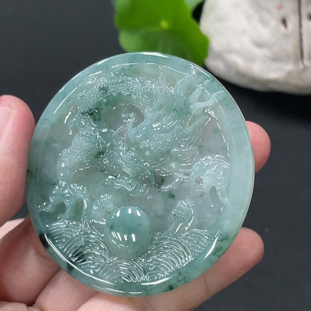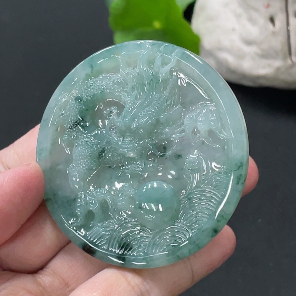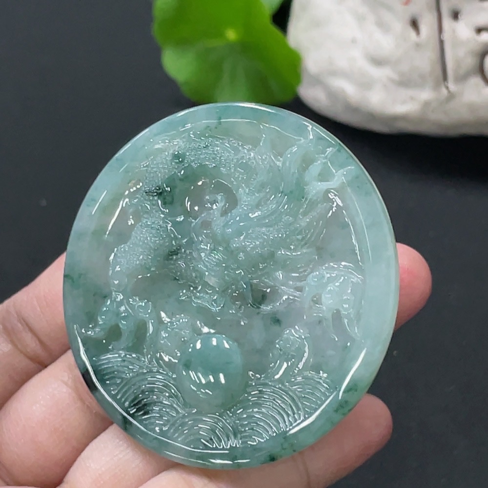 Jadeite Pendant Dragon Roaming the World Total Weight Approx. 23.72g