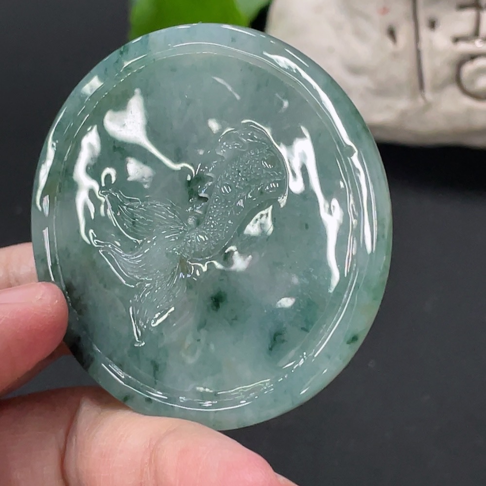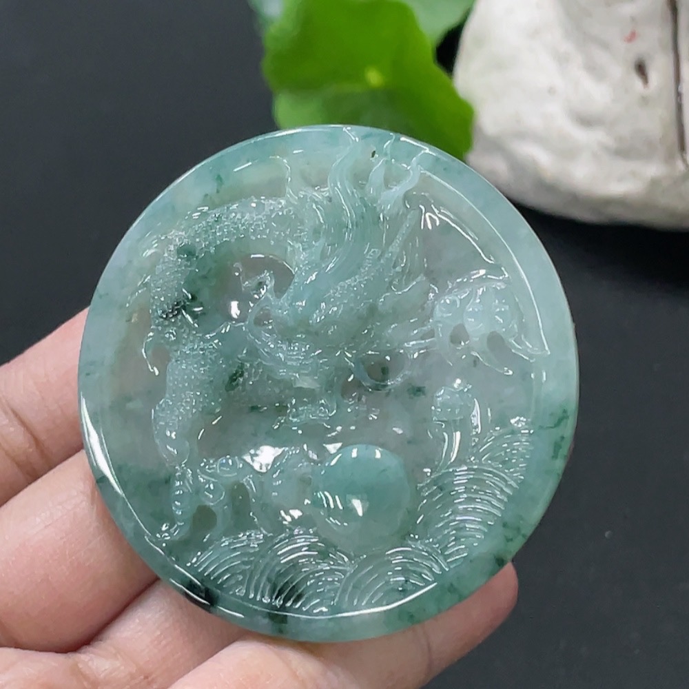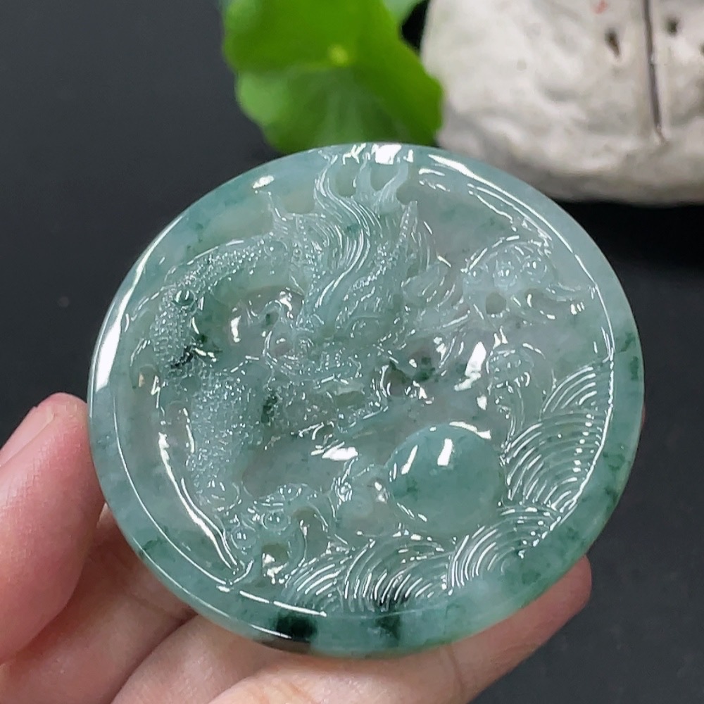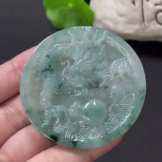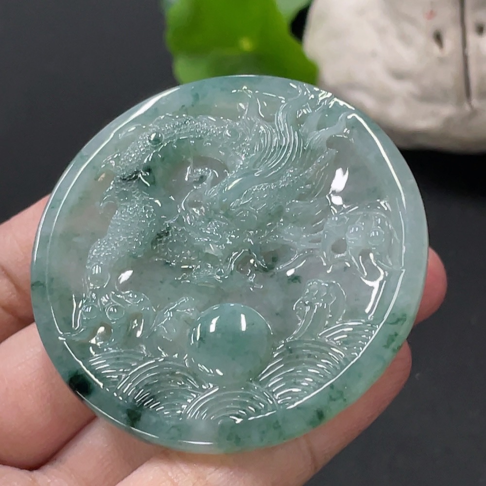 Jadeite Pendant Dragon Roaming the World Total Weight Approx. 23.72g